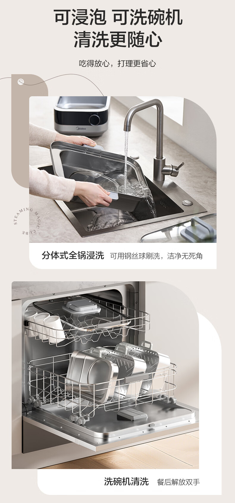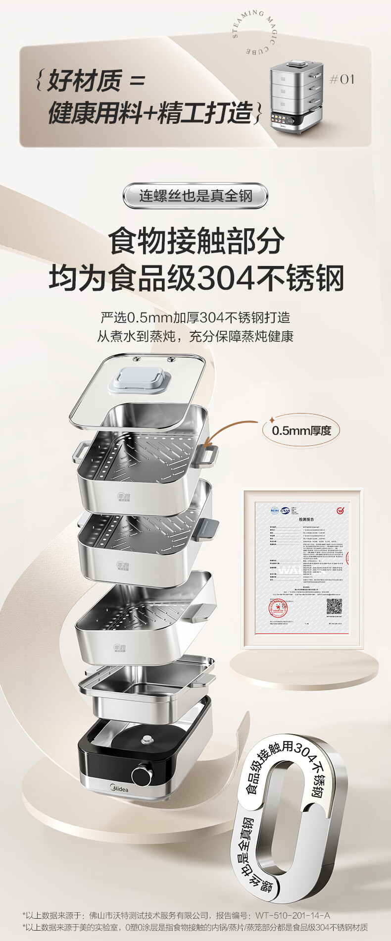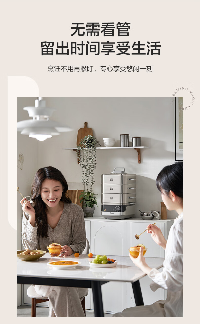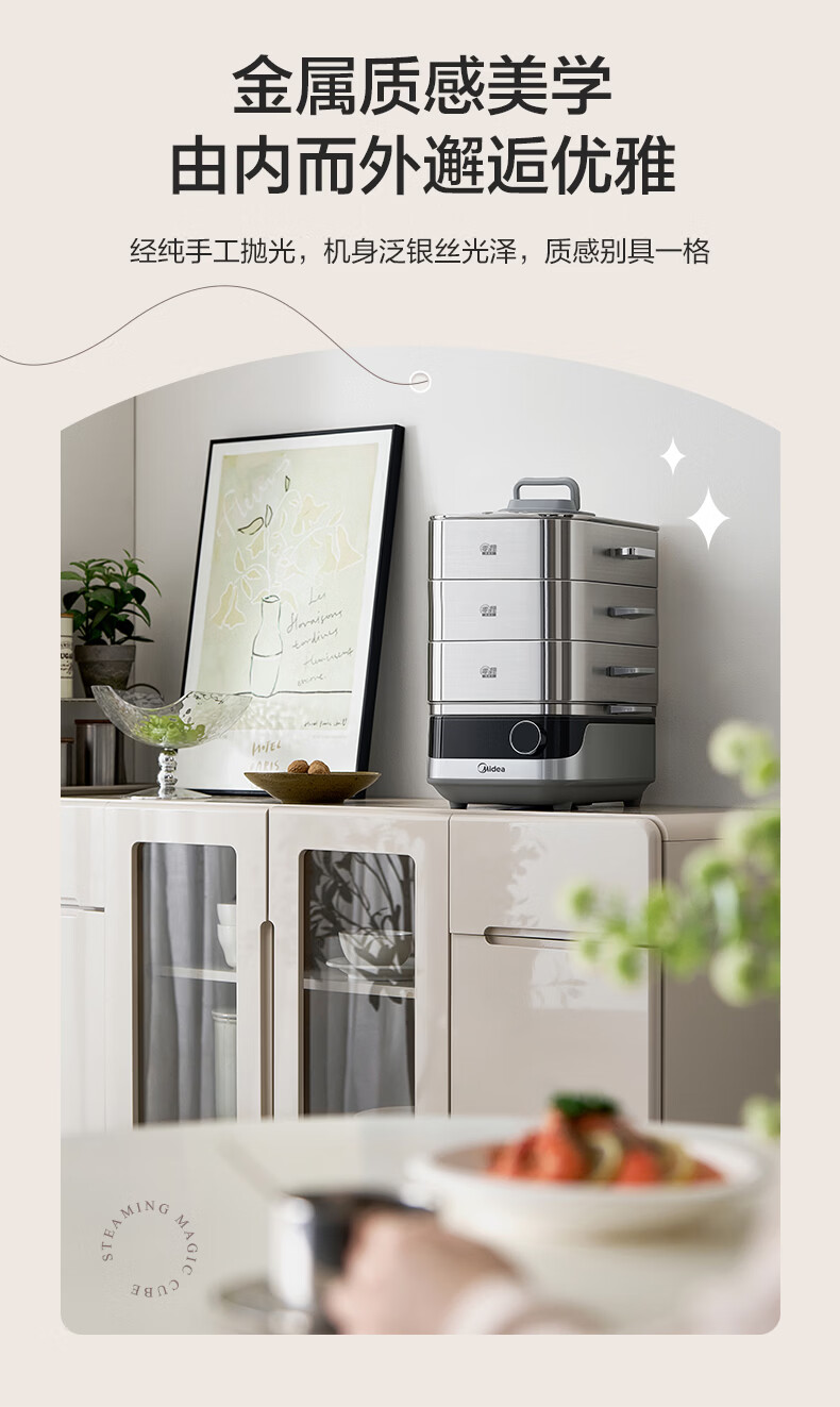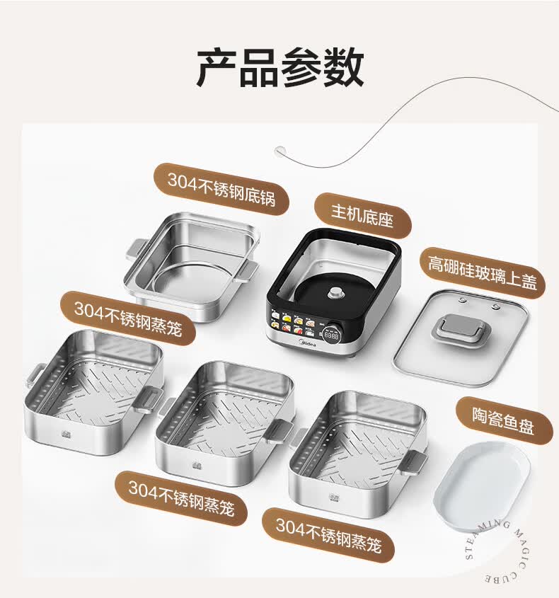 美的(Midea)蒸魔方0涂层电蒸锅炖蒸煮一体多功能锅 304不锈钢可拆洗 大容量家用4-10人蒸煮锅 25L 新升级-四层0涂层不锈钢