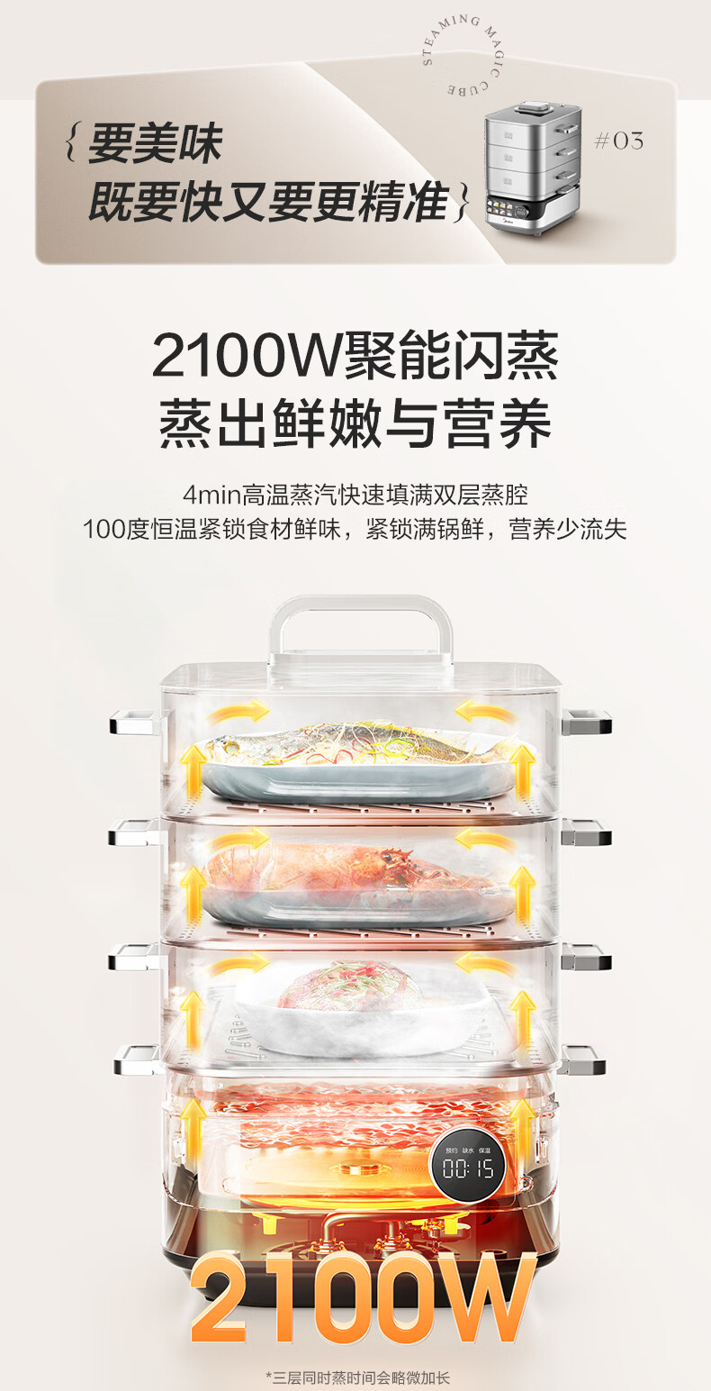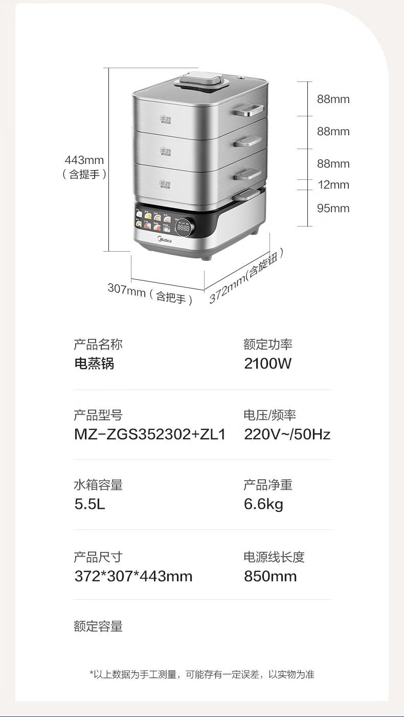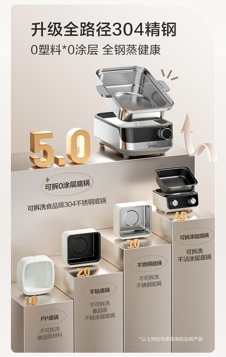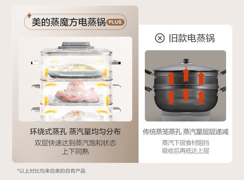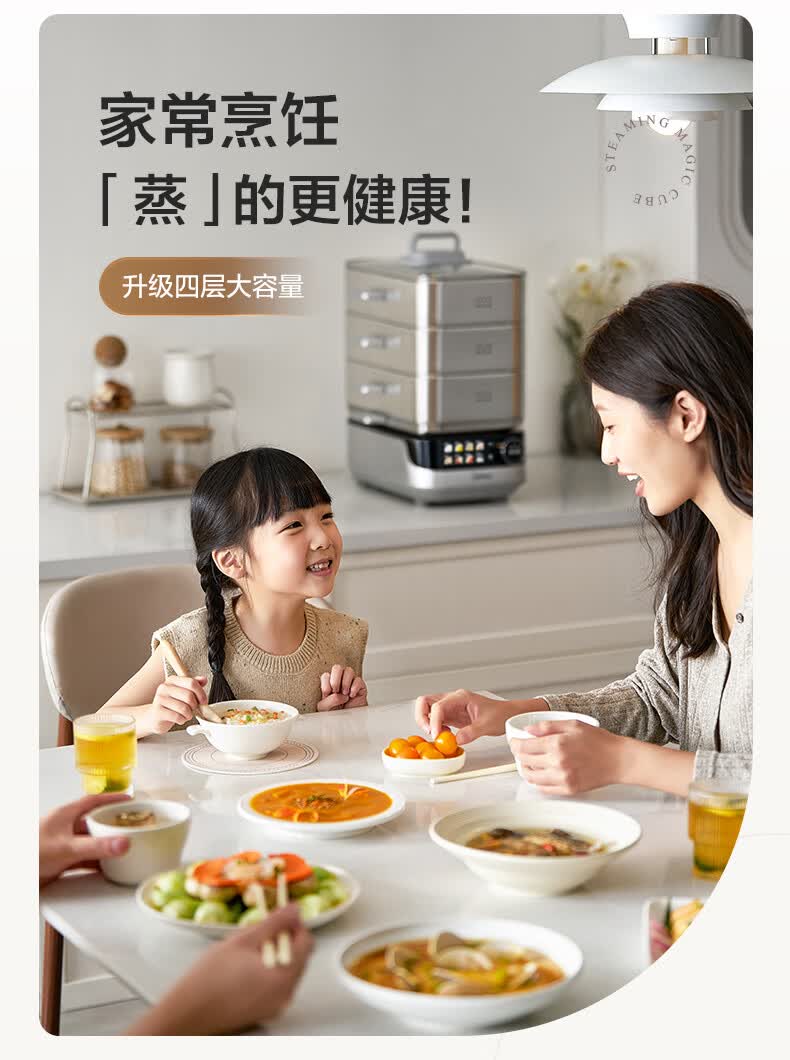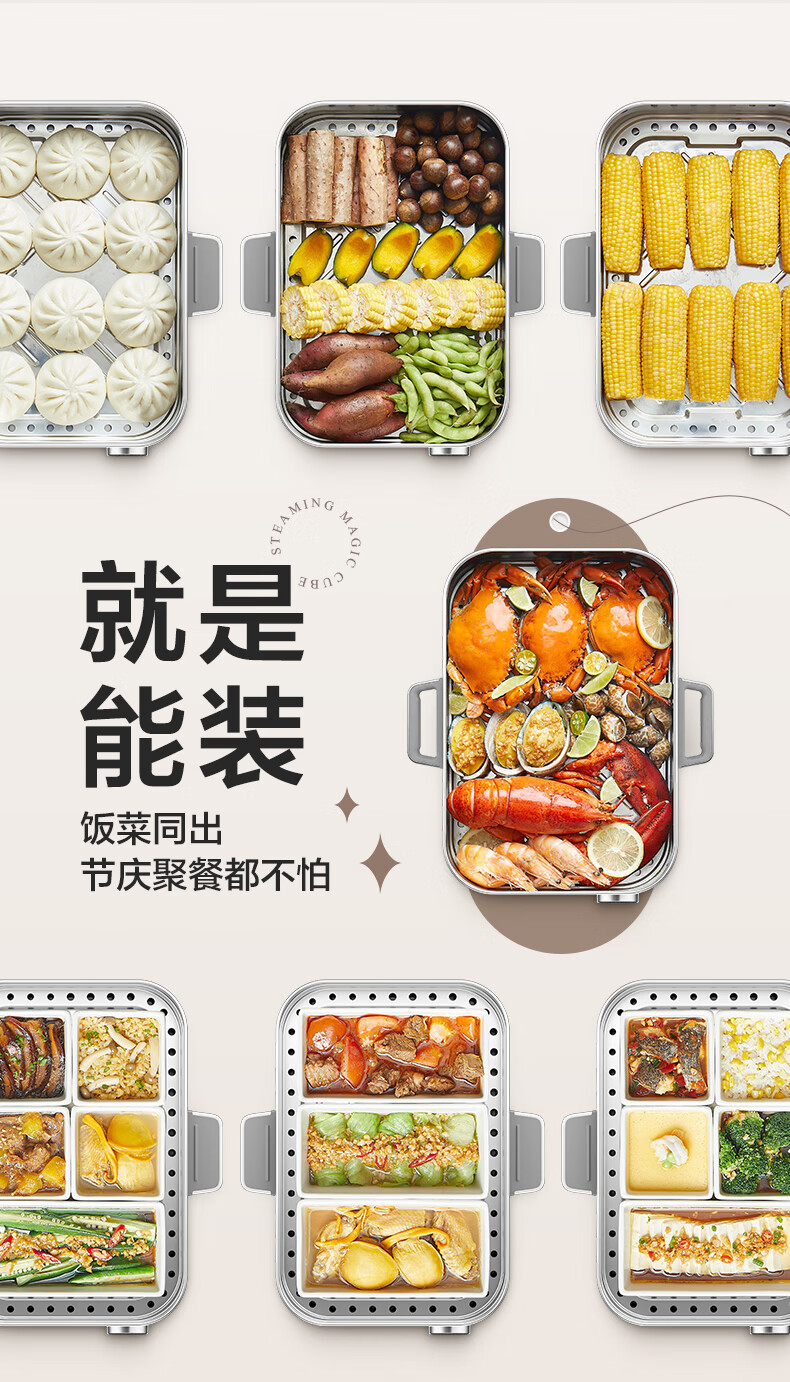 美的(Midea)蒸魔方0涂层电蒸锅炖蒸煮一体多功能锅 304不锈钢可拆洗 大容量家用4-10人蒸煮锅 25L 新升级-四层0涂层不锈钢