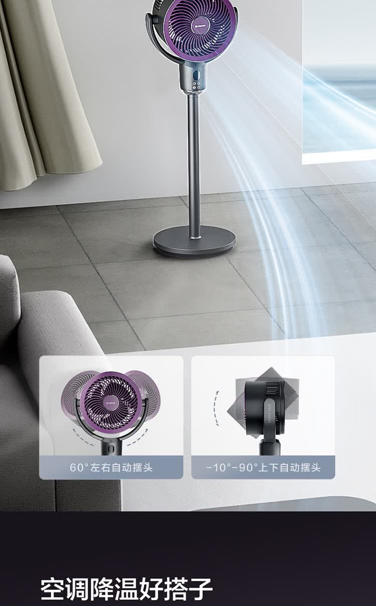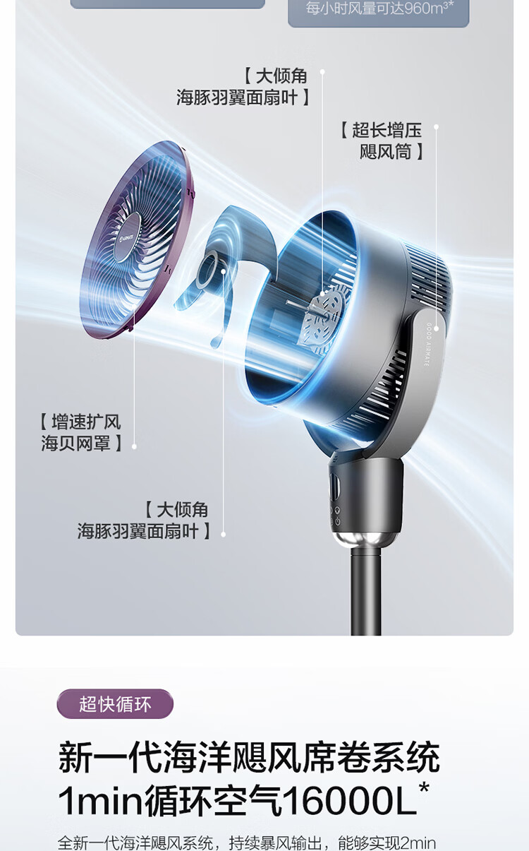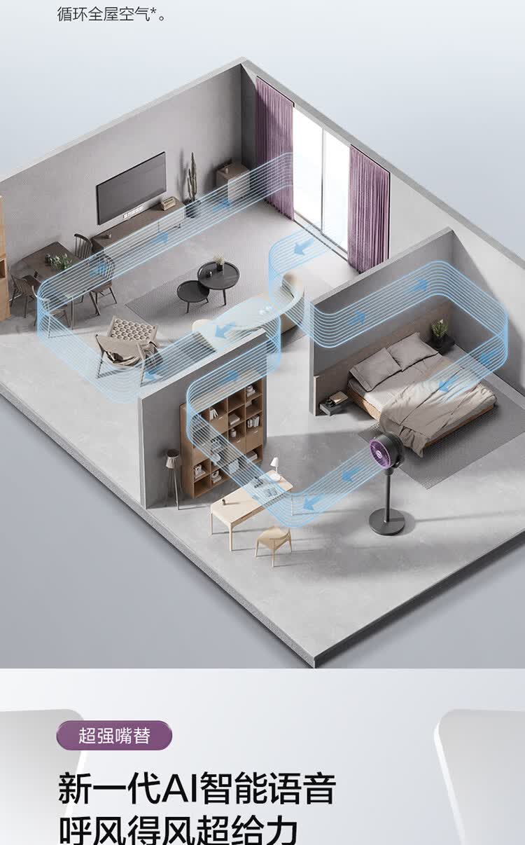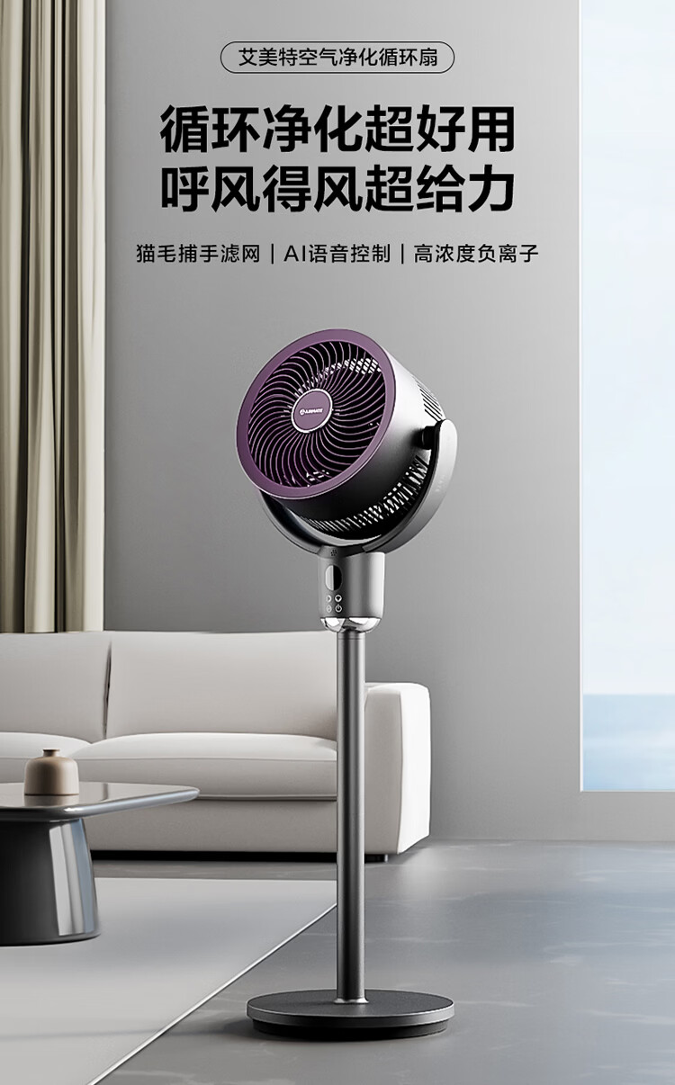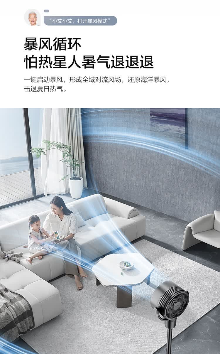 艾美特(AIRMATE) 空气循环扇落地扇3D立体风空气对流节能电风扇家用风扇 AI语音智控/负离子净化/猫毛滤网/全自动摆头