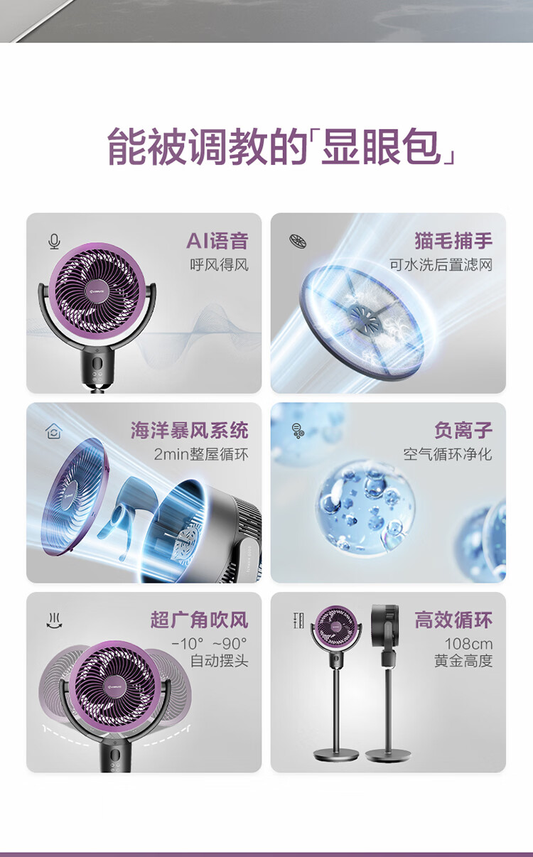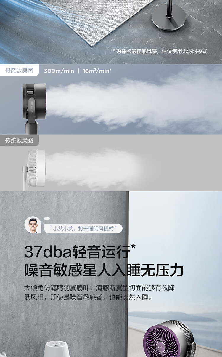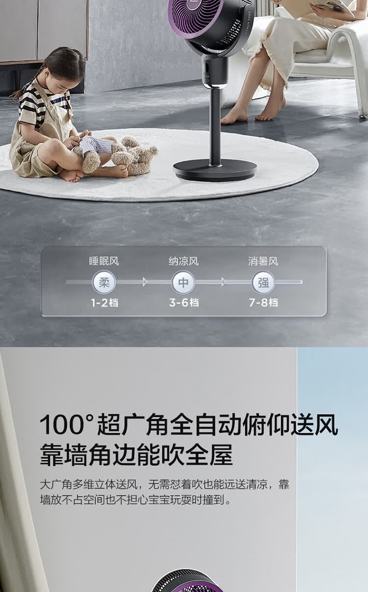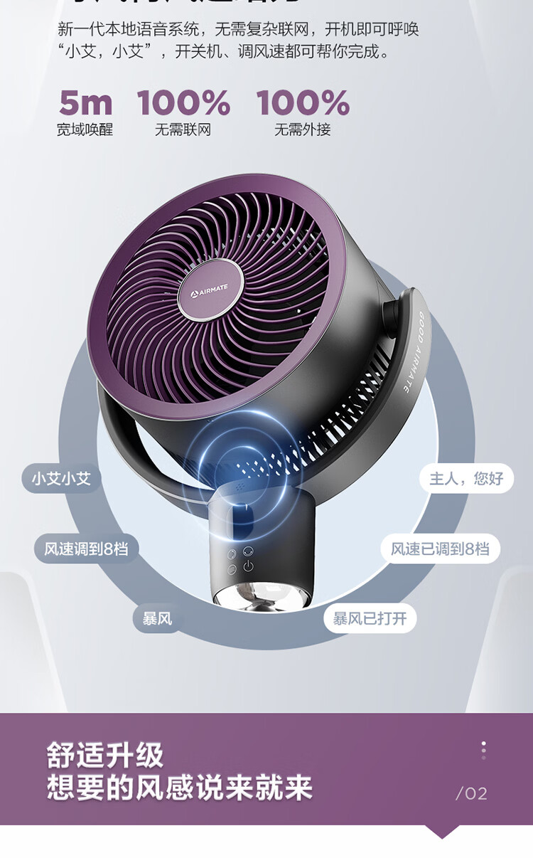 艾美特(AIRMATE) 空气循环扇落地扇3D立体风空气对流节能电风扇家用风扇 AI语音智控/负离子净化/猫毛滤网/全自动摆头