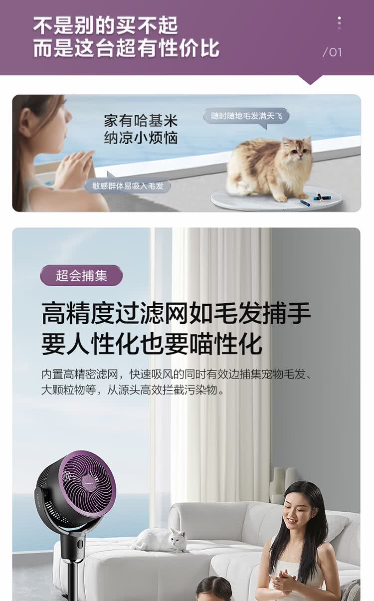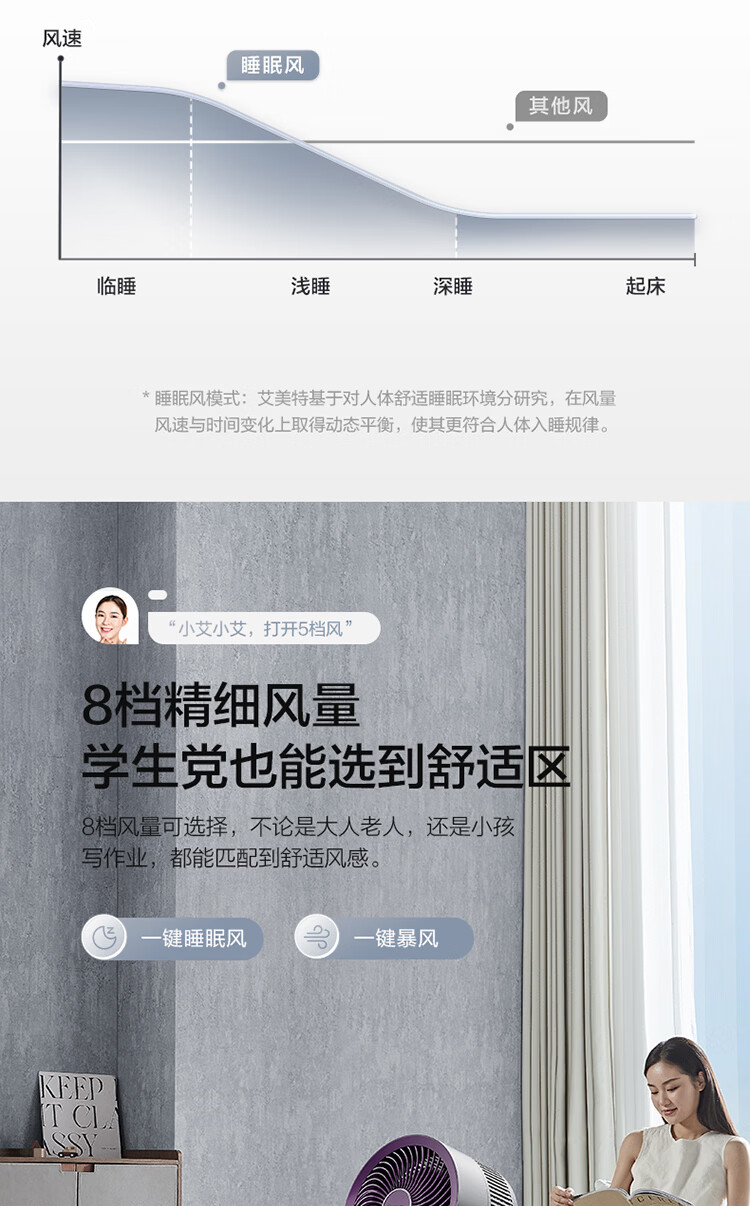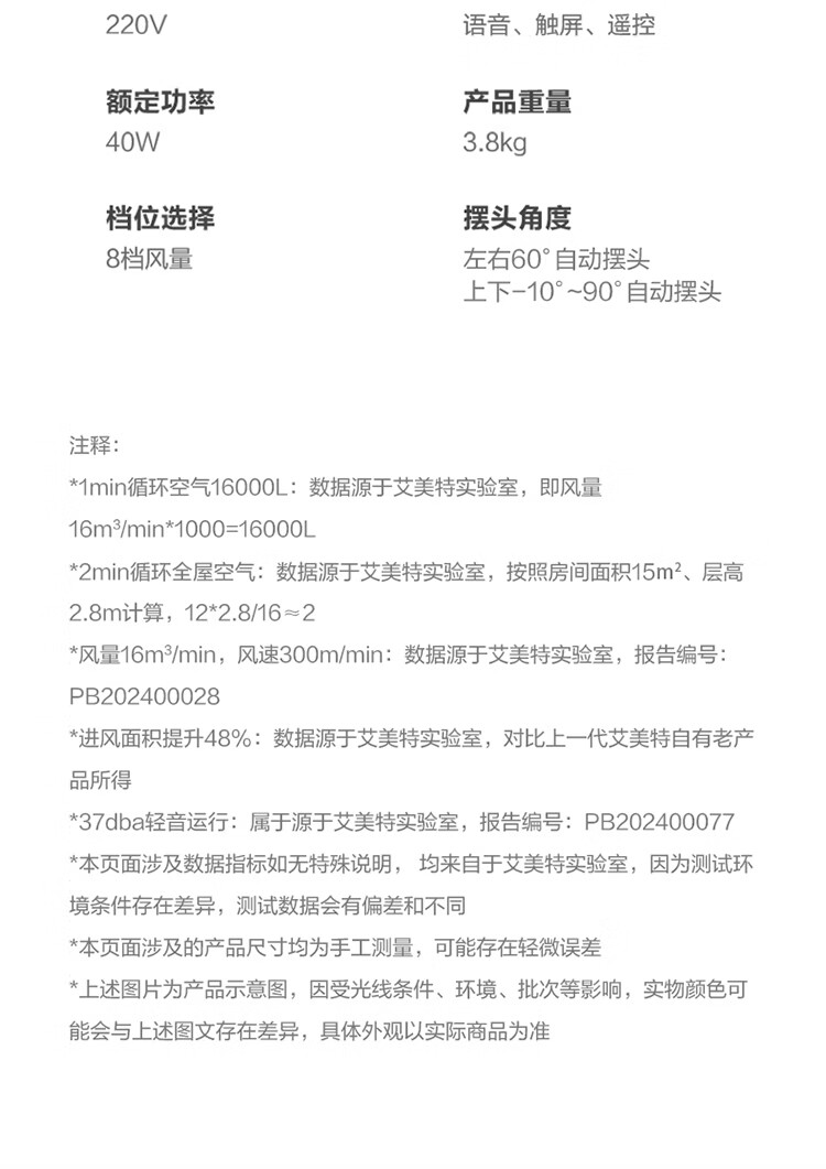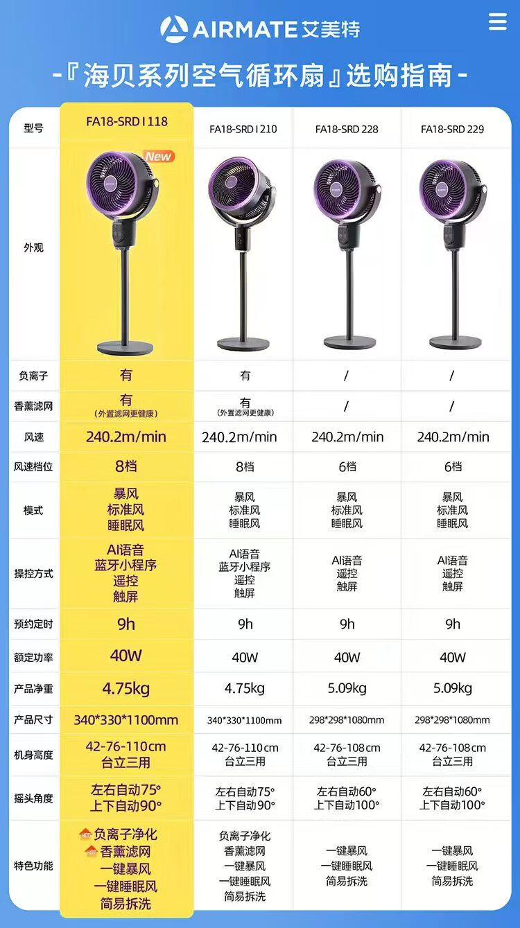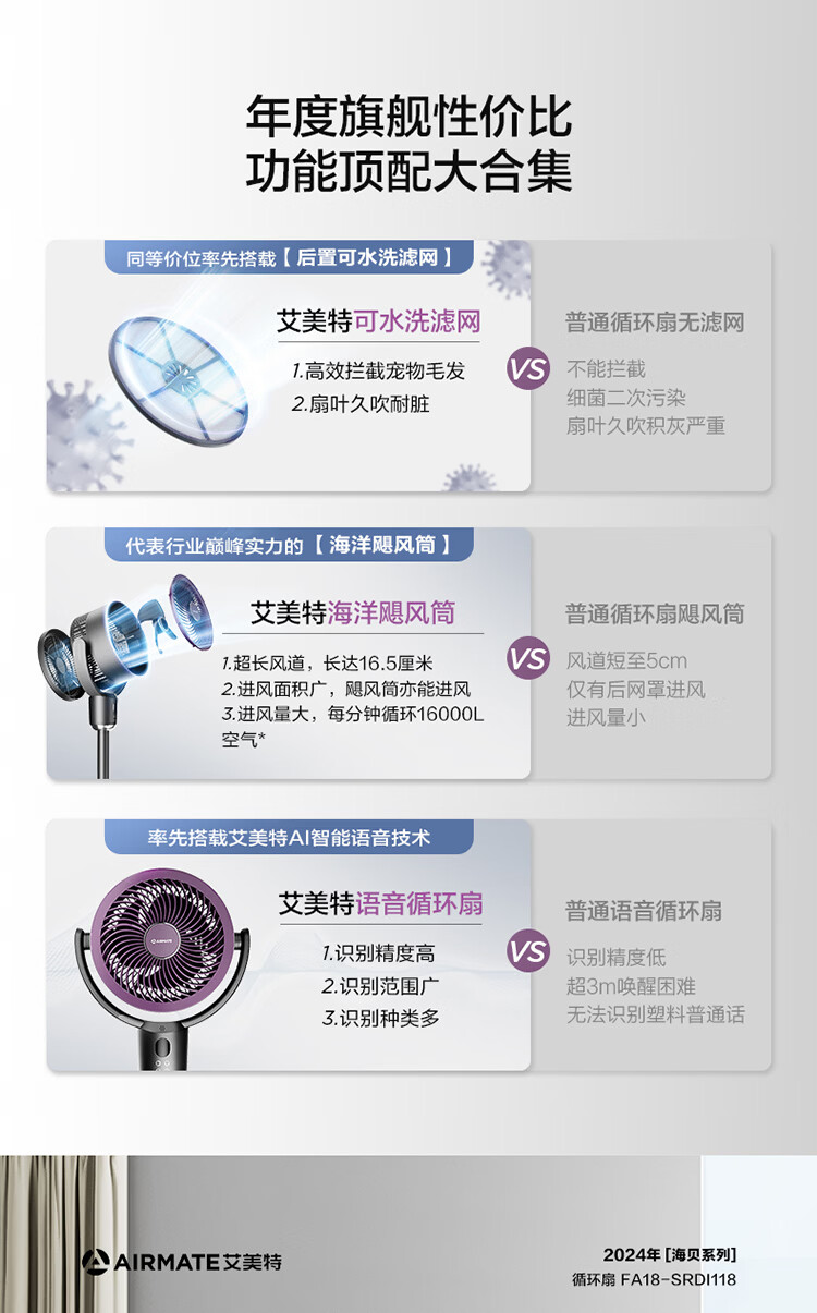 艾美特(AIRMATE) 空气循环扇落地扇3D立体风空气对流节能电风扇家用风扇 AI语音智控/负离子净化/猫毛滤网/全自动摆头