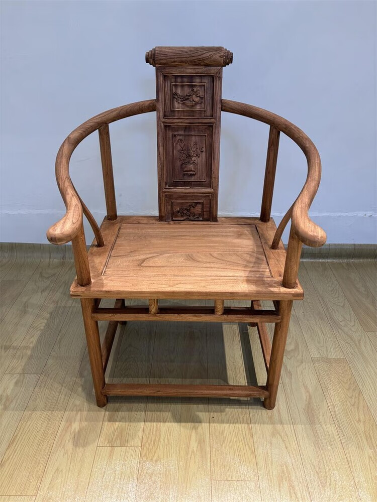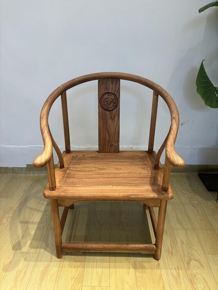 老榆木椅子靠背椅中式椅子圈椅茶桌主椅中古风实木椅子办公餐桌椅 海棠主椅