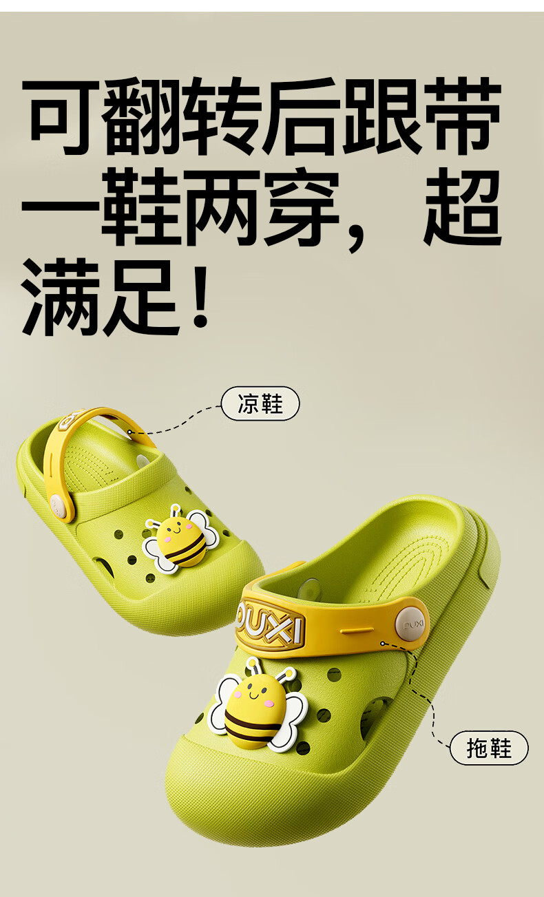 Lee童鞋夏季新款儿童沙滩凉鞋女童包头防滑涉水鞋男童 黑米 36 【建议脚长222mm】