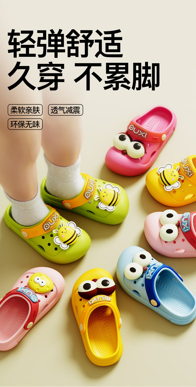朴西儿童拖鞋宝宝洞洞鞋夏季男女童包头凉拖婴幼儿室内家居防滑凉鞋 云朵蓝+大眼睛 22 【170mm适合脚长16~16.5cm】