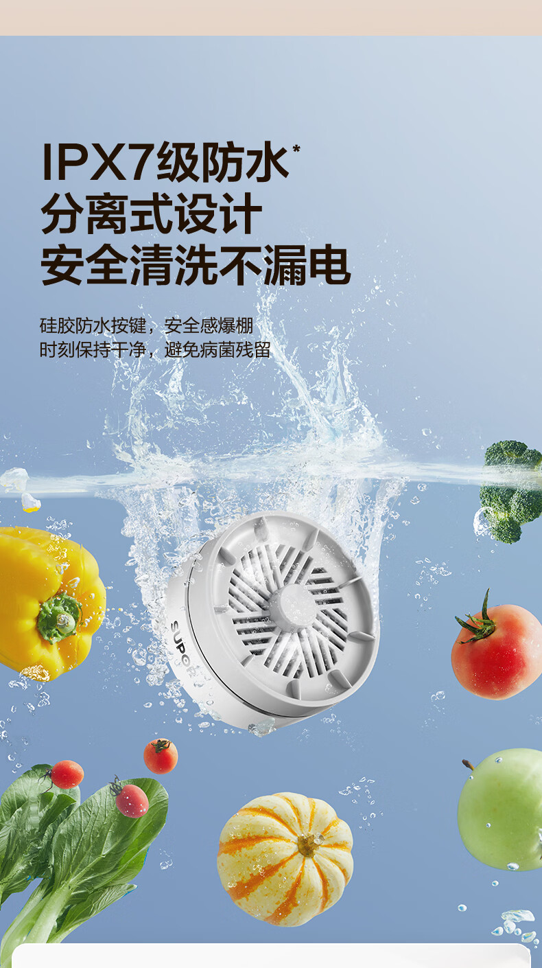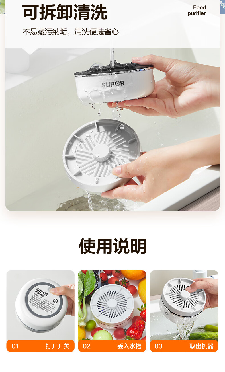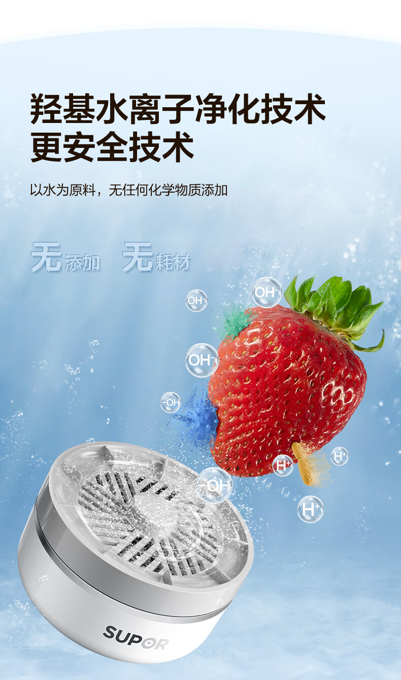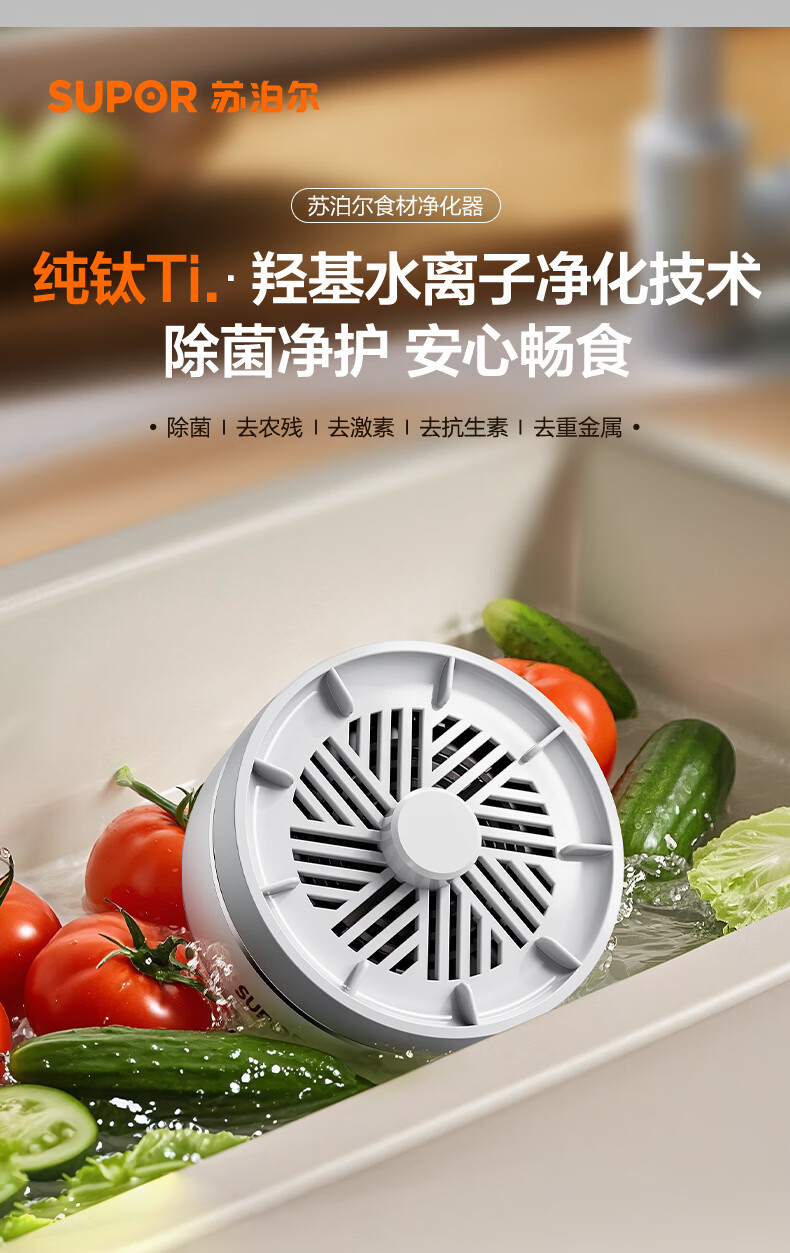 苏泊尔果蔬净化机 食材净化器水果蔬菜肉类谷物多功能清洗器 蓝光杀菌去农残无线便携式洗菜机 清洗机 【正品保障】纯钛电解片丨涡流净化