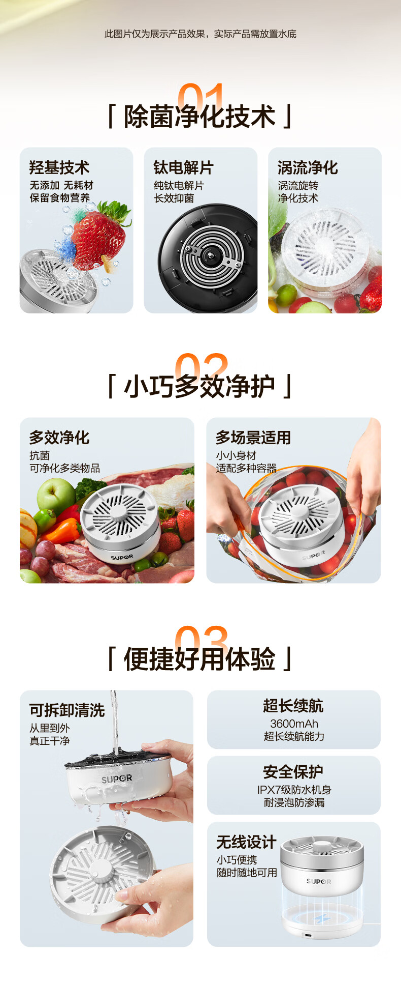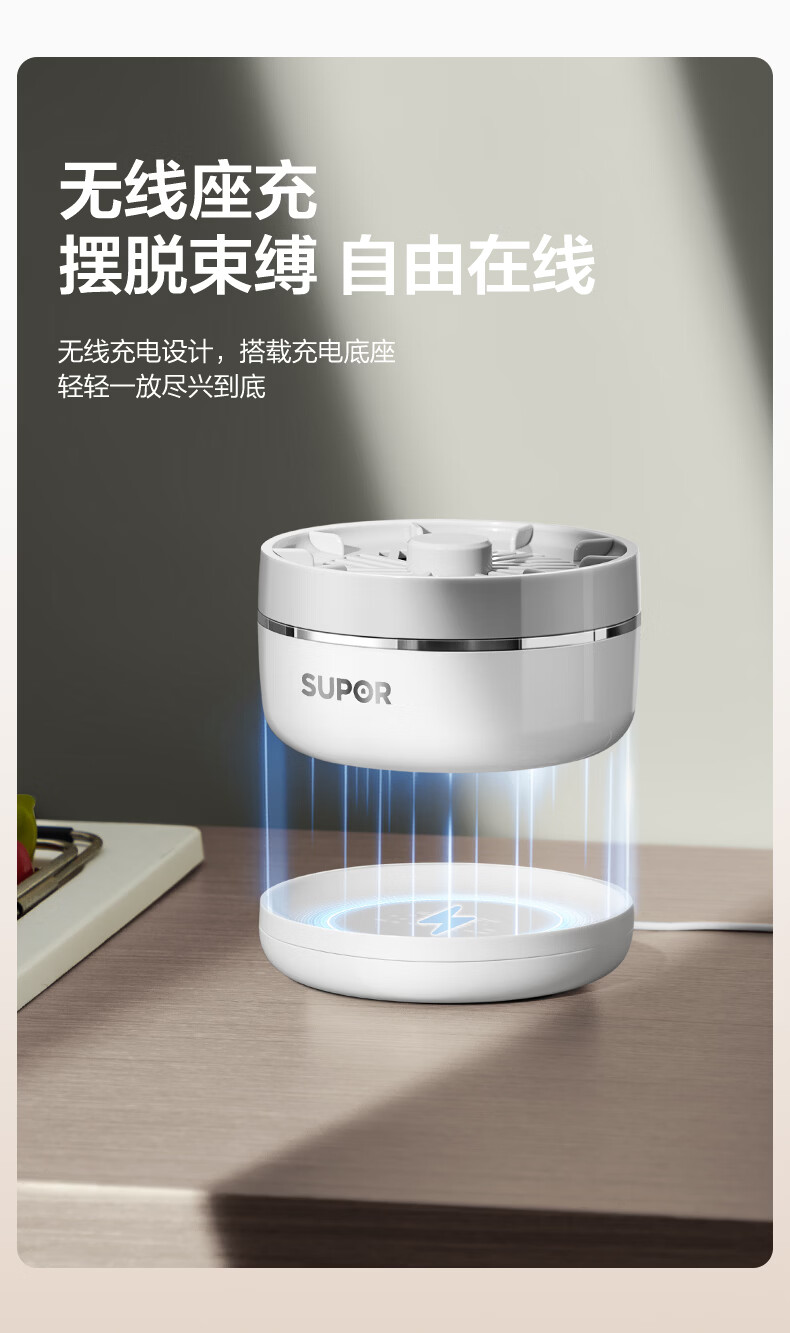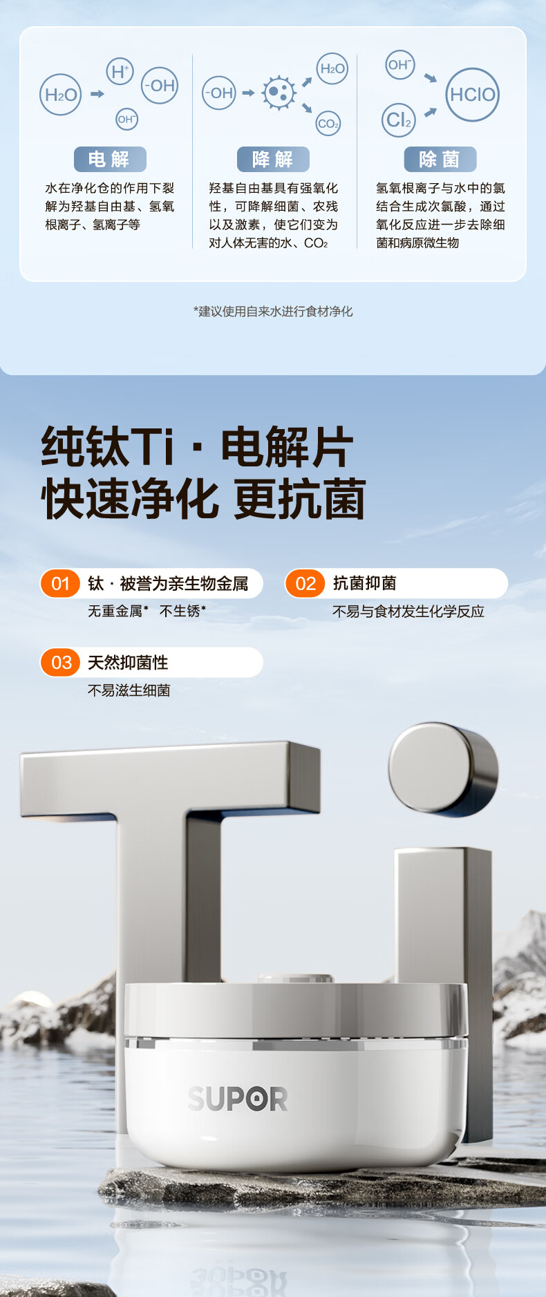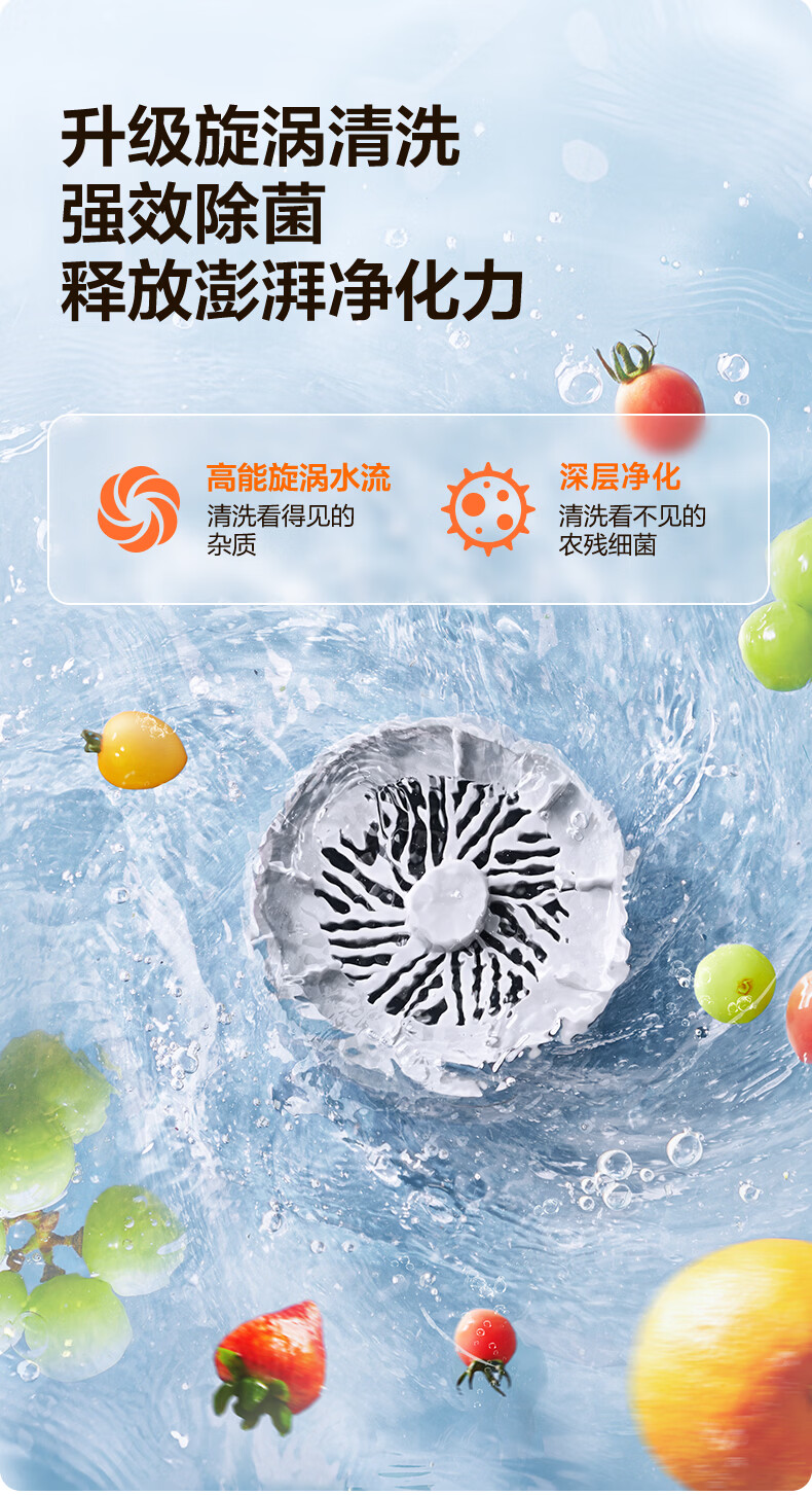 苏泊尔果蔬净化机 食材净化器水果蔬菜肉类谷物多功能清洗器 蓝光杀菌去农残无线便携式洗菜机 清洗机 【正品保障】纯钛电解片丨涡流净化