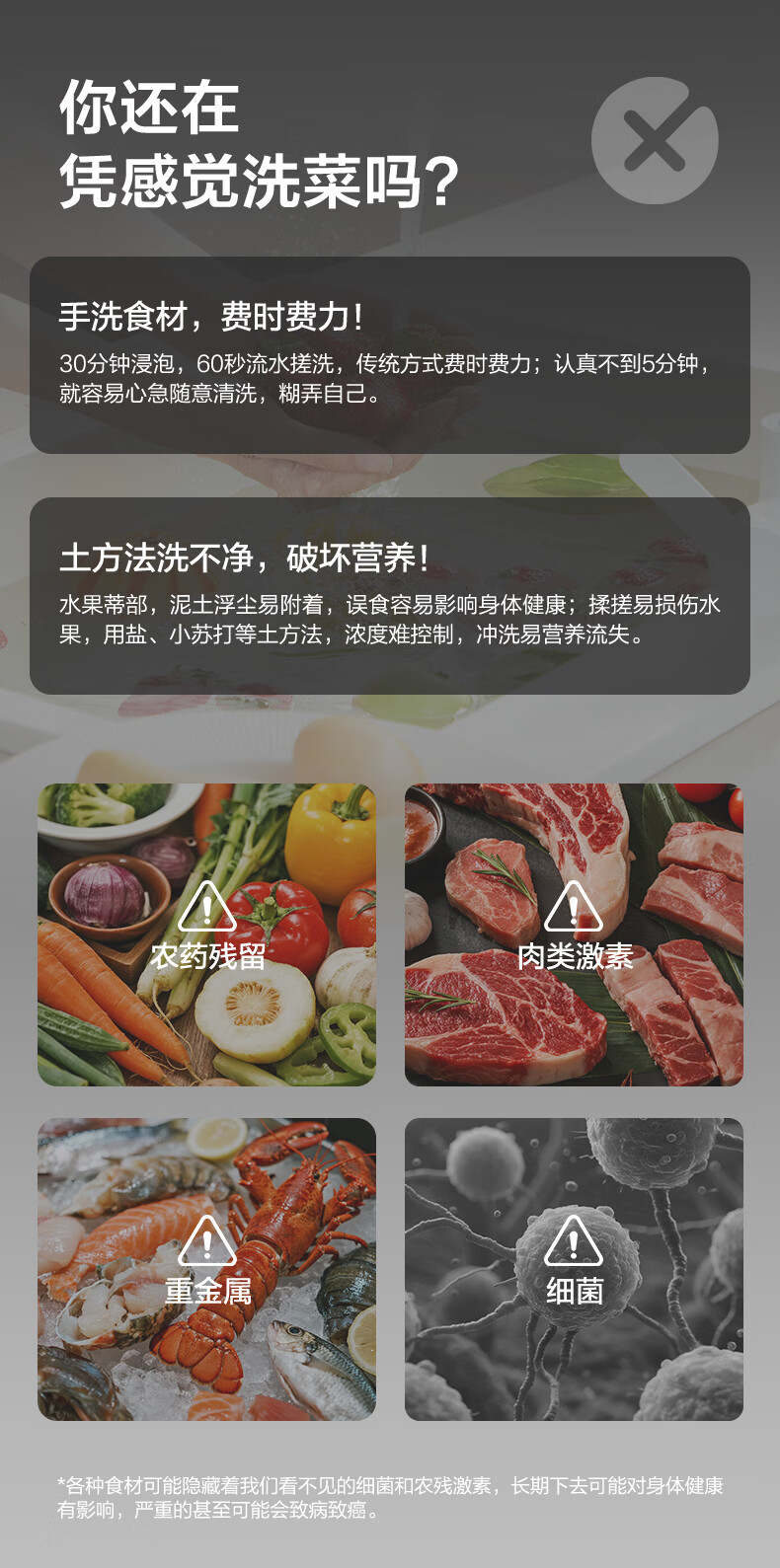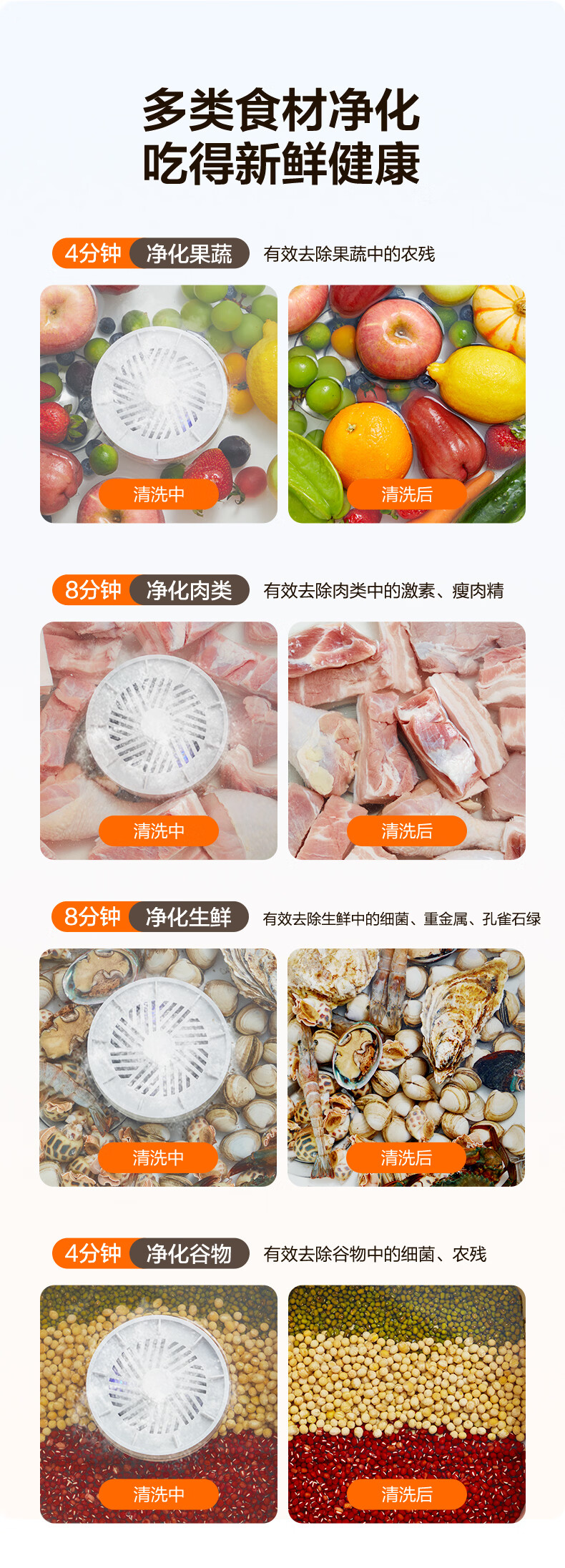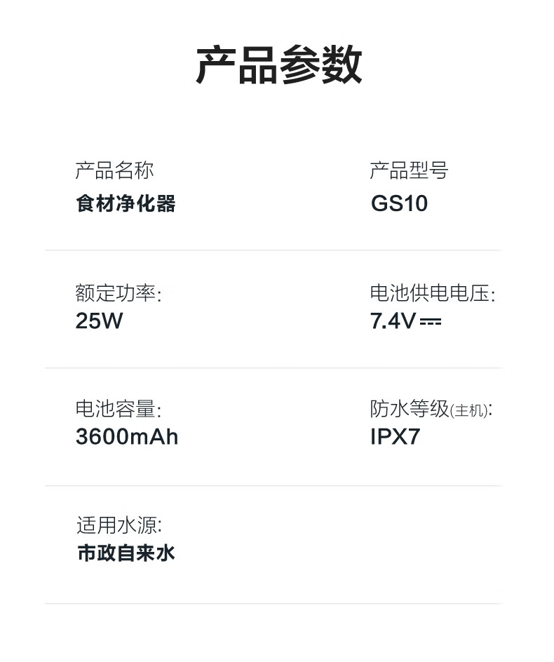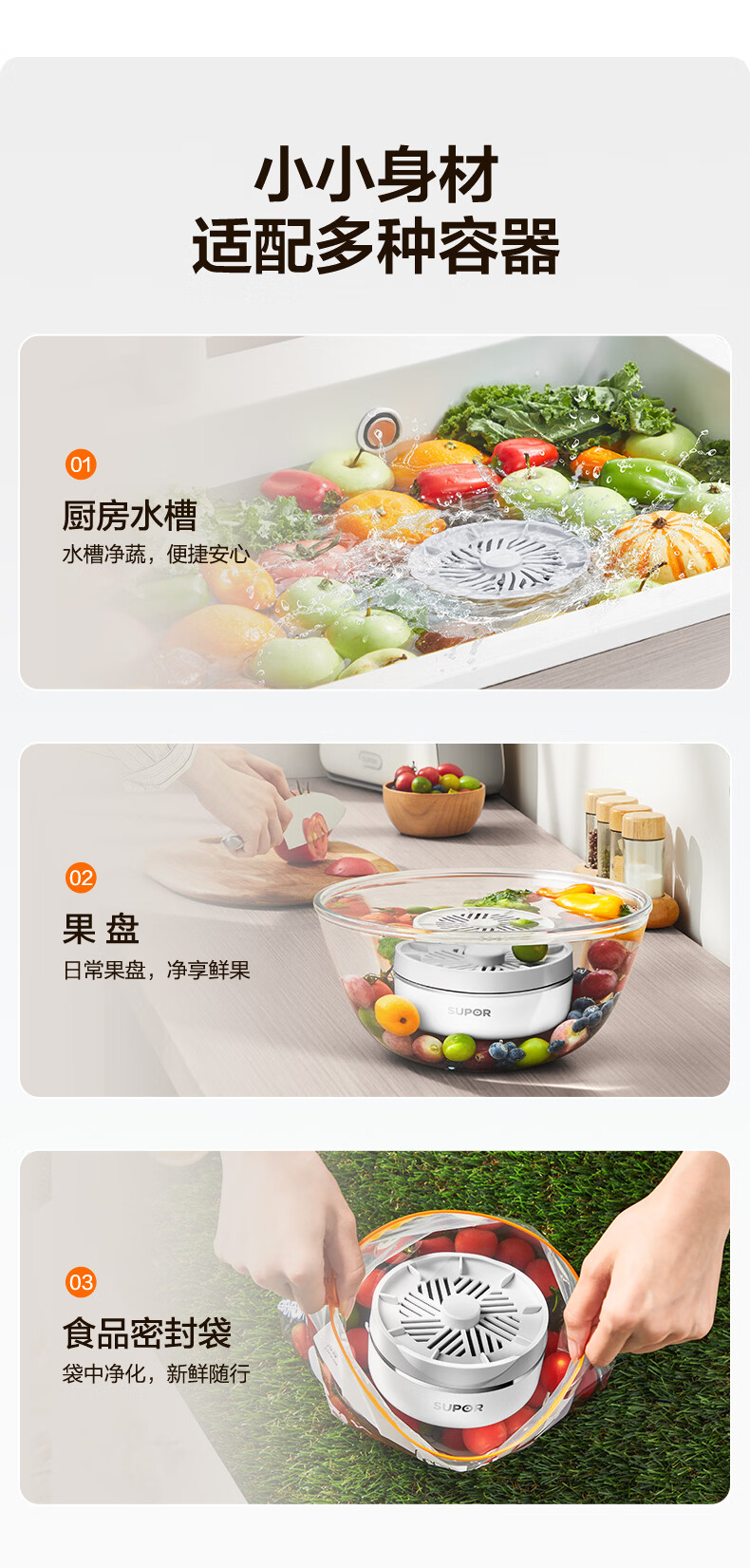苏泊尔果蔬净化机 食材净化器水果蔬菜肉类谷物多功能清洗器 蓝光杀菌去农残无线便携式洗菜机 清洗机 【正品保障】纯钛电解片丨涡流净化