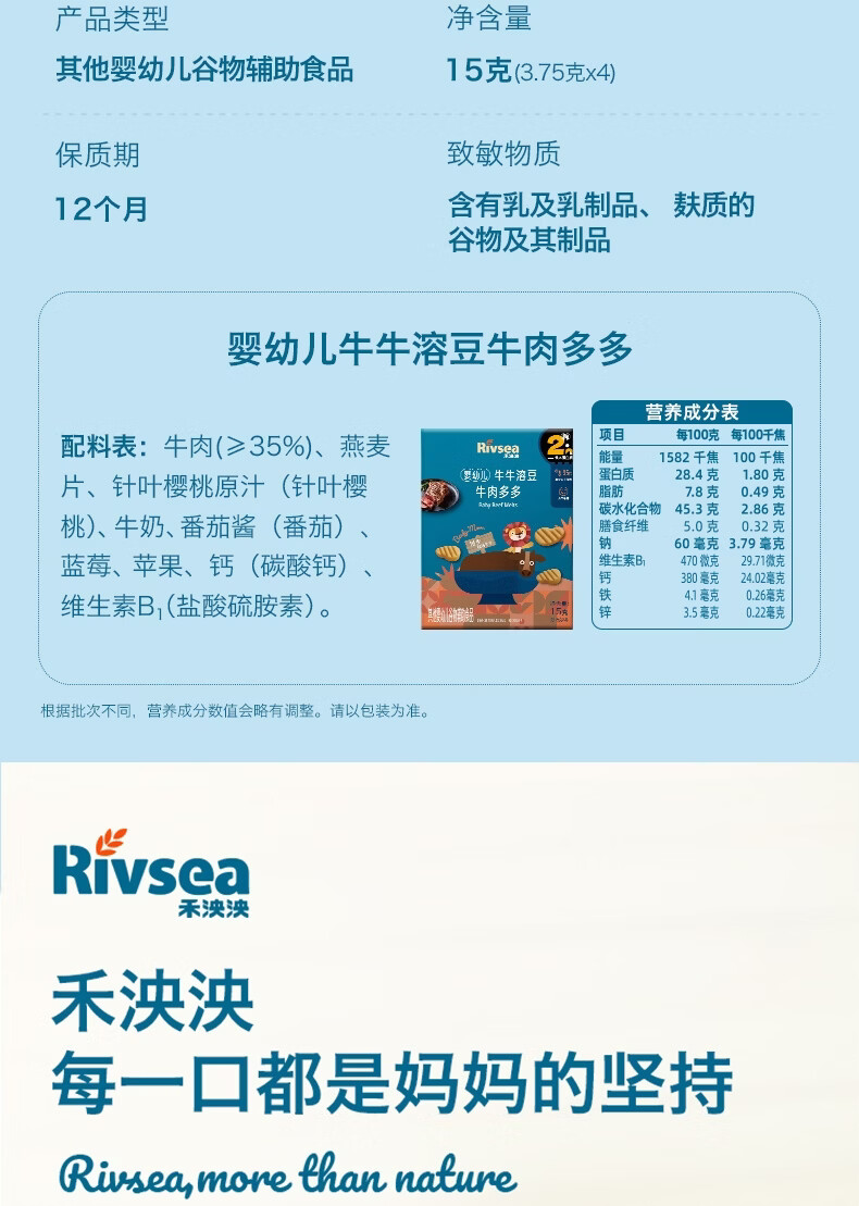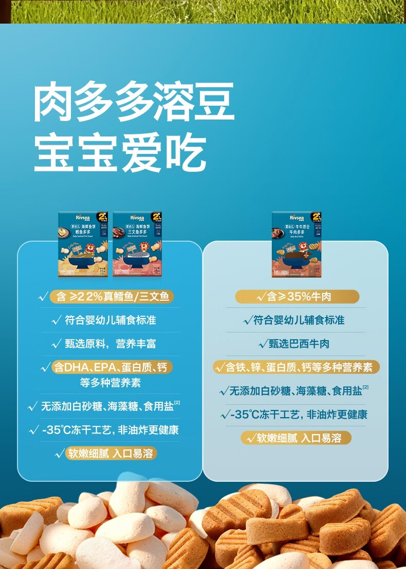 禾泱泱婴幼儿牛肉多多含原生铁 鳕鱼三文鱼含DHA溶豆宝宝零食6月+ 【婴幼儿】牛肉多多肉饼溶豆11.25g