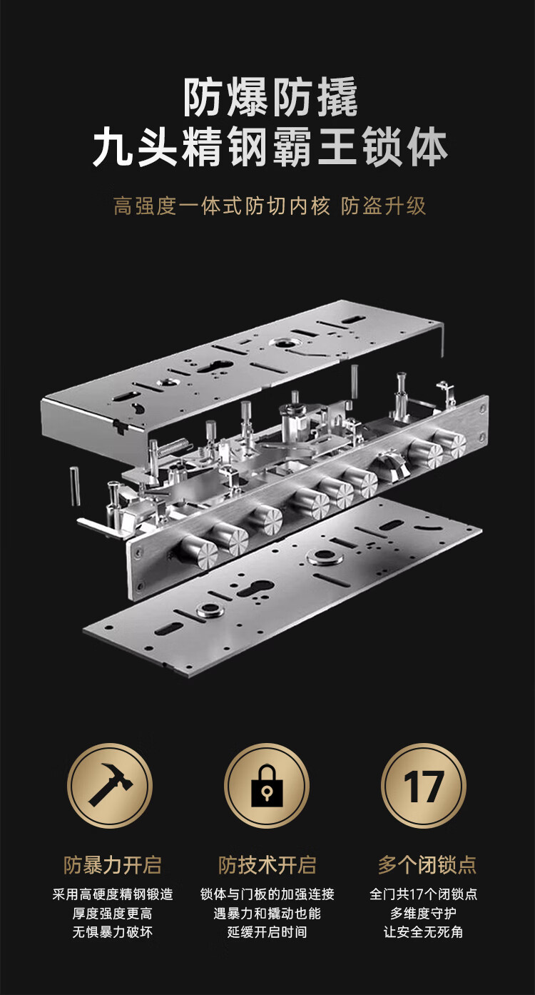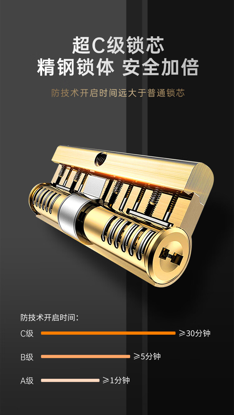 威龙原子别墅大门锁防盗门锁芯超C级通用型家用更换双面叶片锁芯防撬门锁 【单活】方舌整套【自行安装