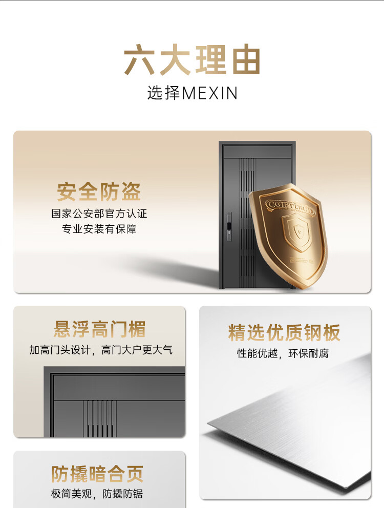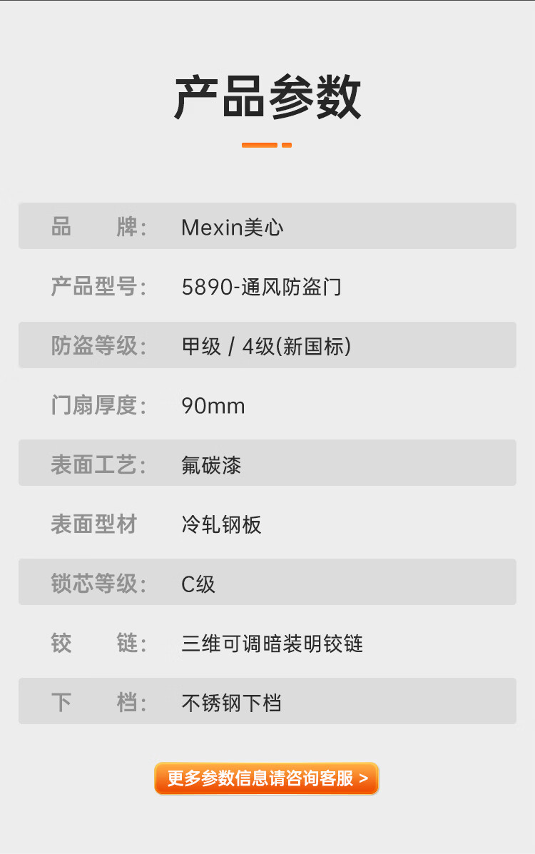 美心(Mexin)防盗门门中门家用安全门入户门通风门进户门加高门头极简现代智能锁防盗防撬定制门暗铰链5890 单门-2050*960-机械锁