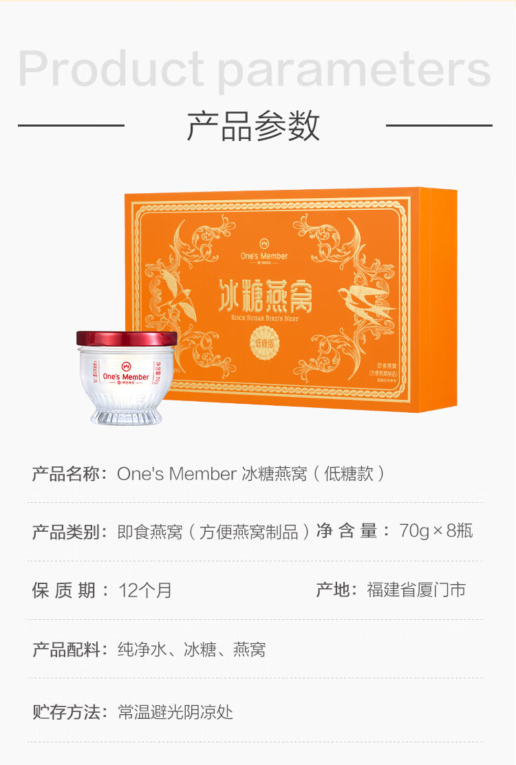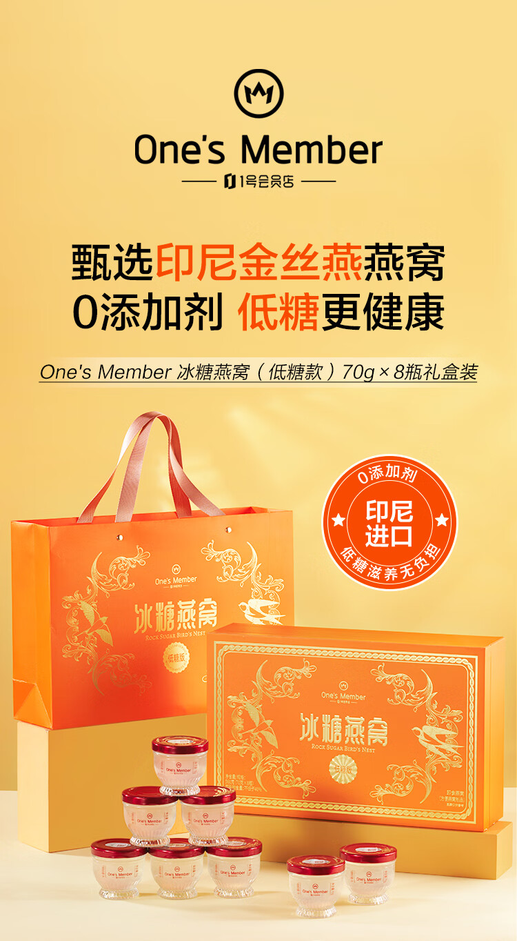 1号会员店OM 低糖 即食冰糖燕窝 70gx8瓶礼盒 高档送礼 送父母爸妈长辈