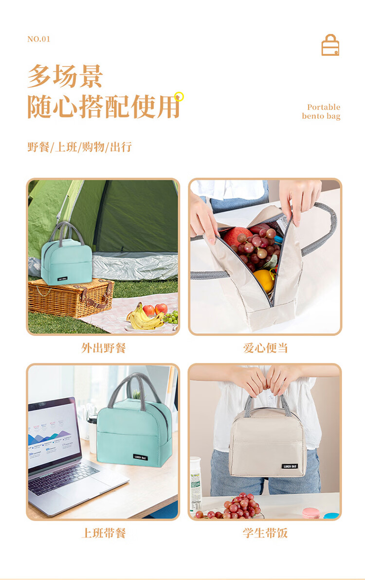 Kaooseen保温包学生饭盒便当收纳袋防水加厚铝箔保温野餐包手提袋 饭盒保温袋