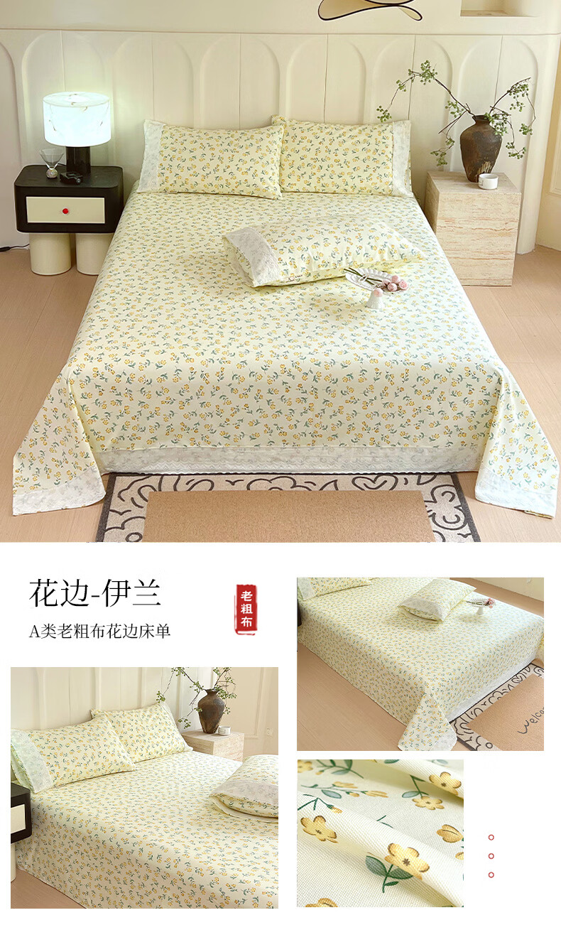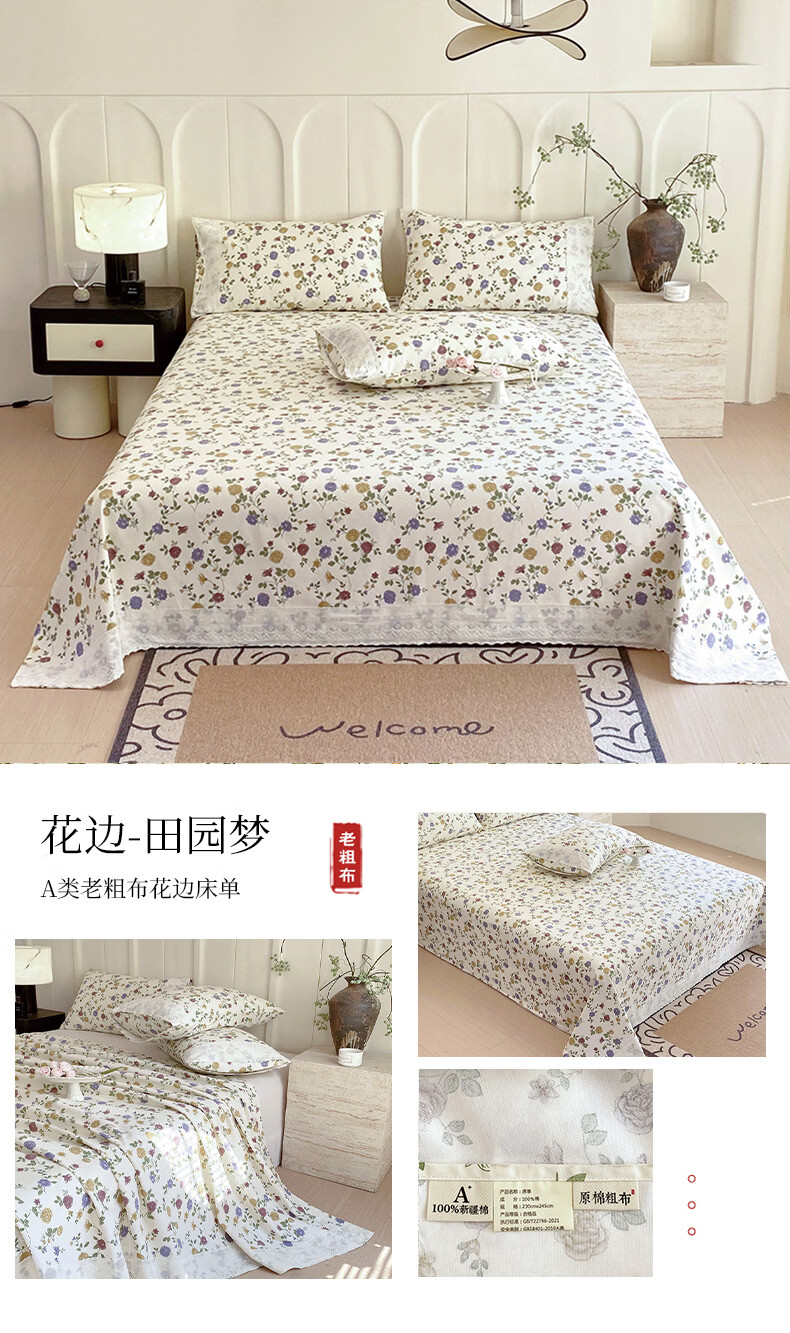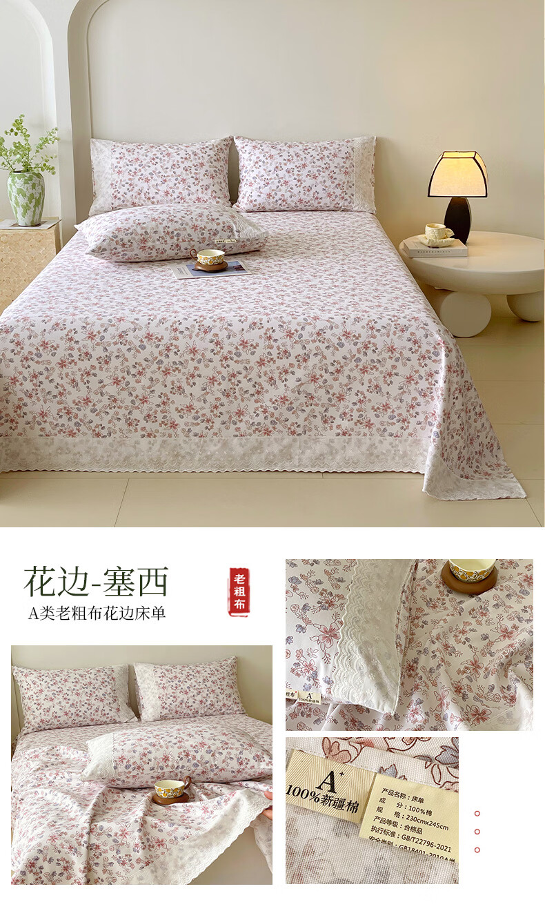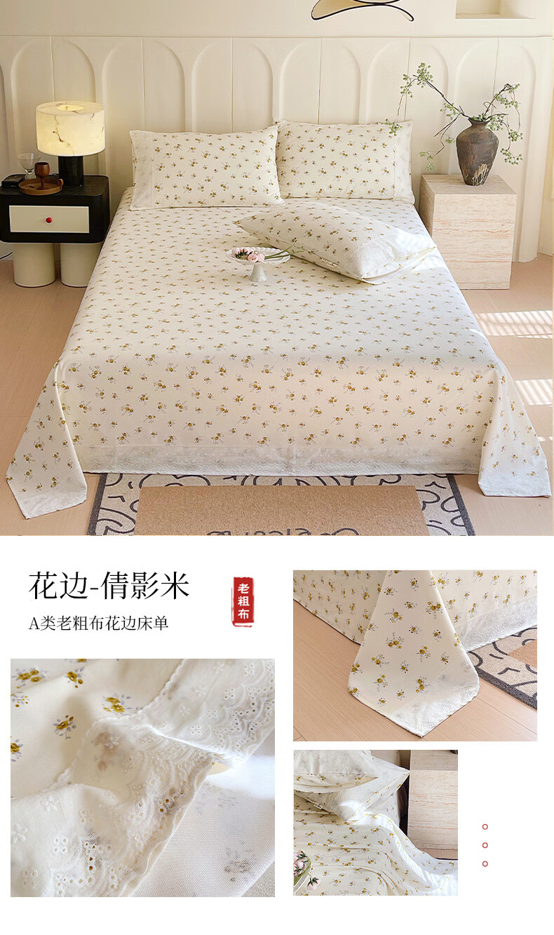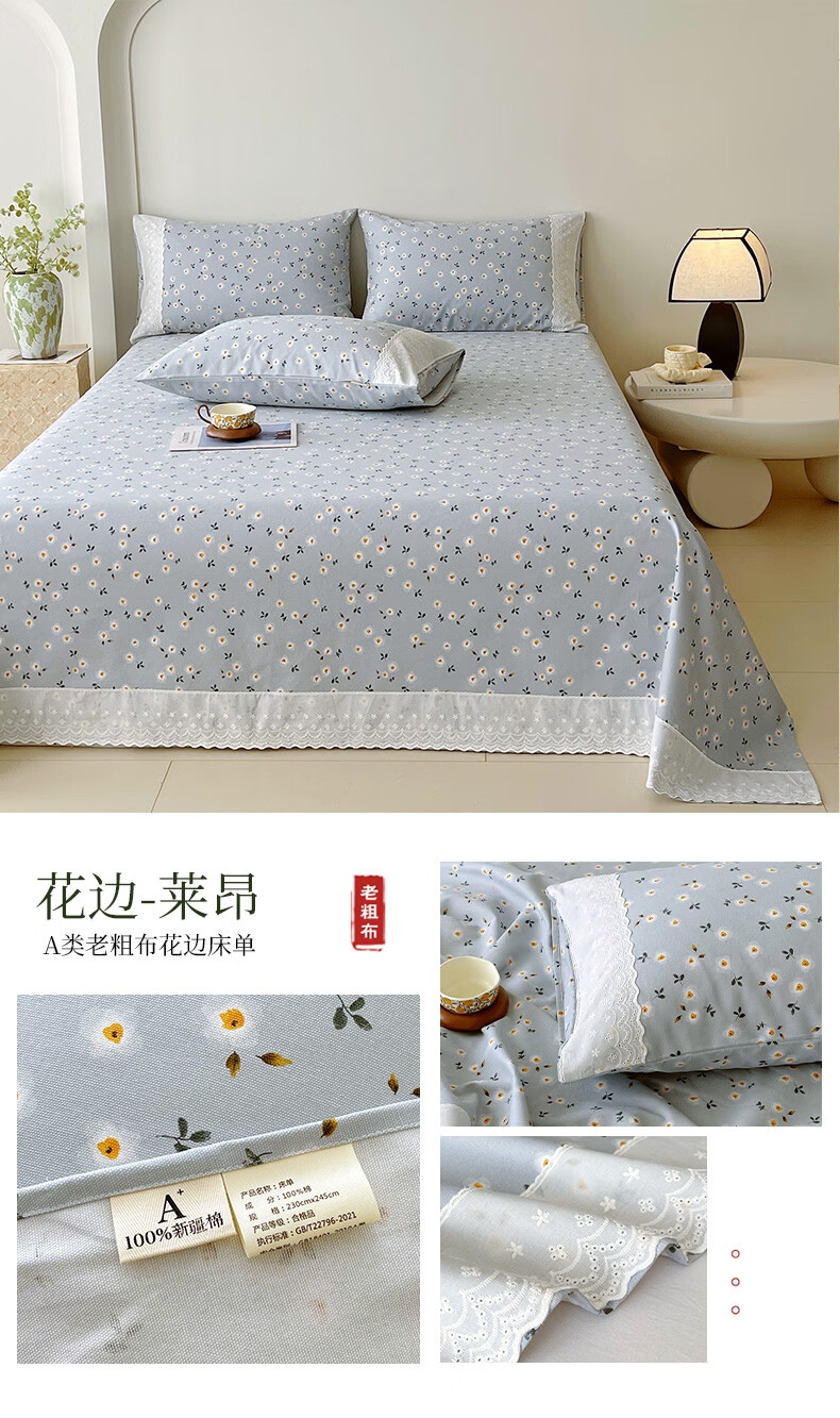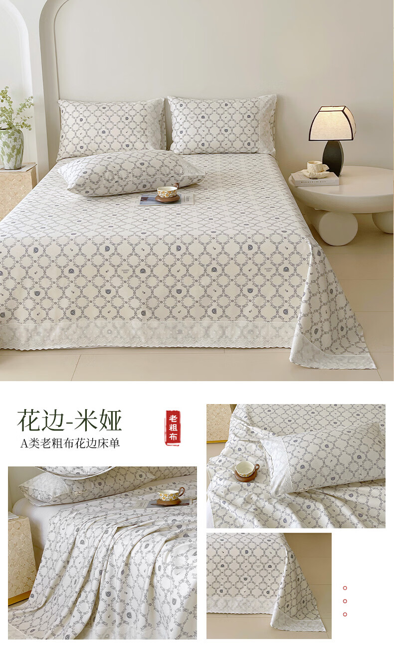 无印良品A类新疆全棉老粗布床单单件100%纯棉加厚被单花边款家用双人床罩 花边-琴南 【100%新疆全棉老粗布】 200cm*230cm -单床单