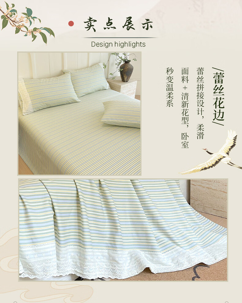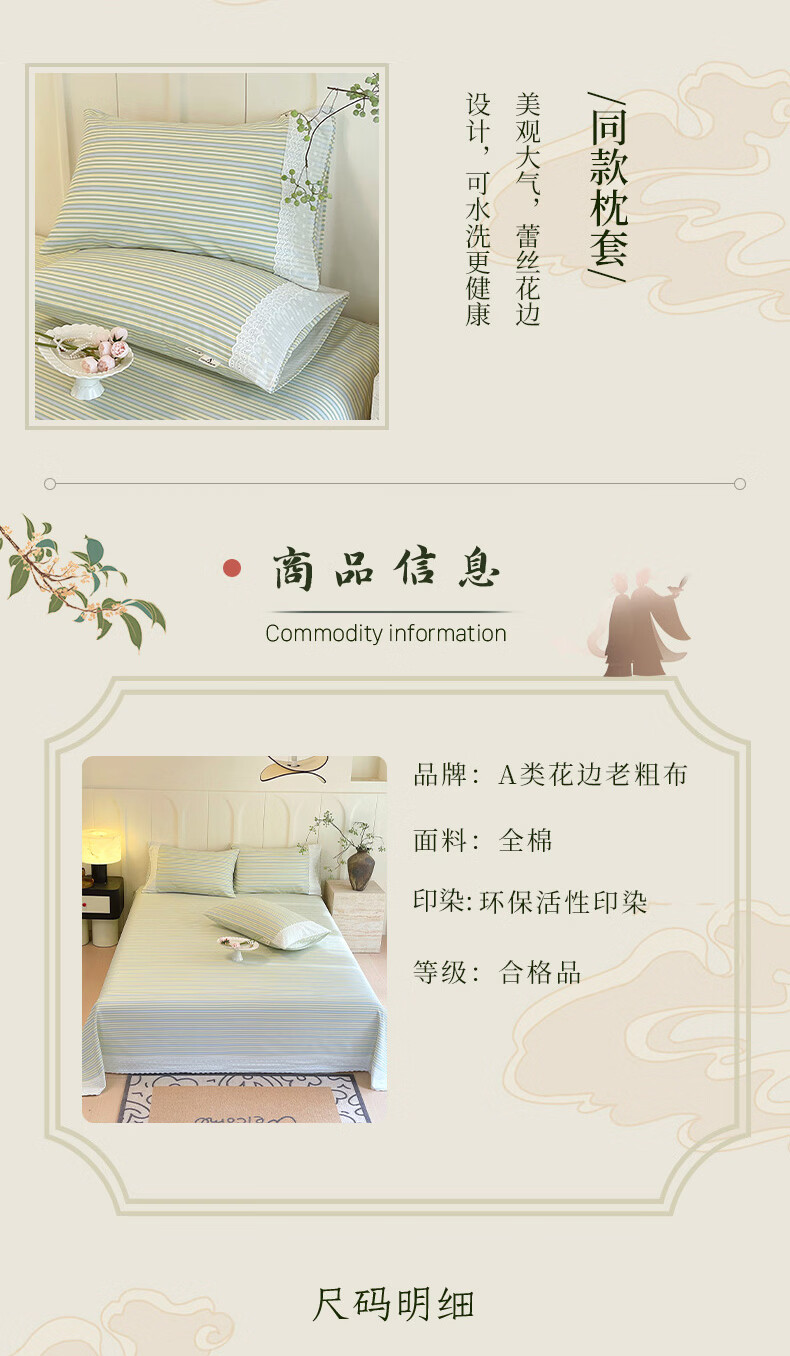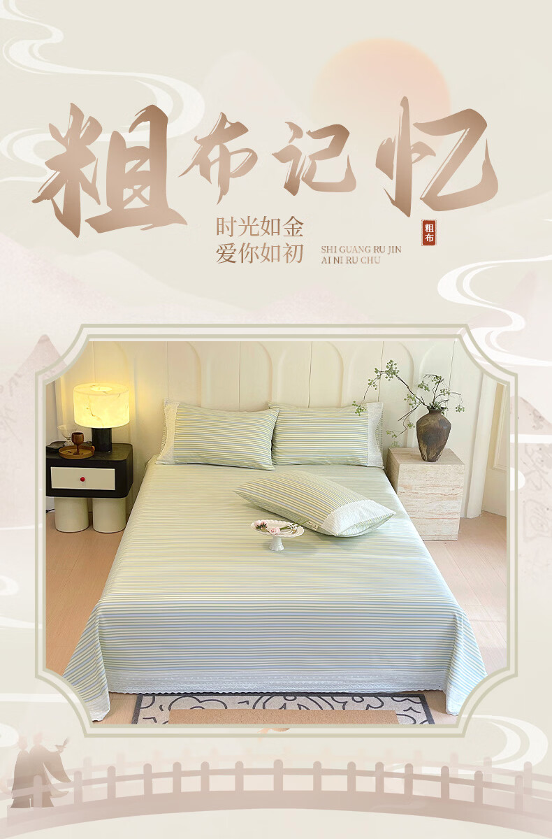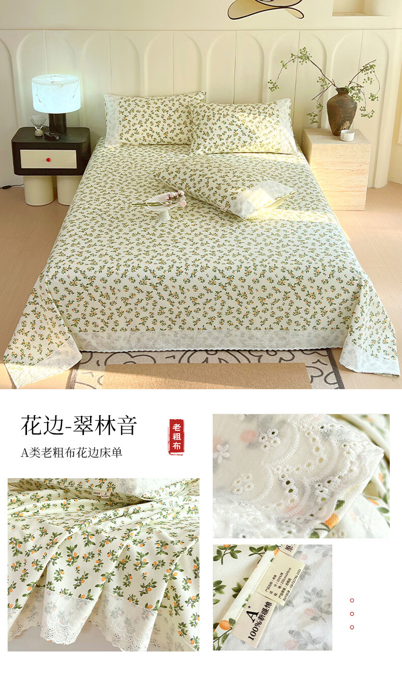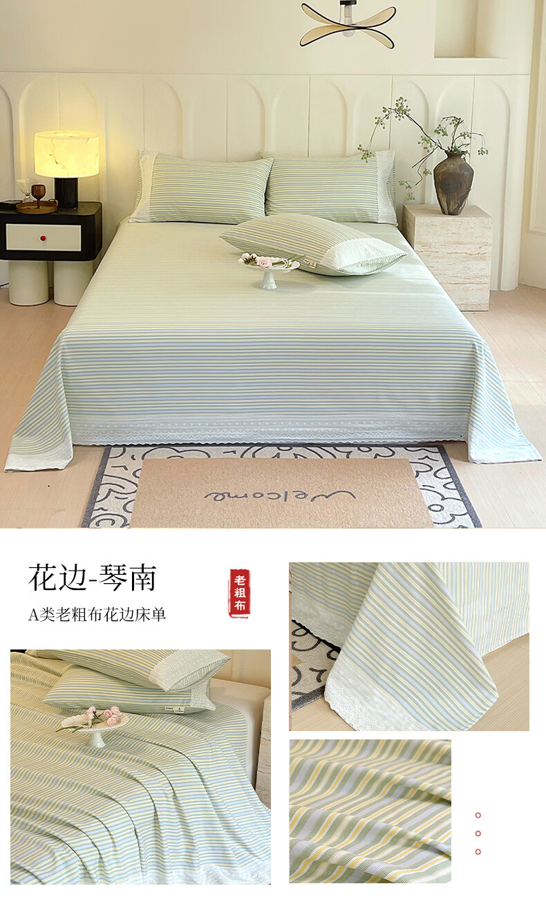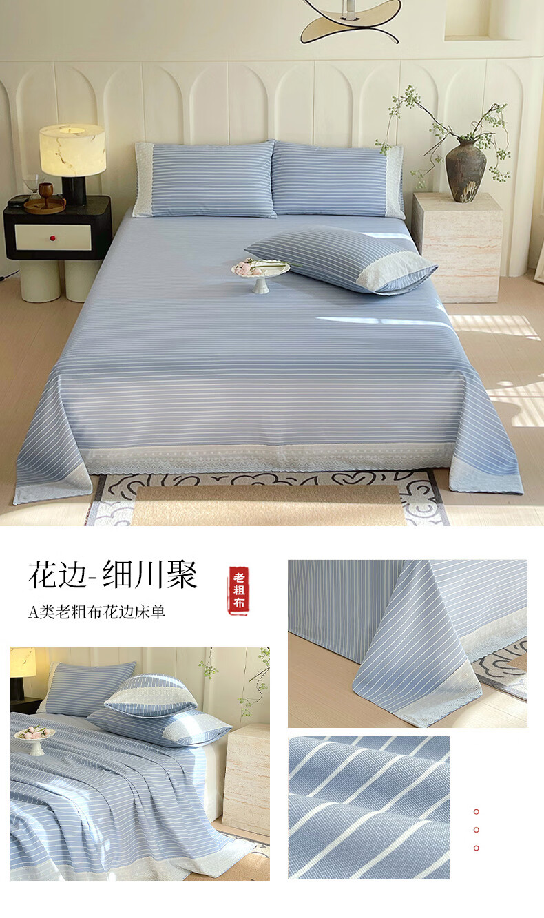 无印良品A类新疆全棉老粗布床单单件100%纯棉加厚被单花边款家用双人床罩 花边-琴南 【100%新疆全棉老粗布】 200cm*230cm -单床单