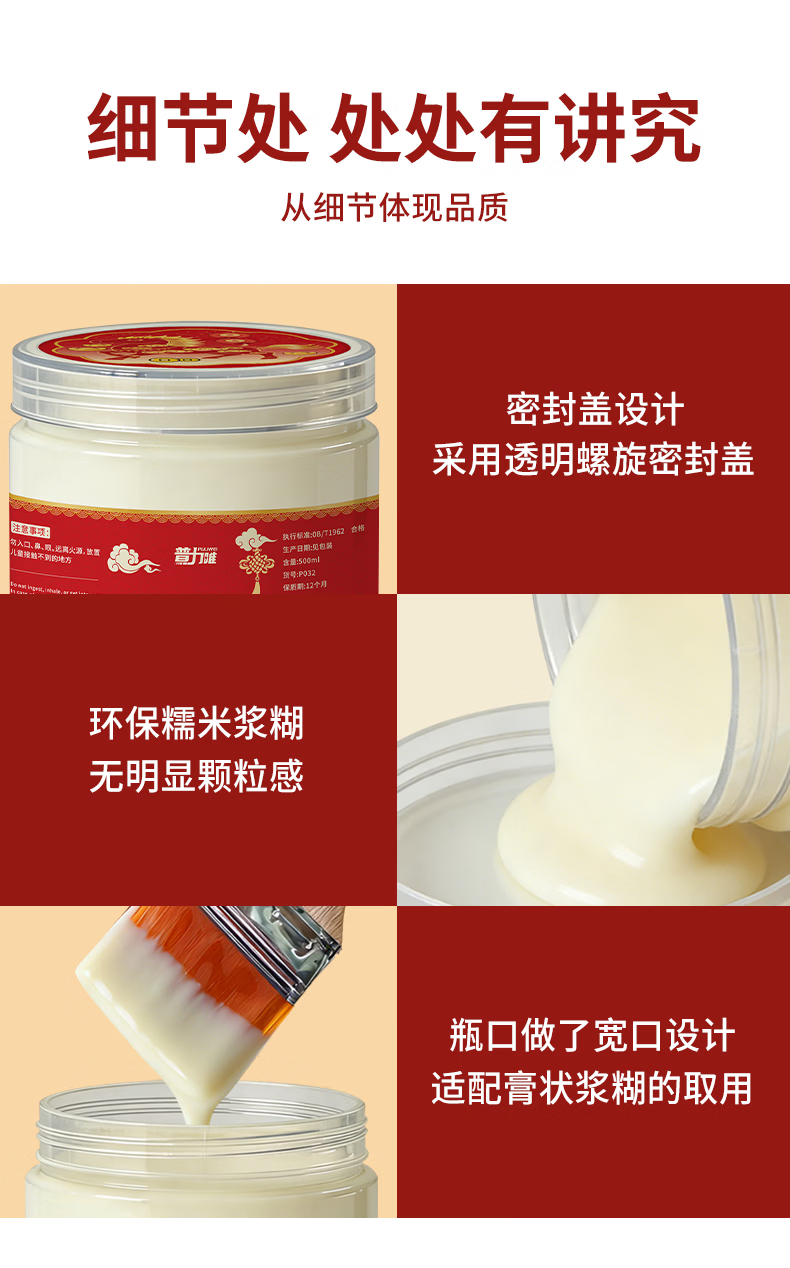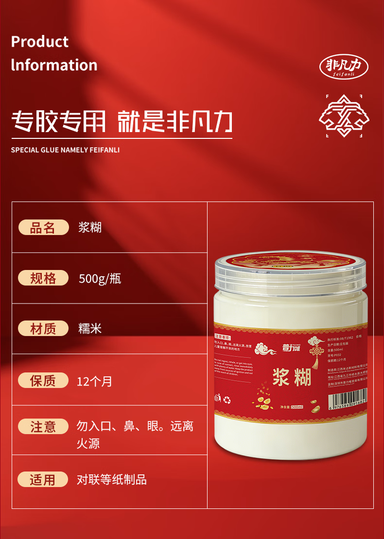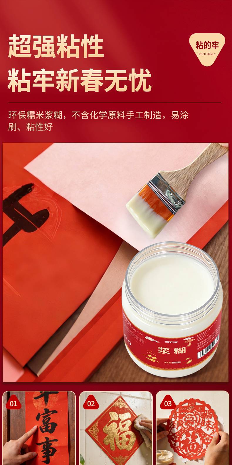 非凡力浆糊新春节春联专用浆糊胶贴新年对联粘过年福字窗花装裱书画广告糊墙粘胶 【新春款】优质浆糊500ml*1瓶 无规格