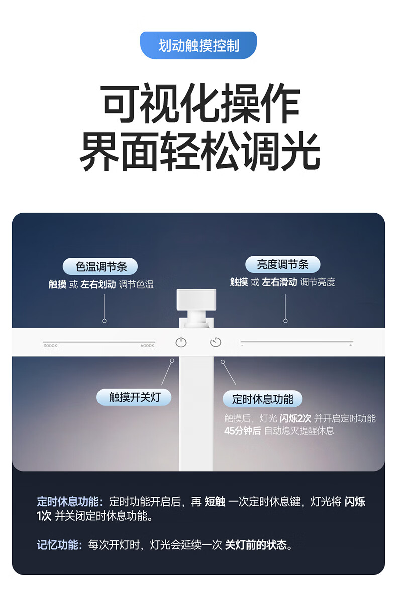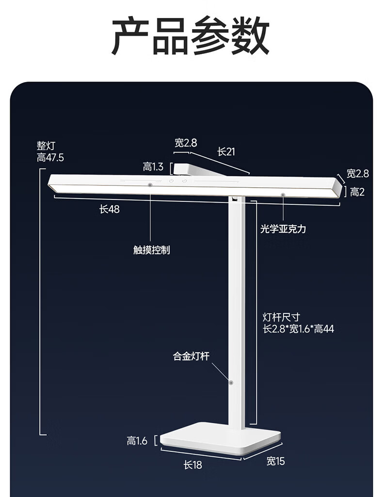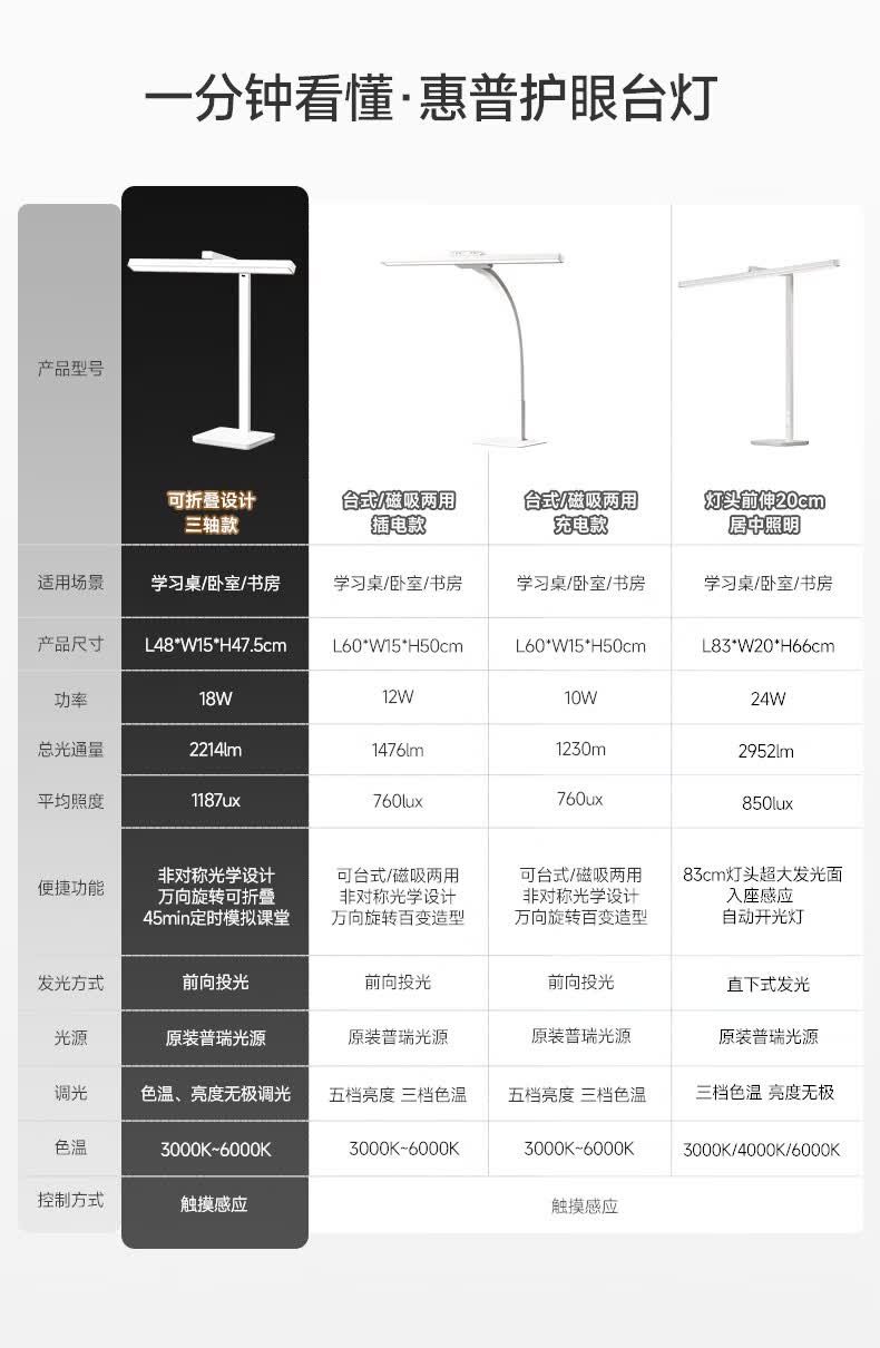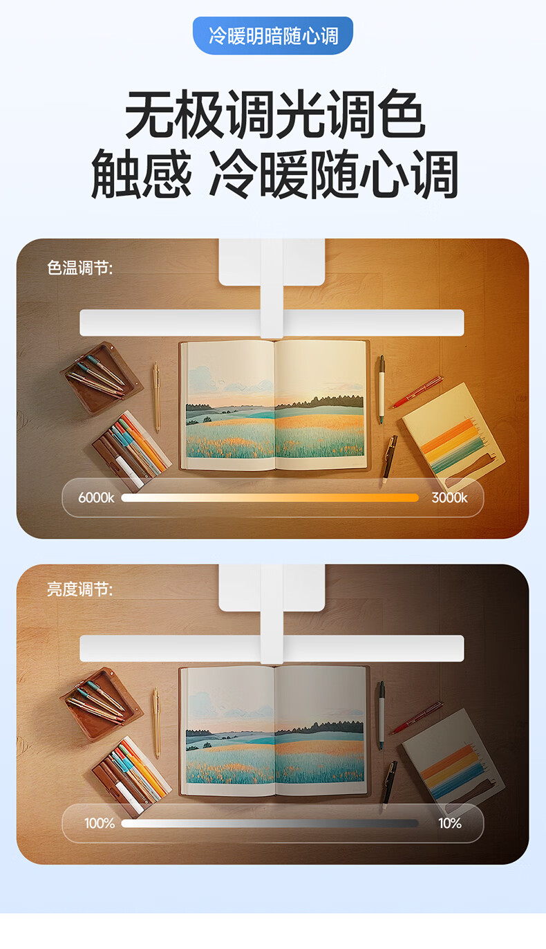 惠普台灯护眼学习学生专用台灯触控调光长条卧室宿舍书桌读写灯天使光