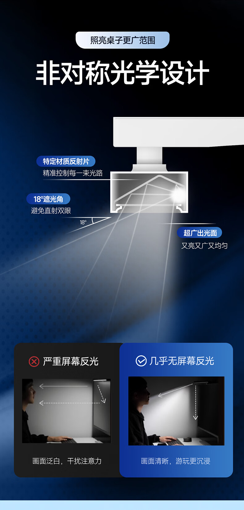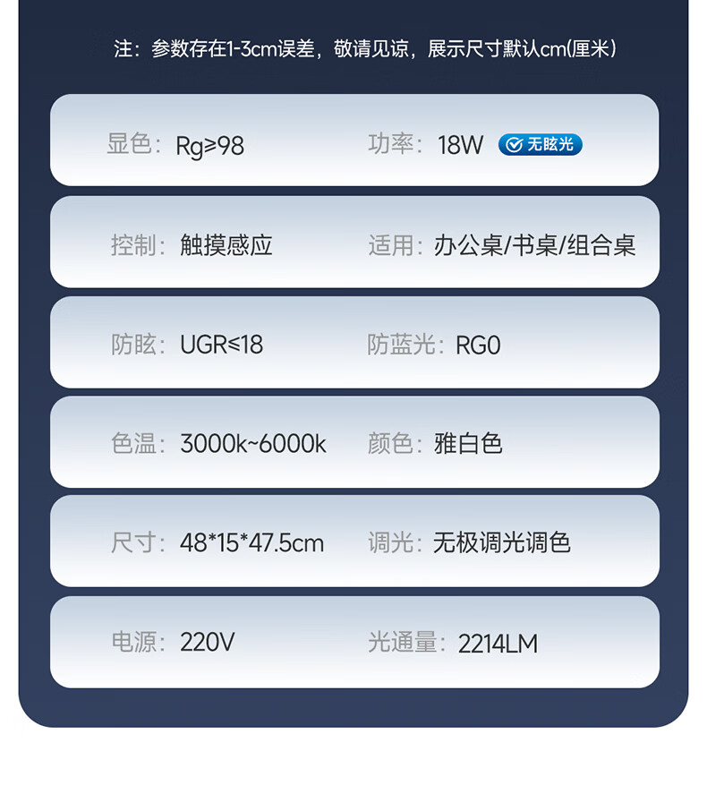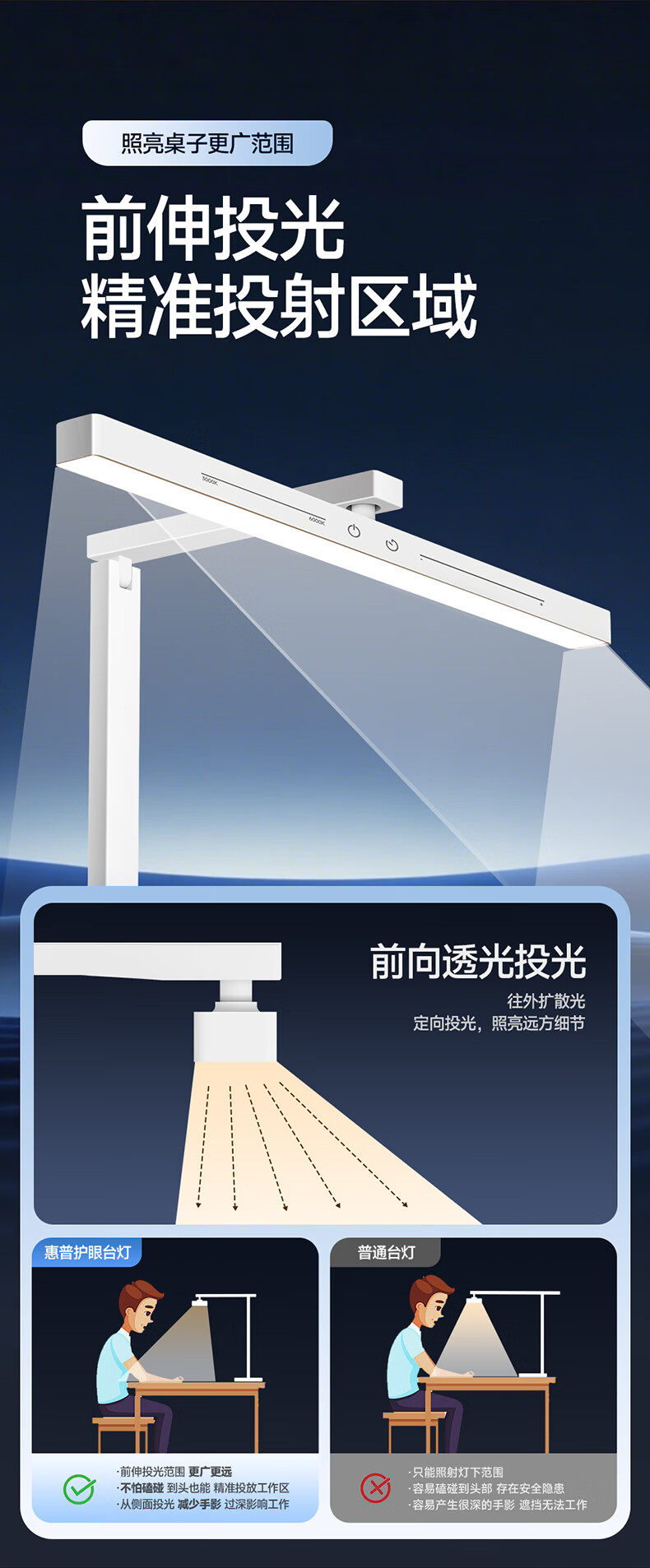 惠普台灯护眼学习学生专用台灯触控调光长条卧室宿舍书桌读写灯天使光