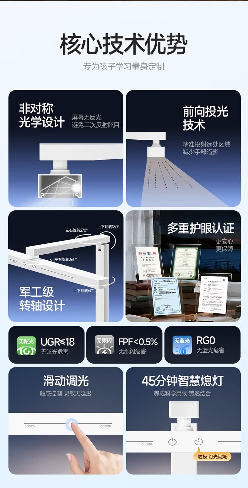 孩视宝国5a级儿童护眼灯学生学习防蓝光防近视全光谱学习桌宿舍台灯L5A