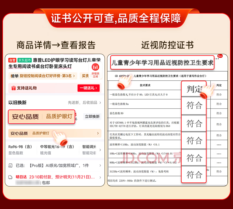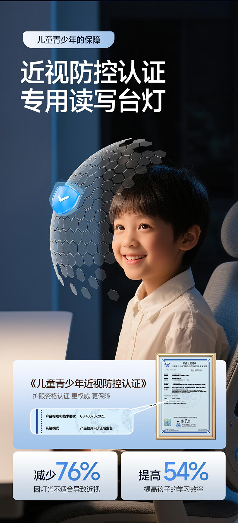 惠普近视防控普瑞无蓝光学生学习阅读台灯落地儿童卧室床头护眼大路灯