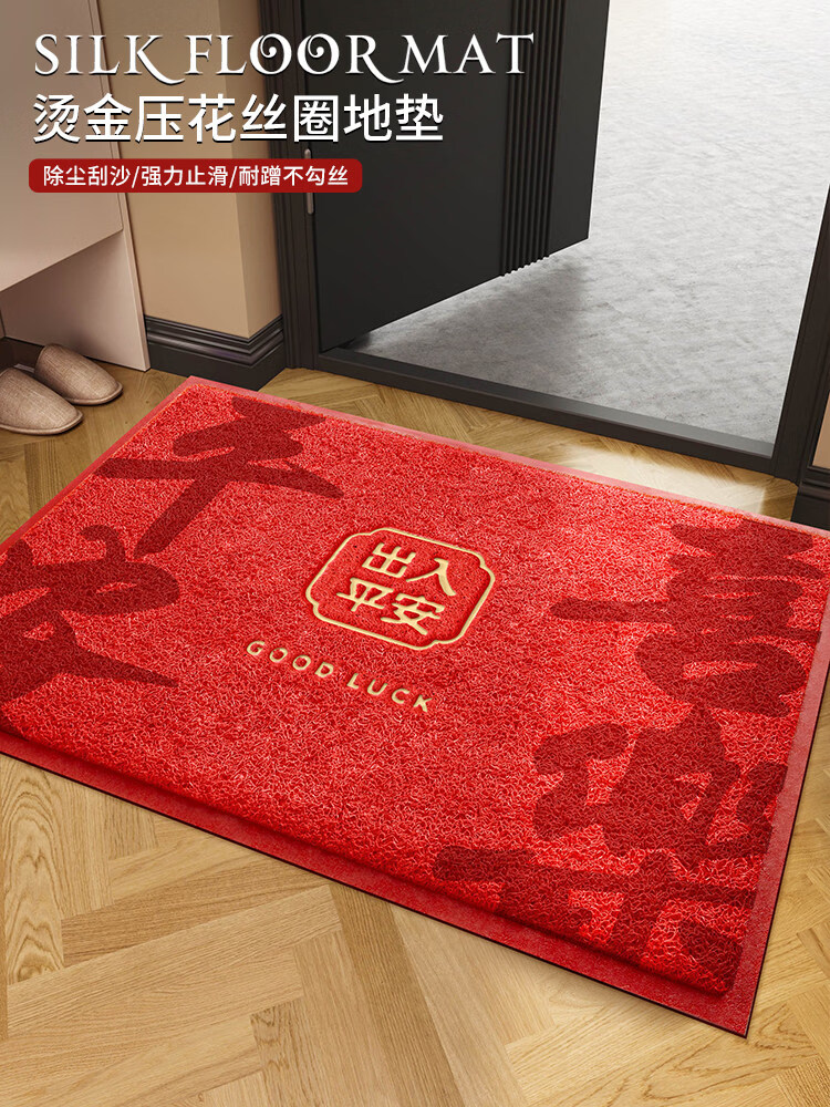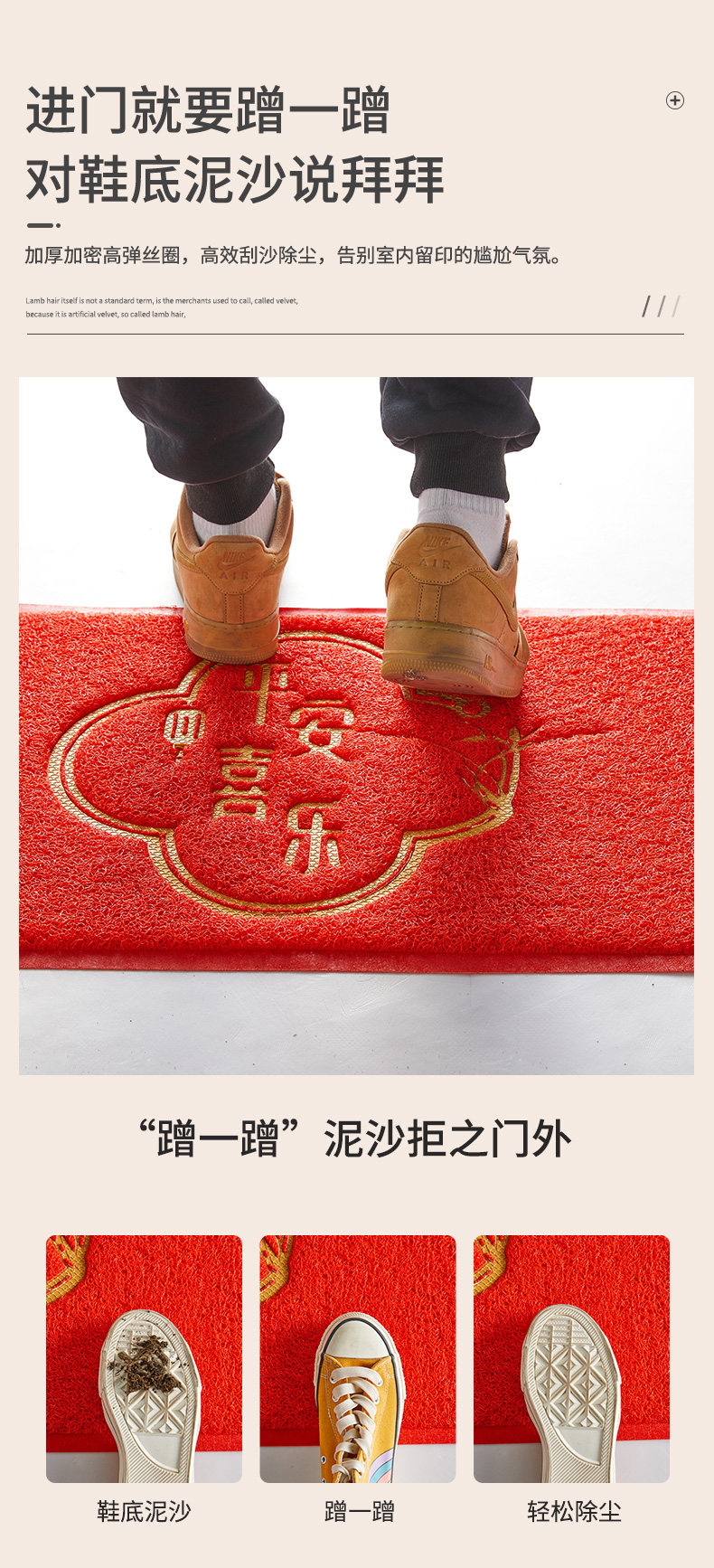 DONOYA 多罗亚门垫入户脚垫2026红色出入平安丝圈门口入户地垫入户门地垫 【喜乐出入平安】-贴皮压花丝圈-红色 50cm*80cm 【升级特厚 5年踩不坏】