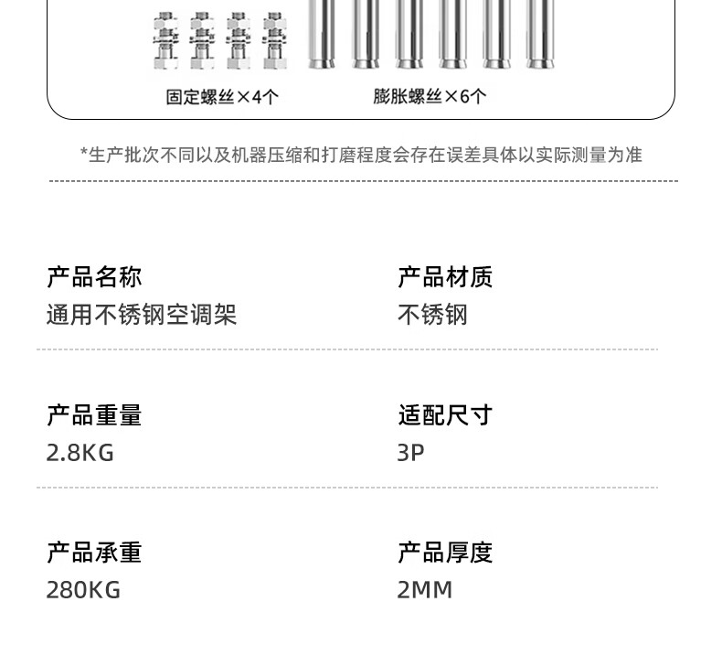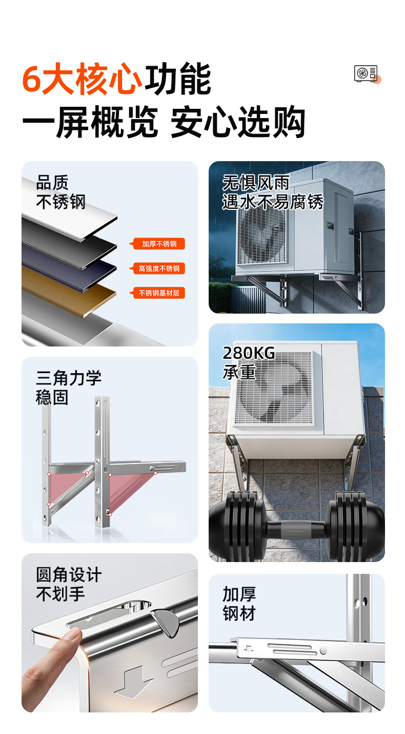 艾知瑞加厚不锈钢空调外机支架空调专用架加厚不锈钢空调支架适用奥克斯小米格力美的海尔科龙TCL等通用