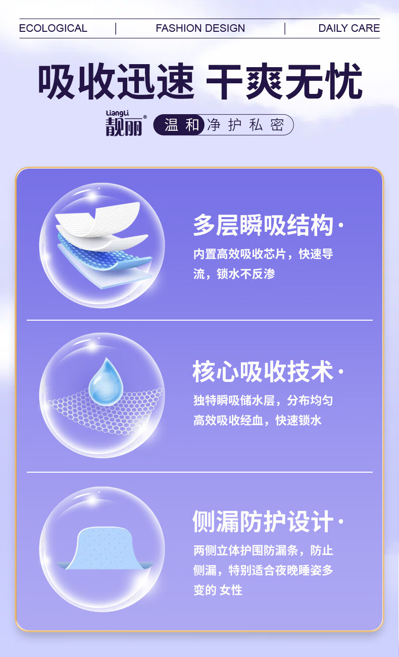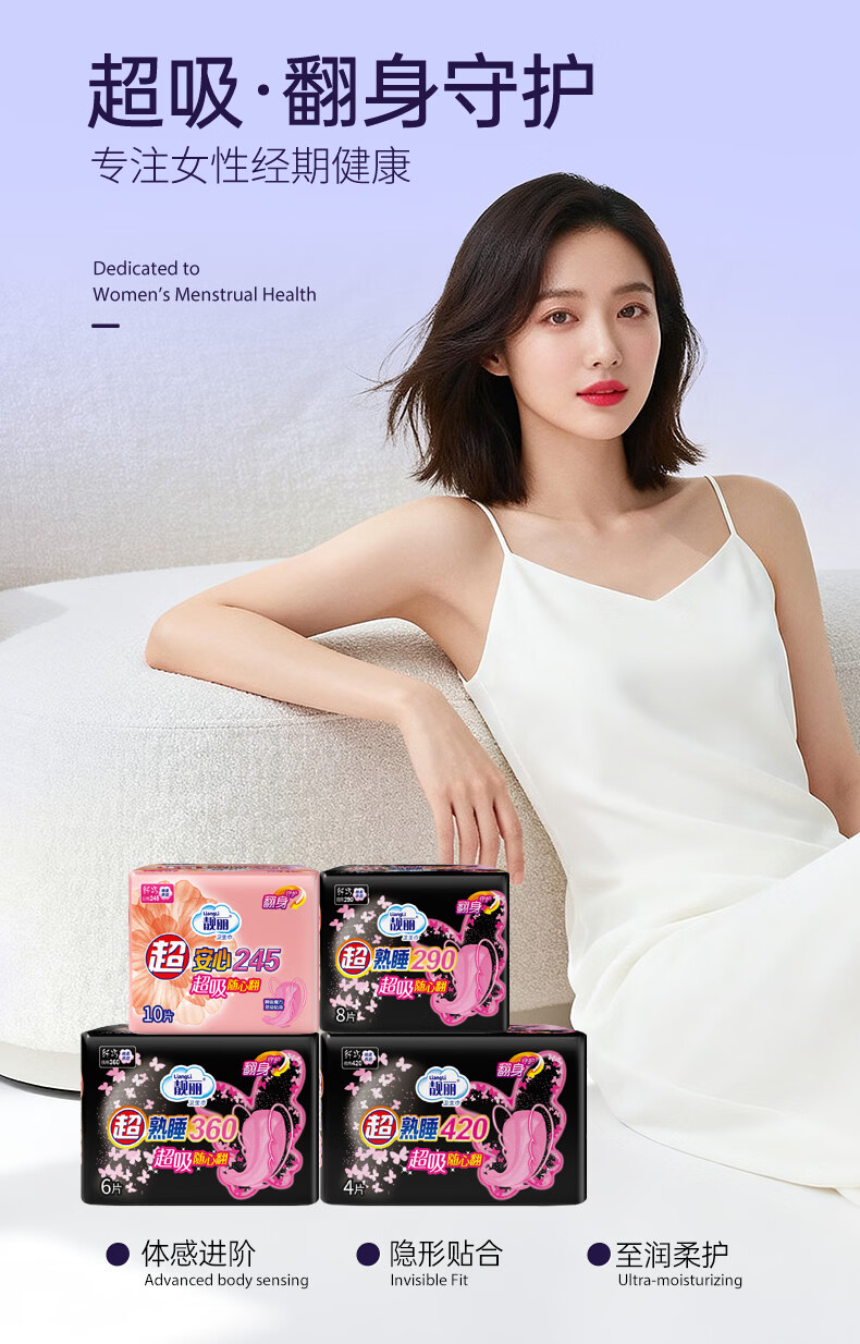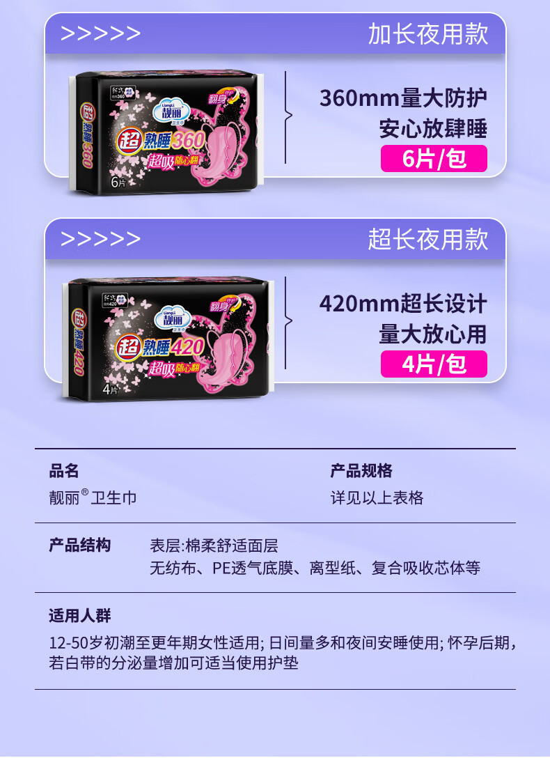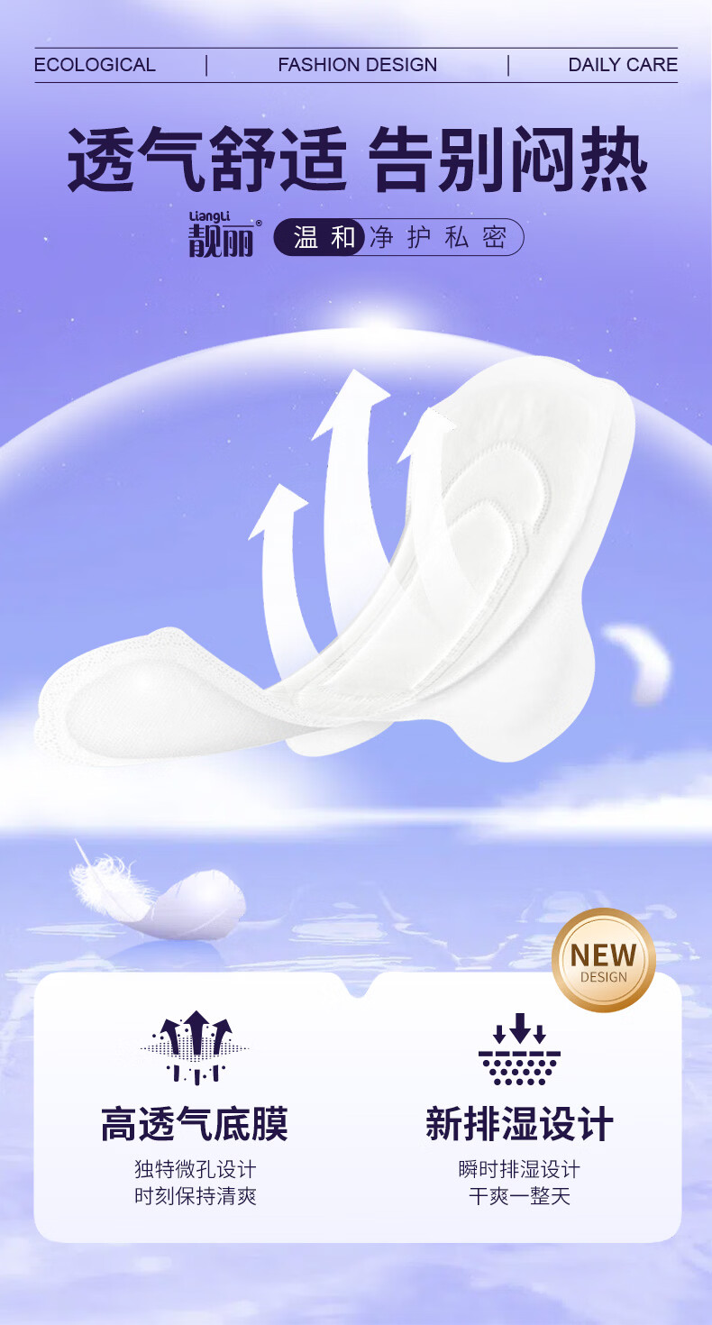【新国标】超熟睡卫生巾靓丽290夜用棉柔干爽自营包邮姨妈女防漏 棉柔 290mm 8片 绵柔卫生巾
