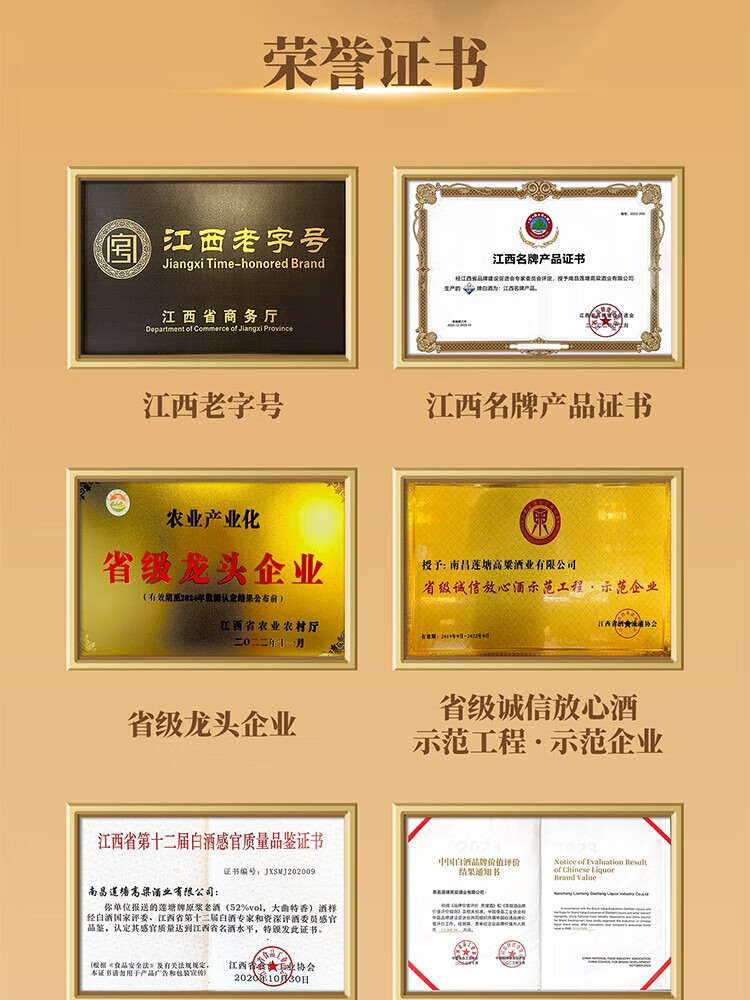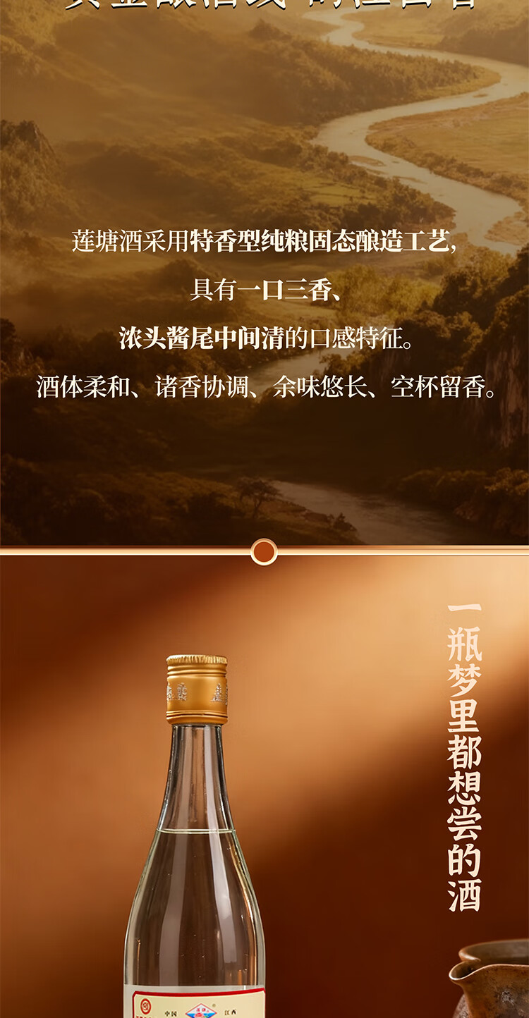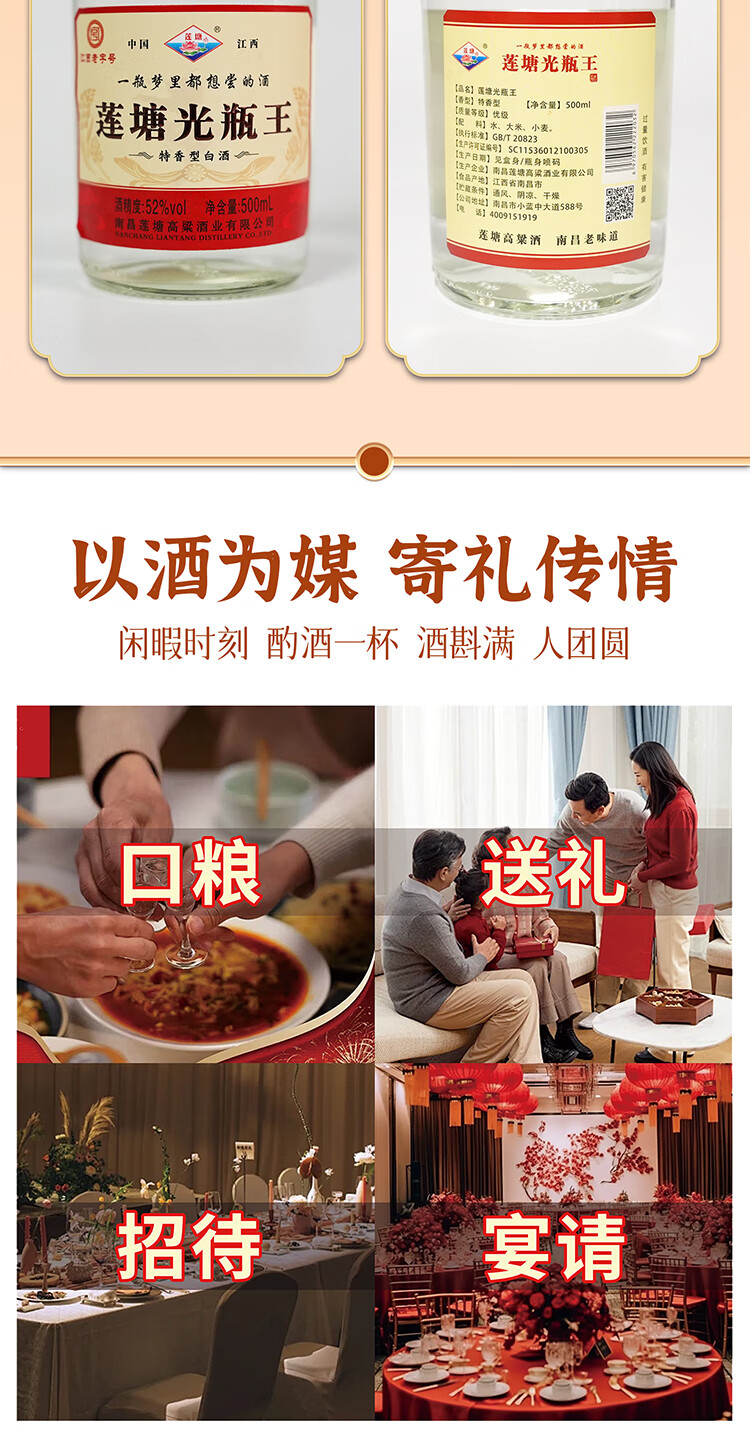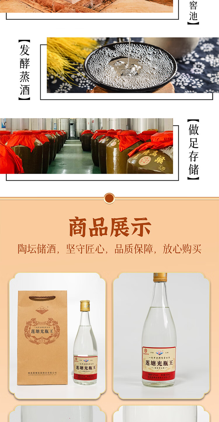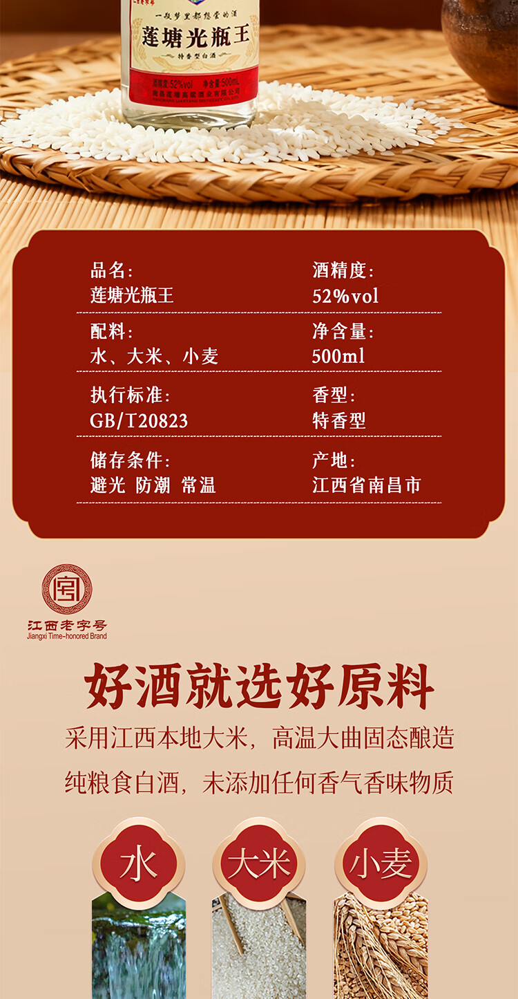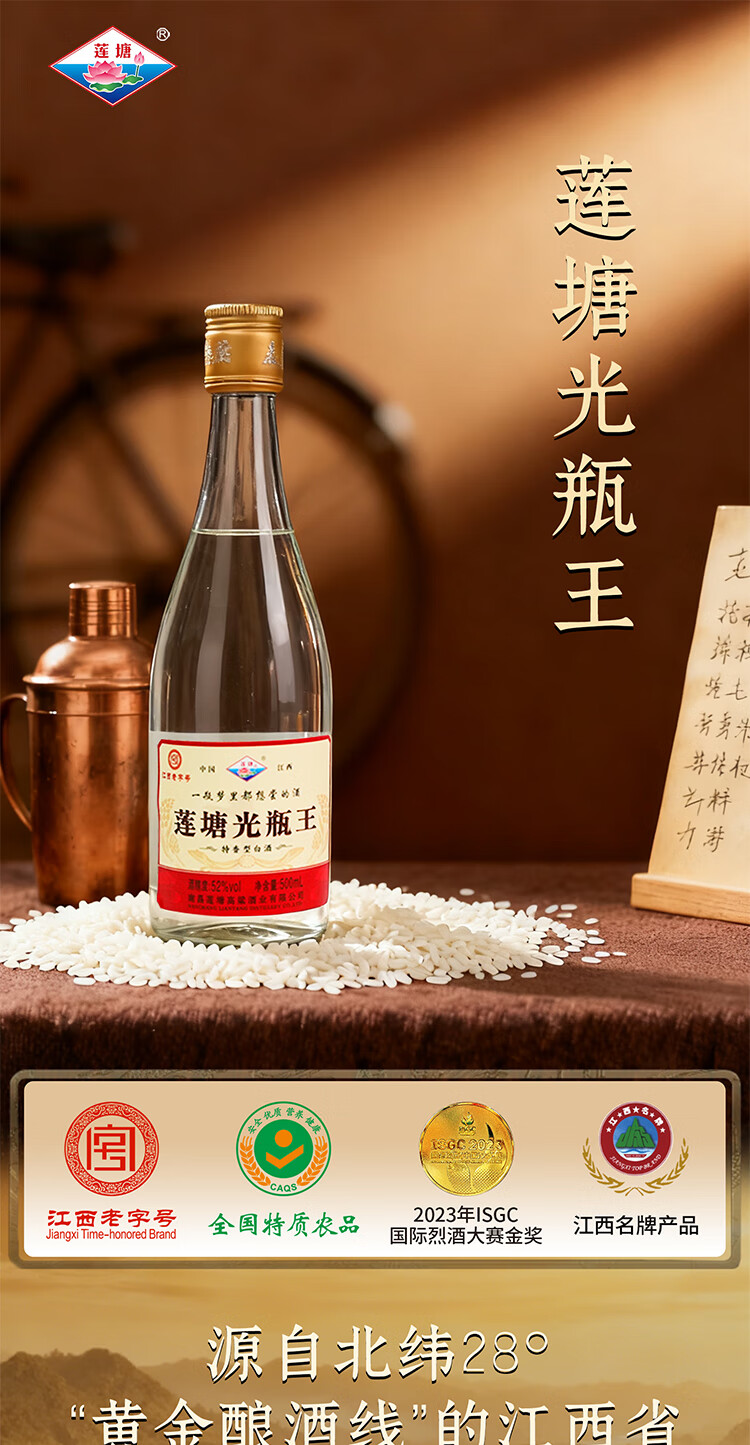 莲塘光瓶王特香型名酒52度500ml纯粮固态法年份老酒 江西老字号0添加 52%vol 500mL 6瓶 莲塘光瓶王