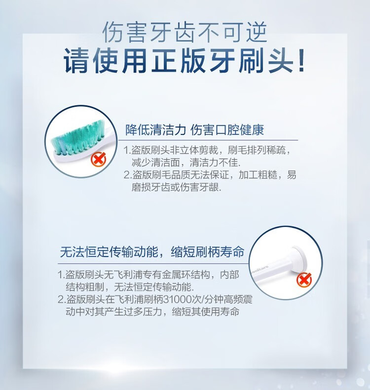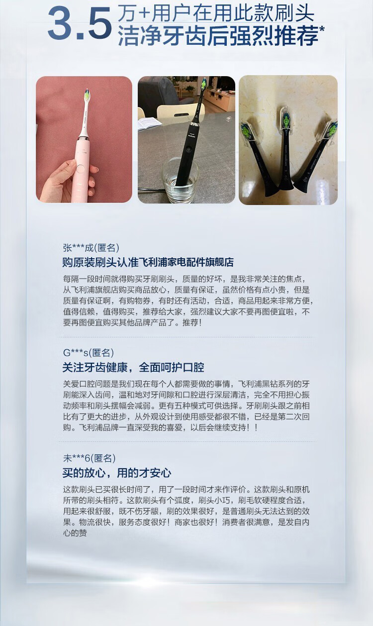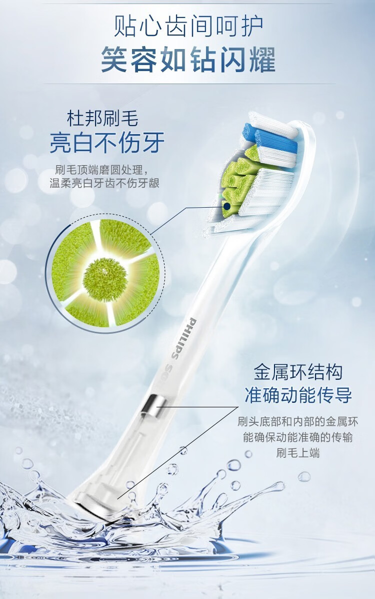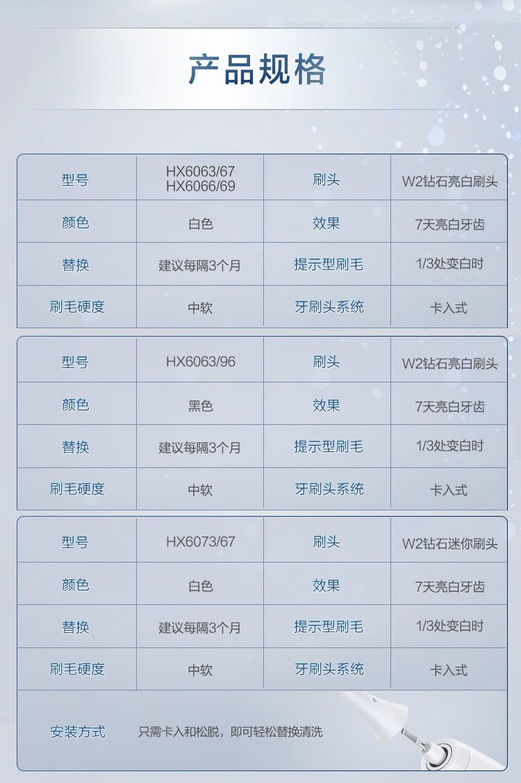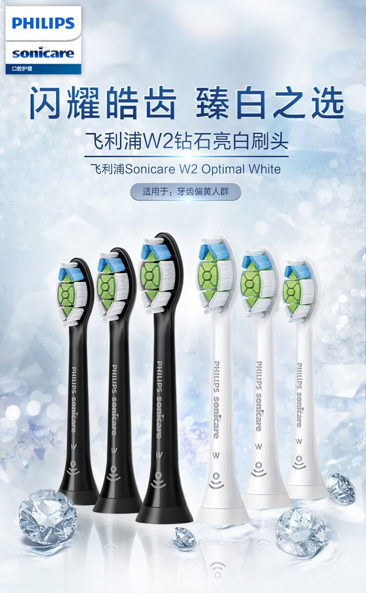 飞利浦(PHILIPS) 电动牙刷头适用HX9360HX9350HX9340HX6730HX9172 钻石亮白型HX6063 白色标准型 3支