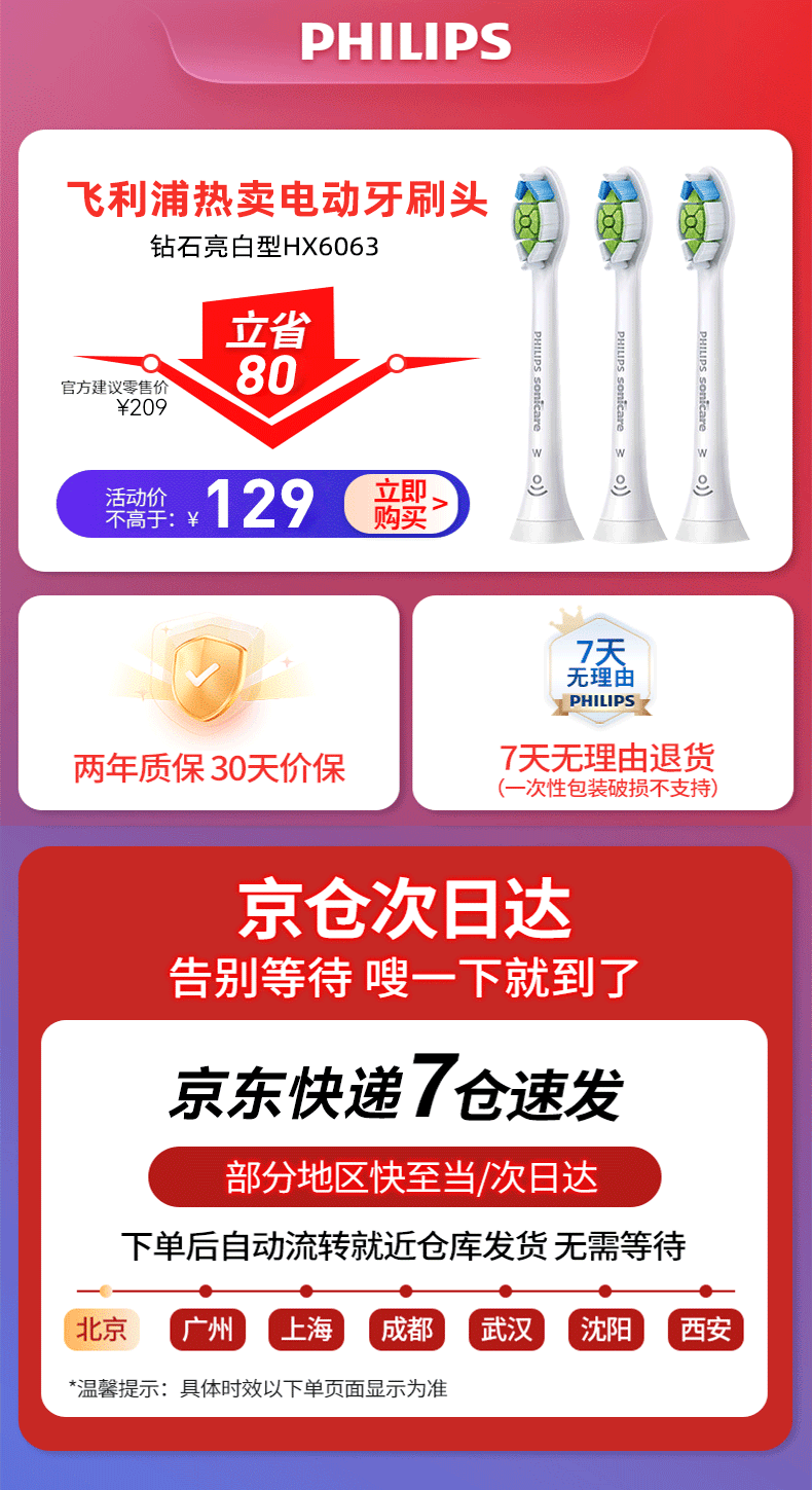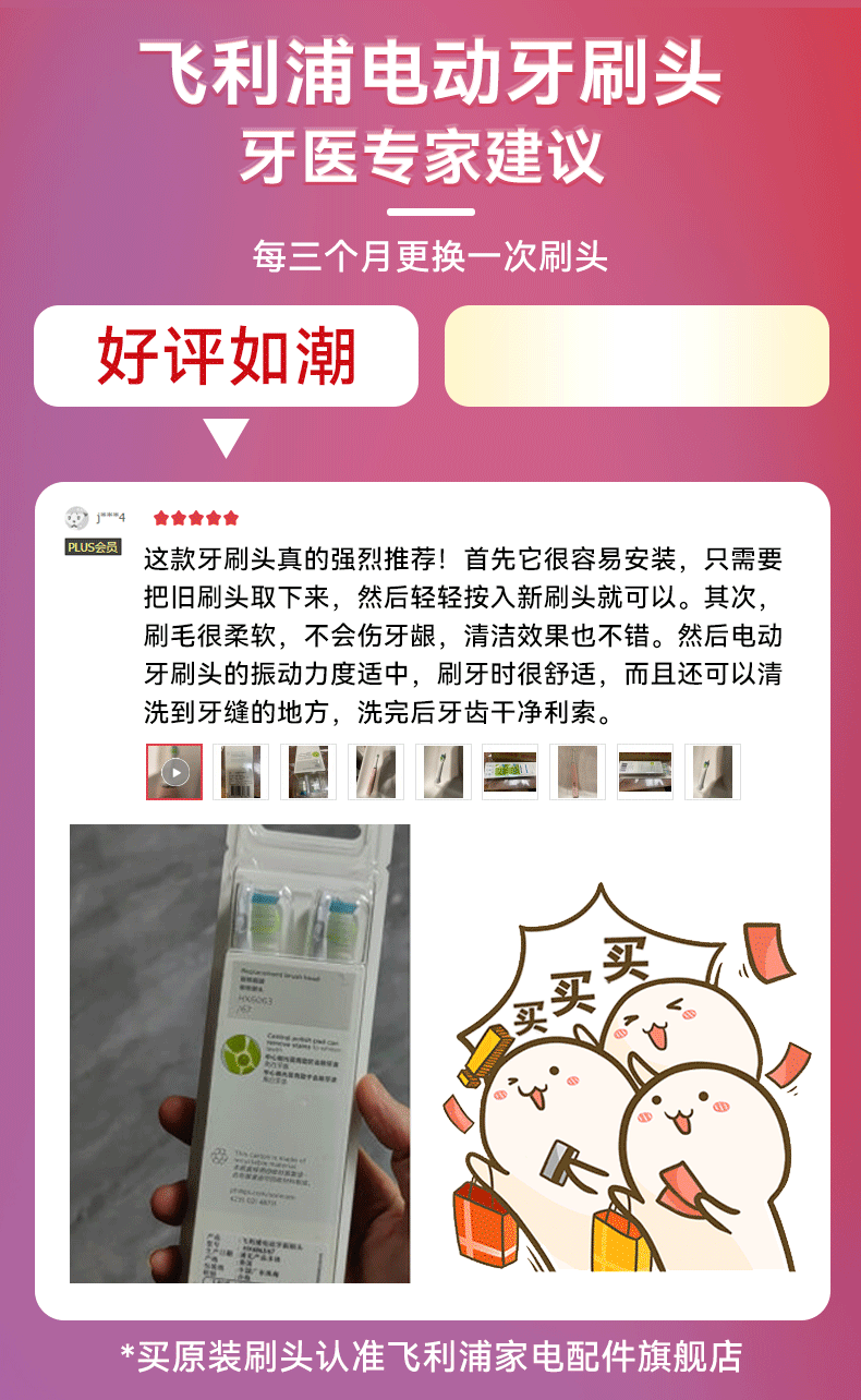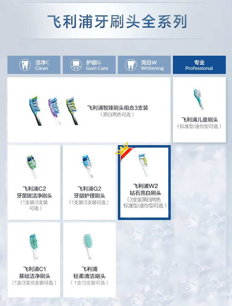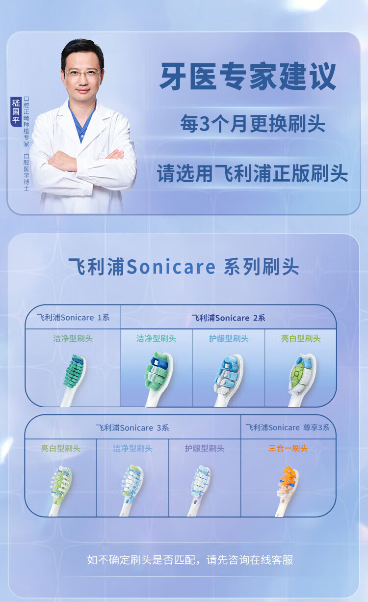 飞利浦(PHILIPS) 电动牙刷头适用HX9360HX9350HX9340HX6730HX9172 钻石亮白型HX6063 白色标准型 3支
