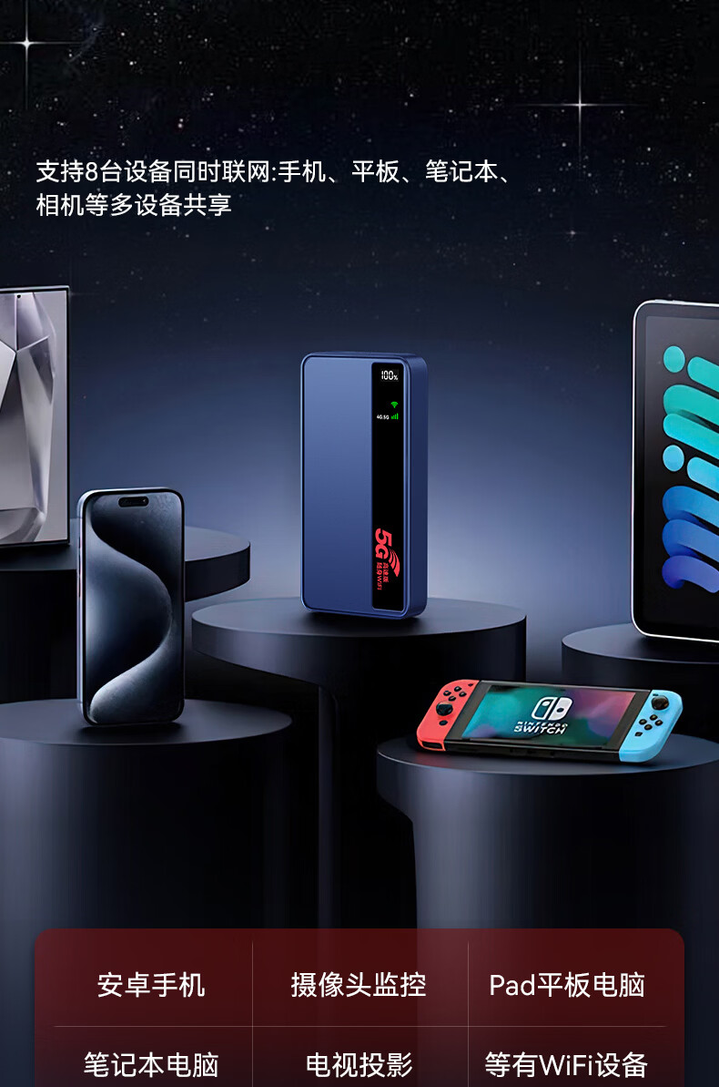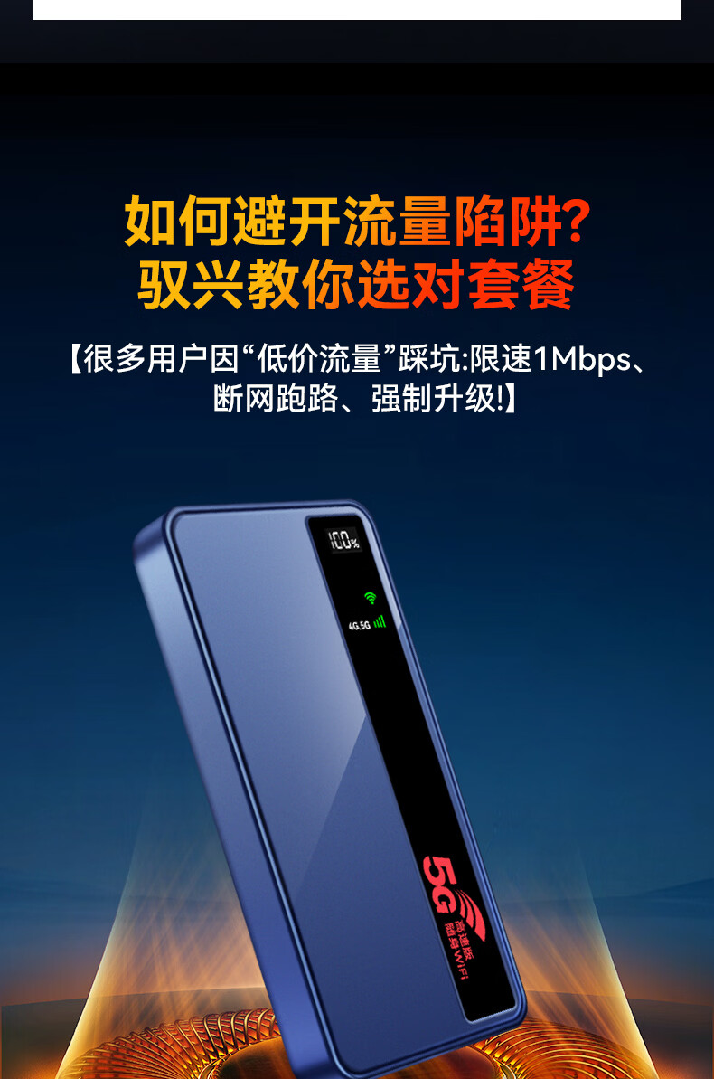 驭兴【海思巴龙芯】5g随身wifi无线流量2026款全国通用三网通免插卡移动车载wifi6便携式无限制路由器 10000毫安【5G至尊高速版】5G移动+5G电信 华为海思5G芯片+1500G试用流量