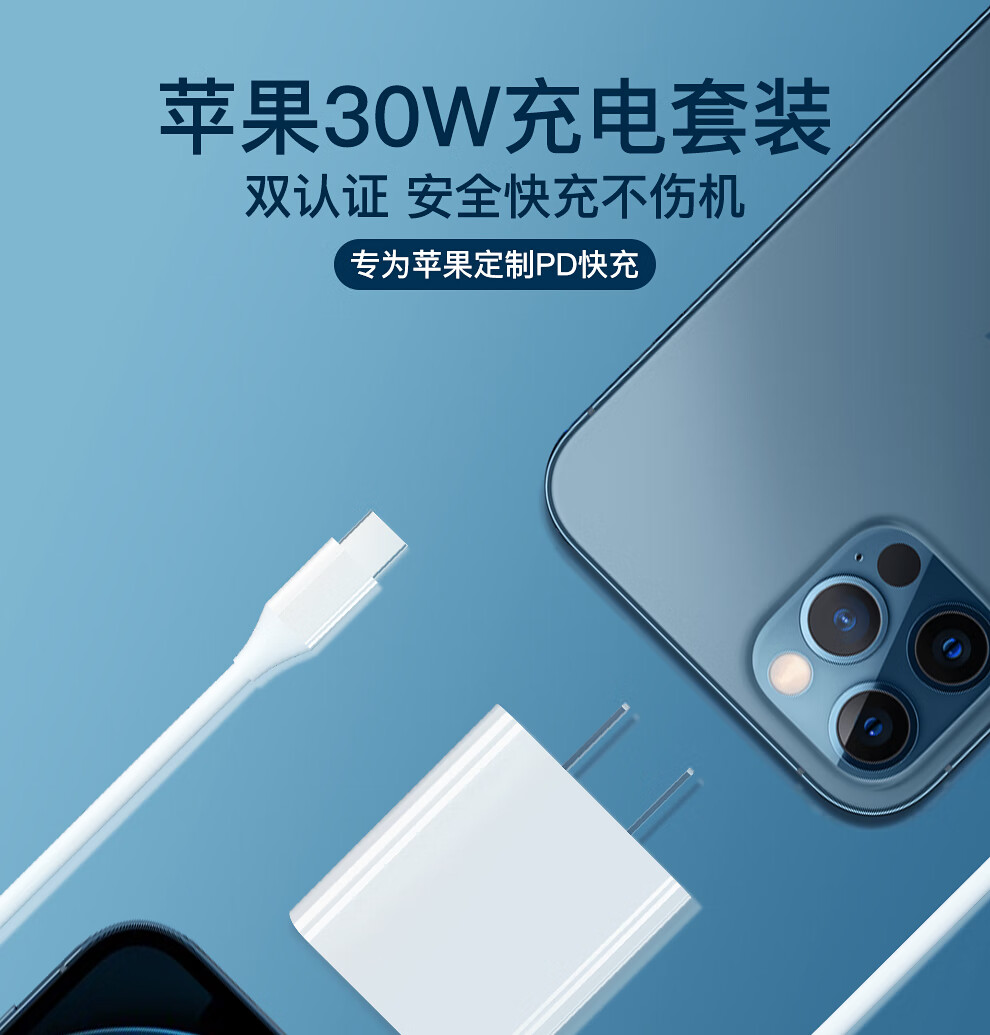 IMEV苹果充电器适配原装30W官.方氮化镓充电头快充iPhone14/13promax/pro/plus12/11手机插头线充套装 【原盒封装】苹果30W快充头+1米闪充线