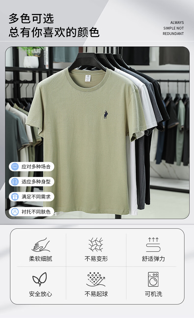 尺度保罗220g纯棉男士短袖T恤夏装薄款圆领纯色内搭半袖白t薄款透气上衣 BWG-211白色 M 推荐90-120斤
