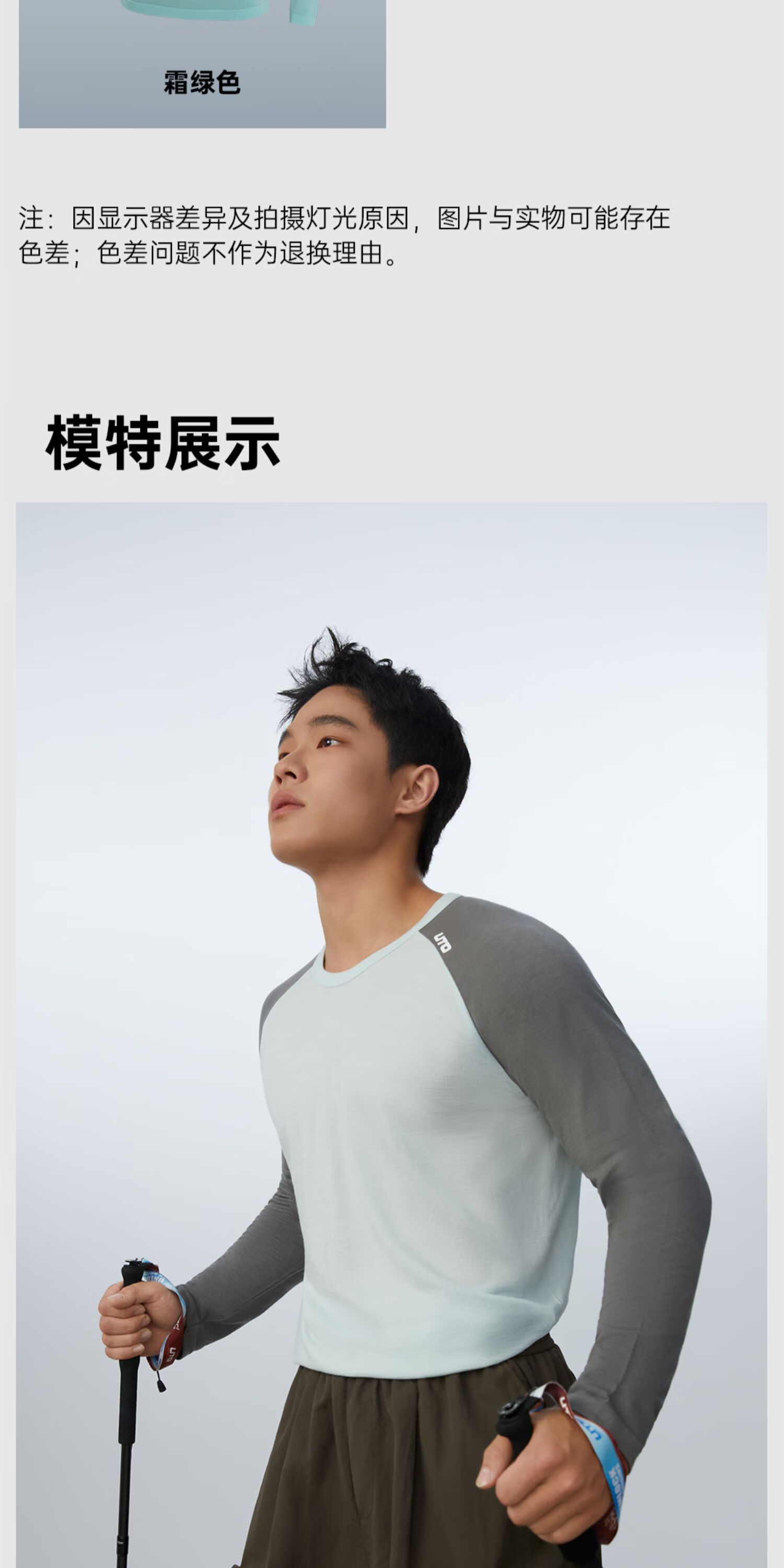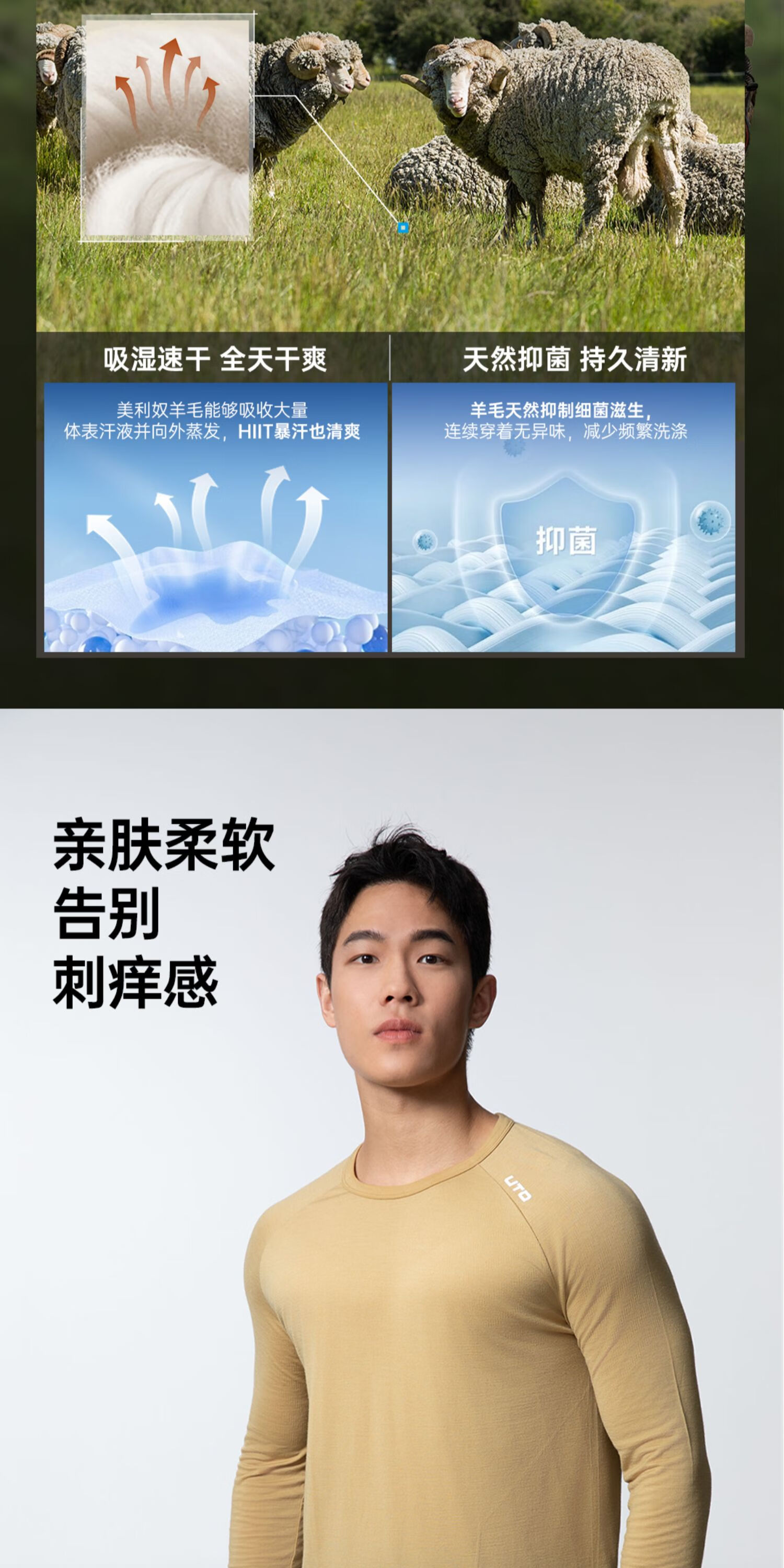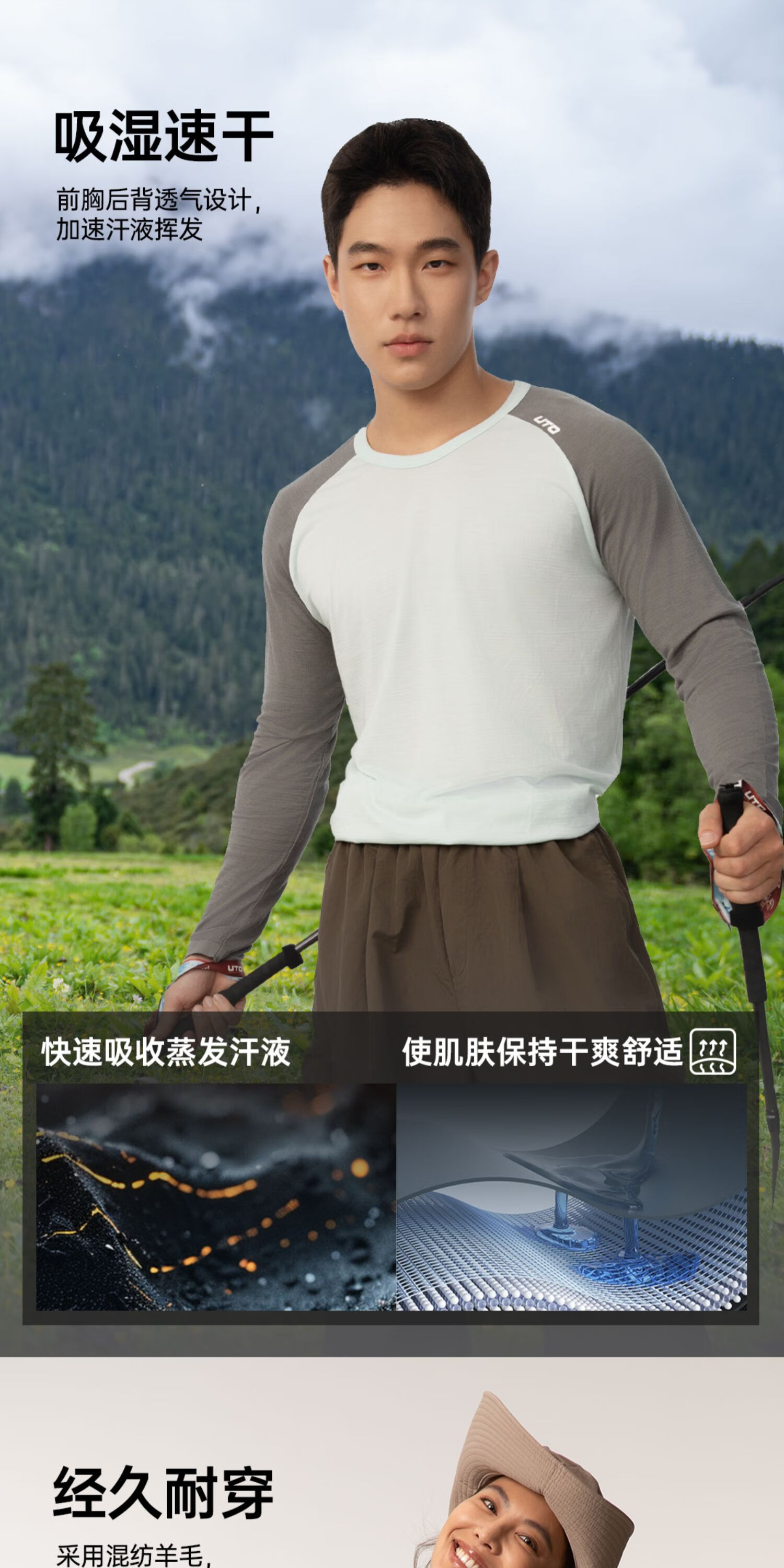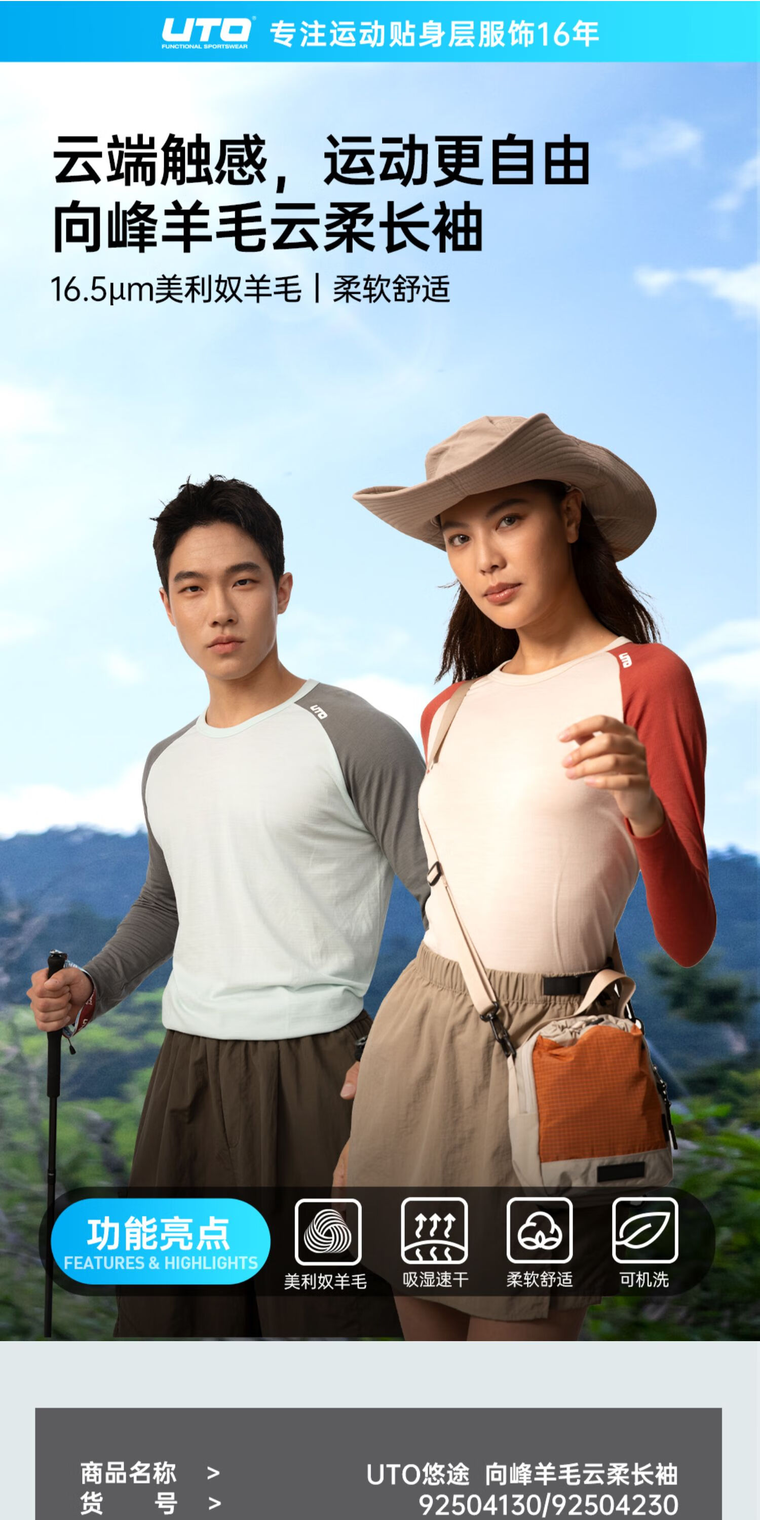 悠途(UTO) 美利奴羊毛速干衣长袖t恤向峰云柔男女士户外跑步运动打底衫 清水绿-男款 L