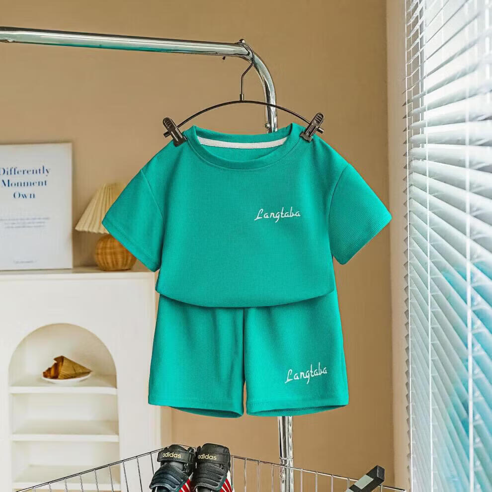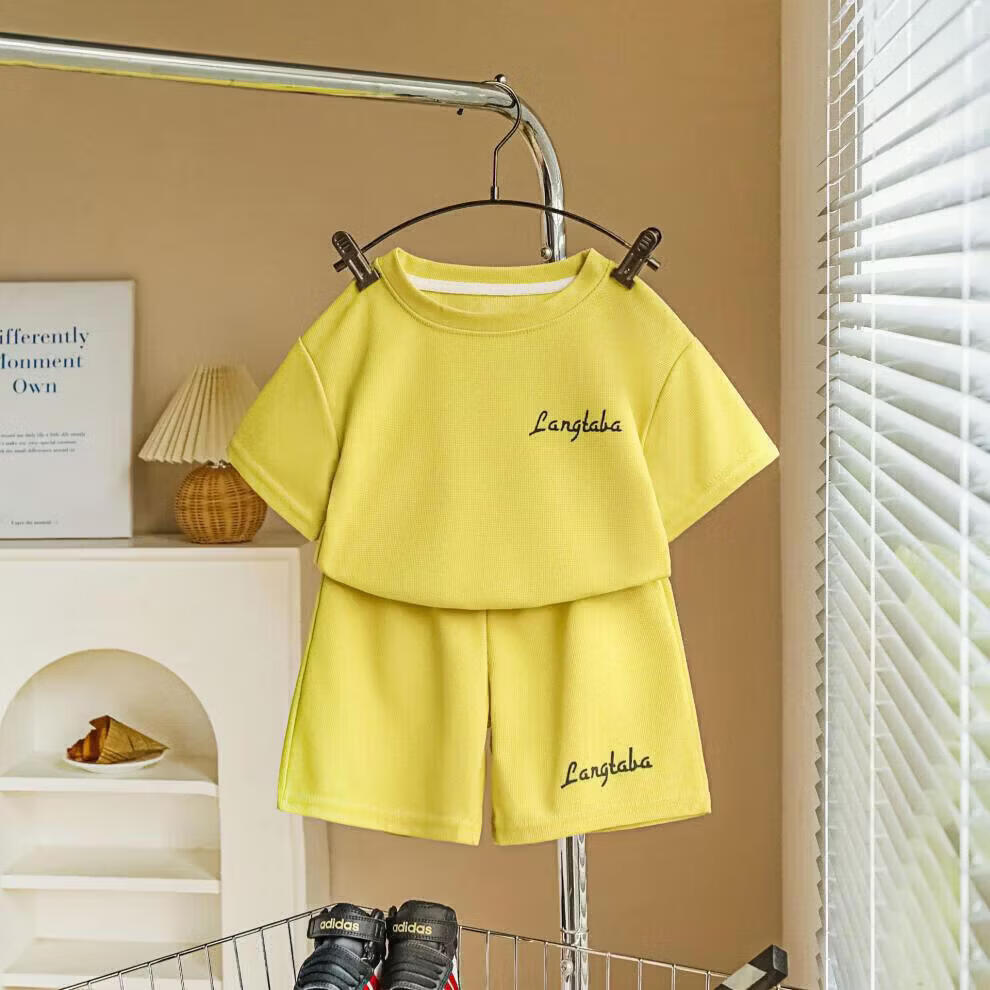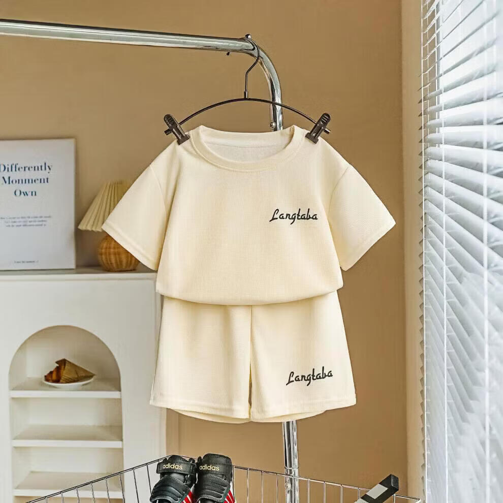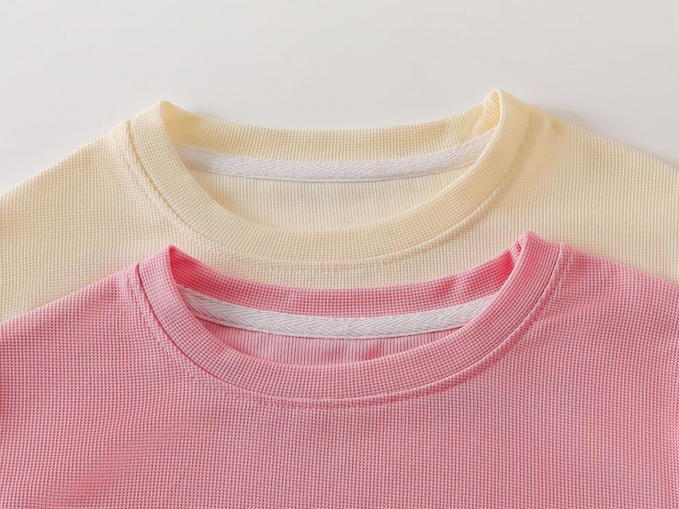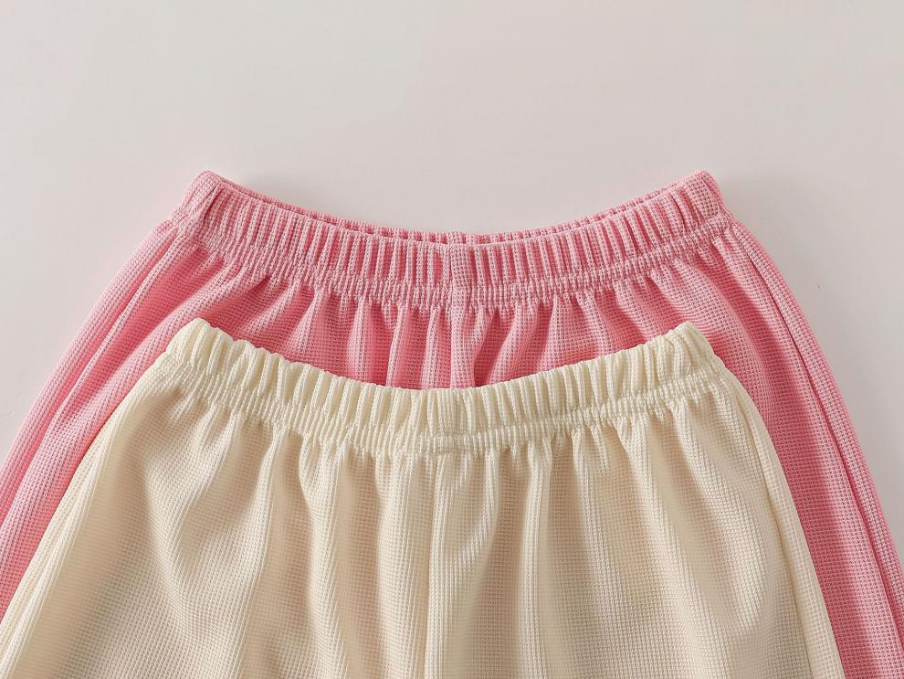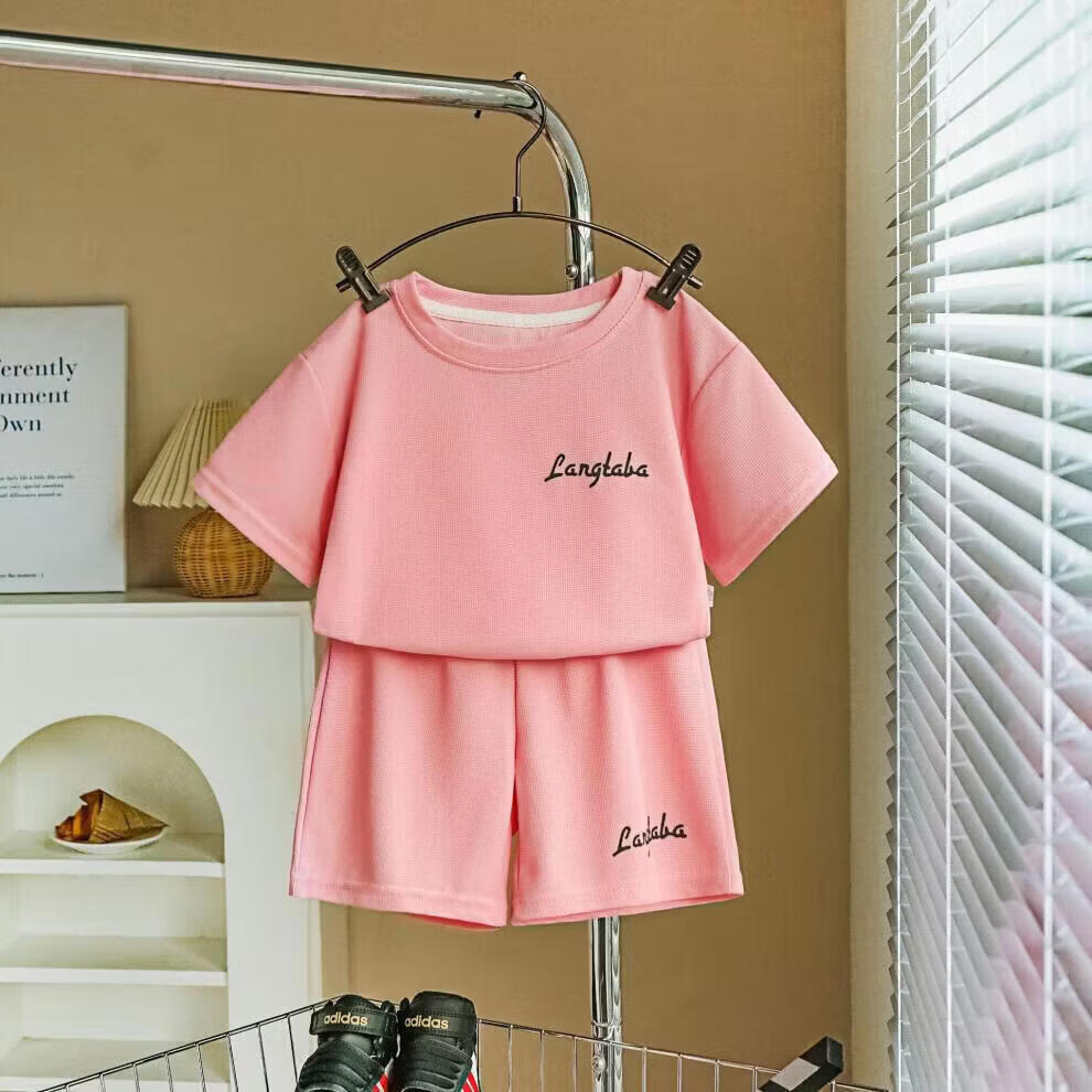 小猪班纳(PEPCO)儿童夏季套装新款华夫短袖两件套运动服男童女童休闲宽松韩系童装 华夫格-粉色短袖套装 涤纶 150 建议身高135-145cm