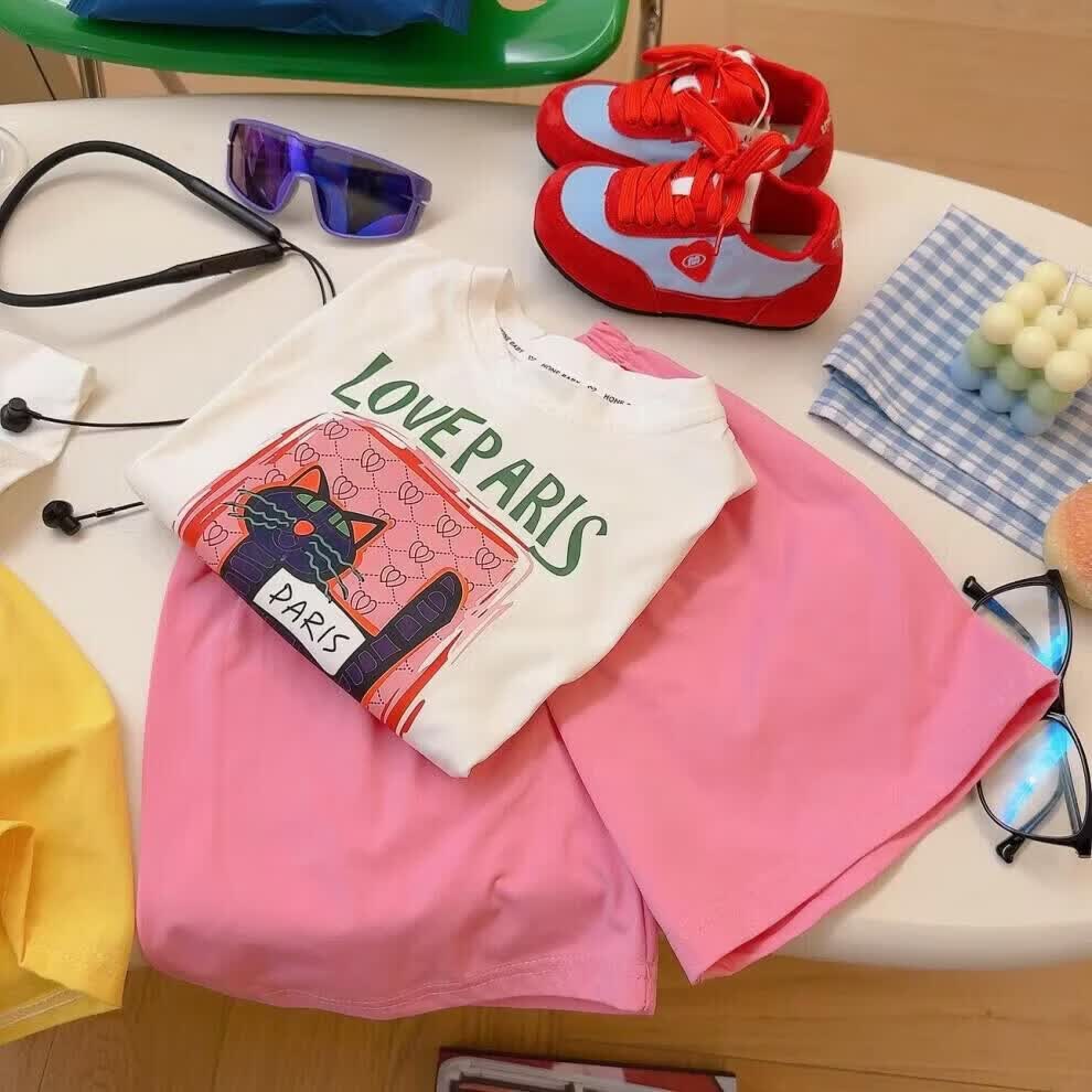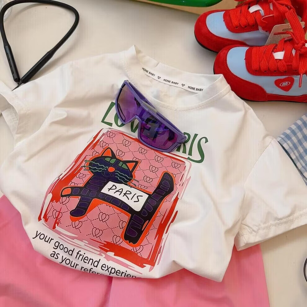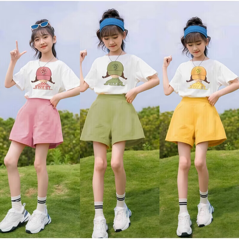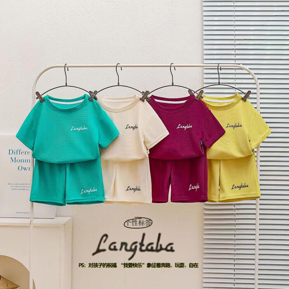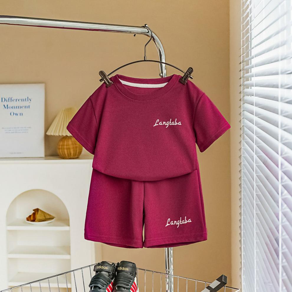 小猪班纳(PEPCO)儿童夏季套装新款华夫短袖两件套运动服男童女童休闲宽松韩系童装 华夫格-粉色短袖套装 涤纶 150 建议身高135-145cm