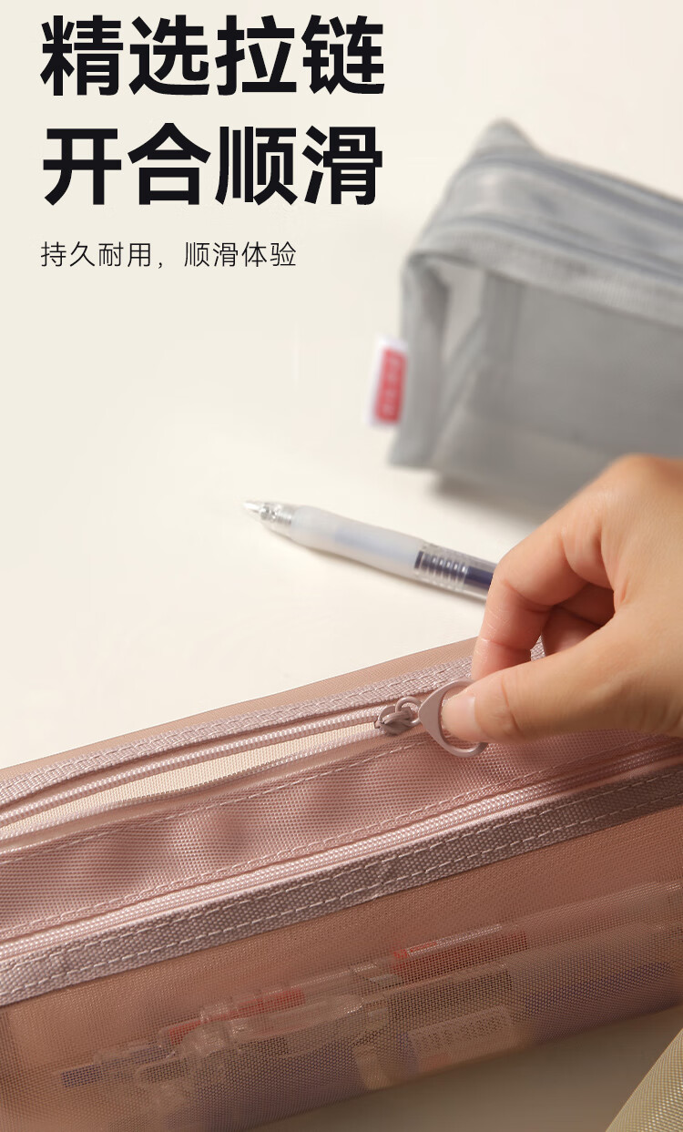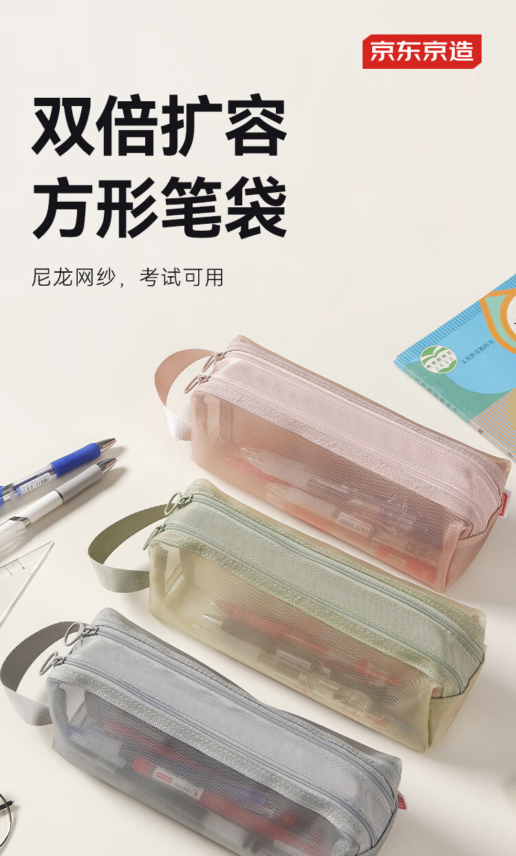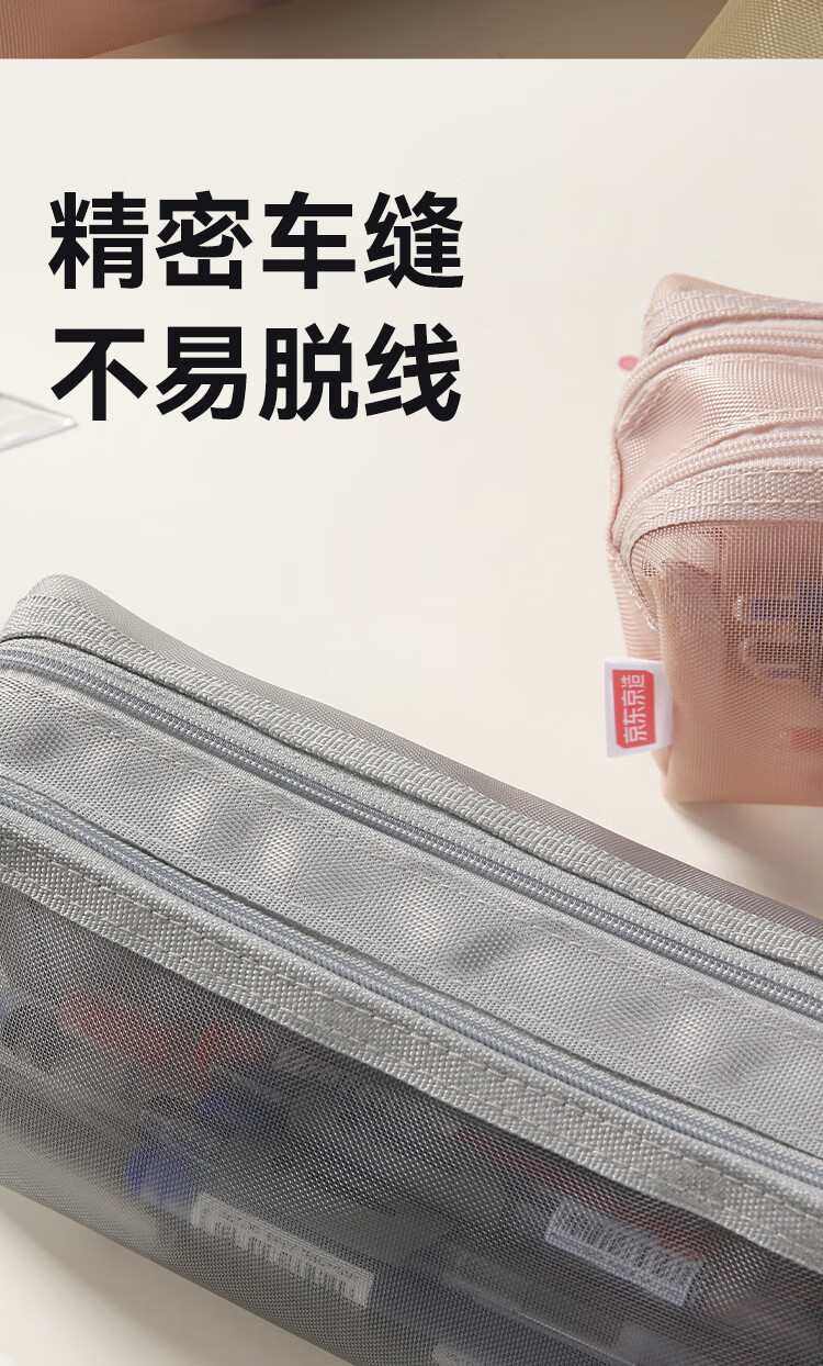 京东京造大容量双层笔袋 耐用网纱考试专用文具袋文具盒便携可带入考场 中高考考研适用 灰色 JD5021