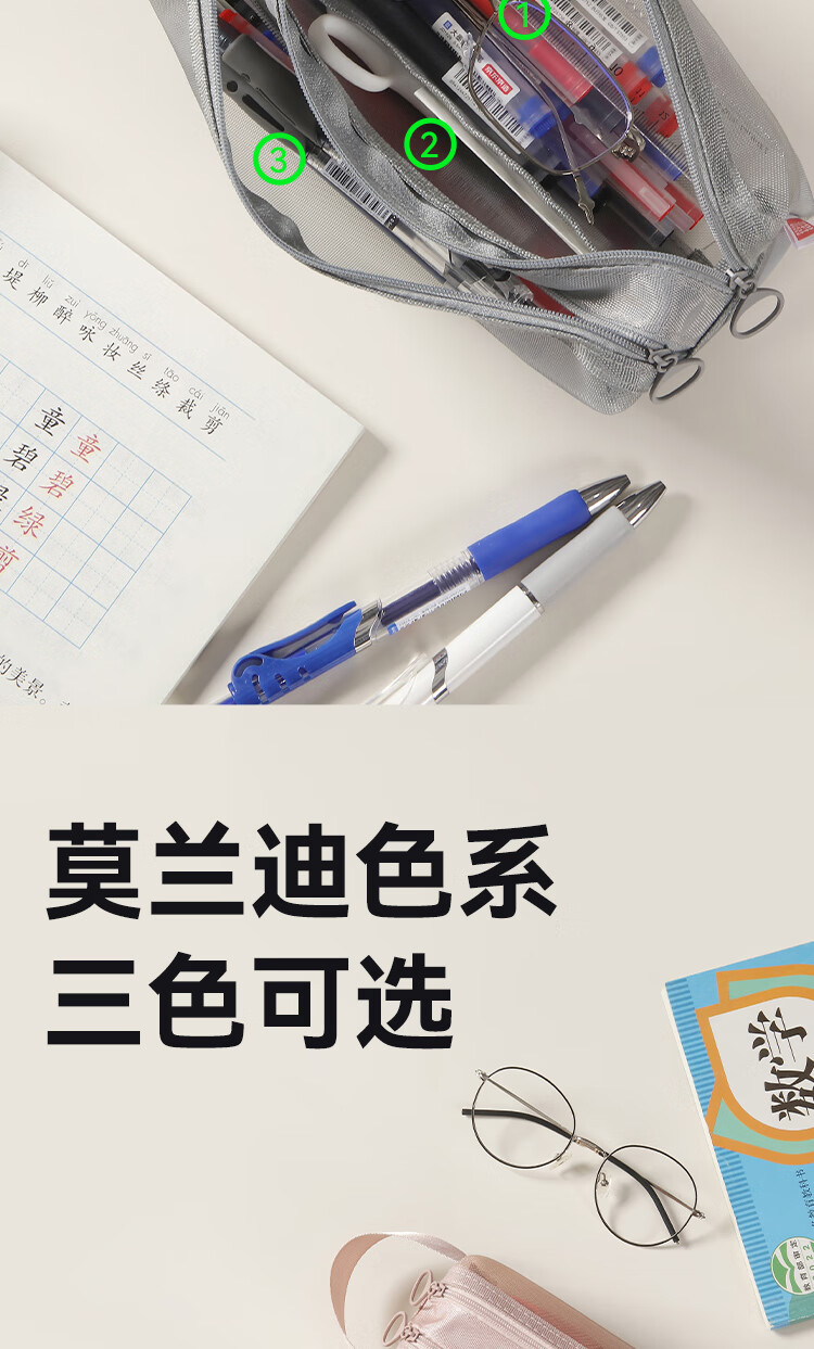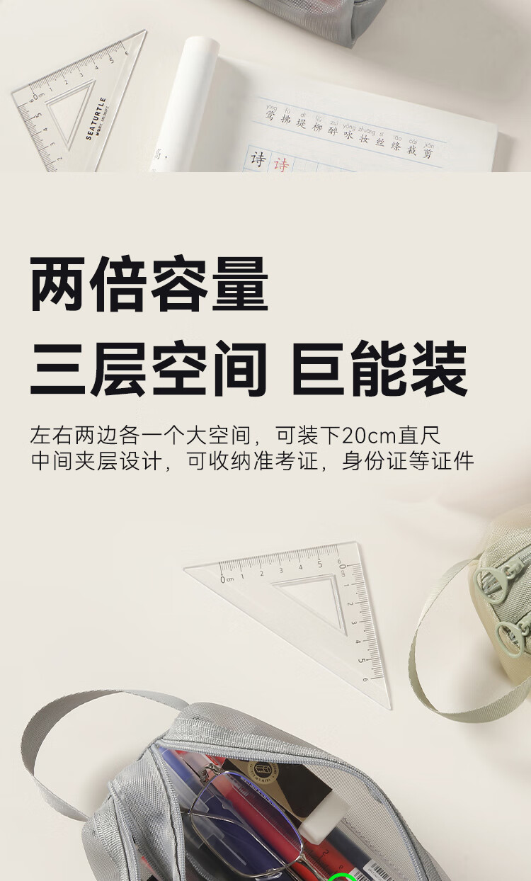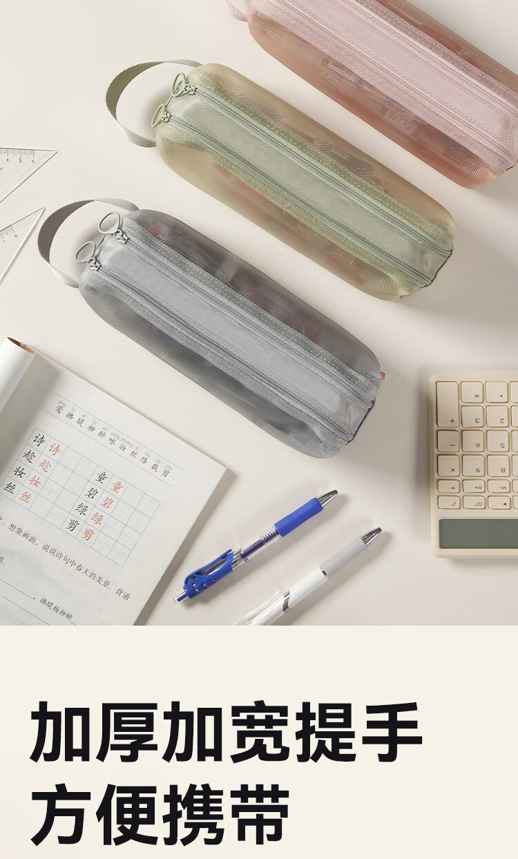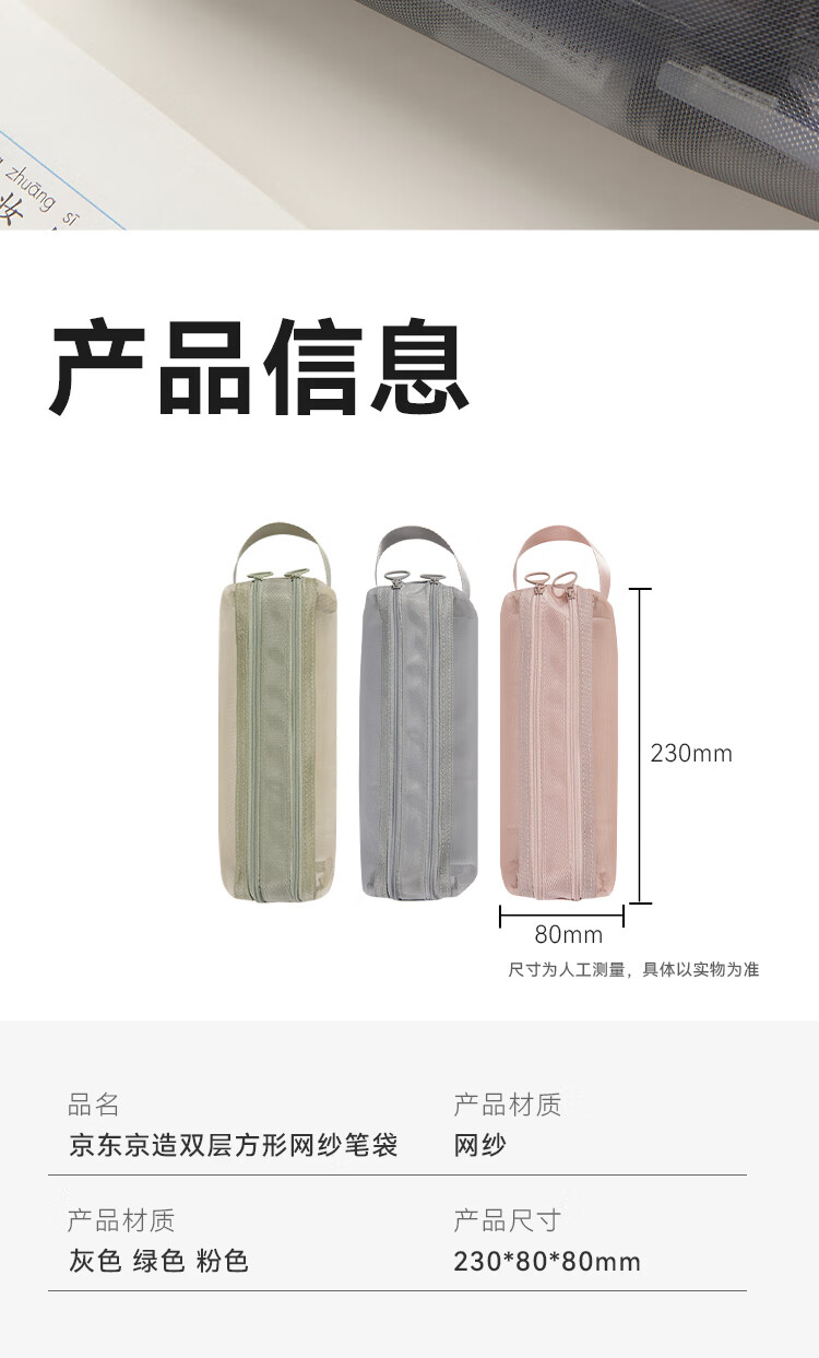 京东京造大容量双层笔袋 耐用网纱考试专用文具袋文具盒便携可带入考场 中高考考研适用 灰色 JD5021