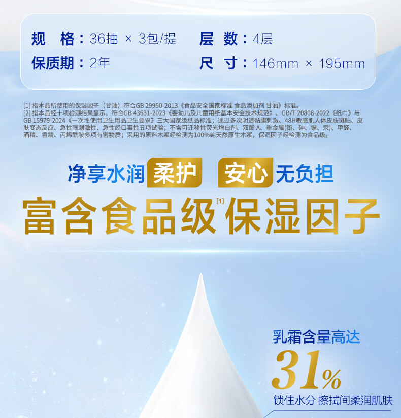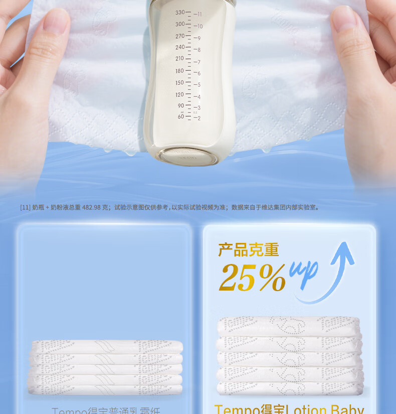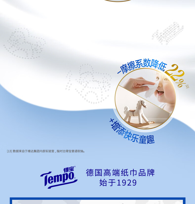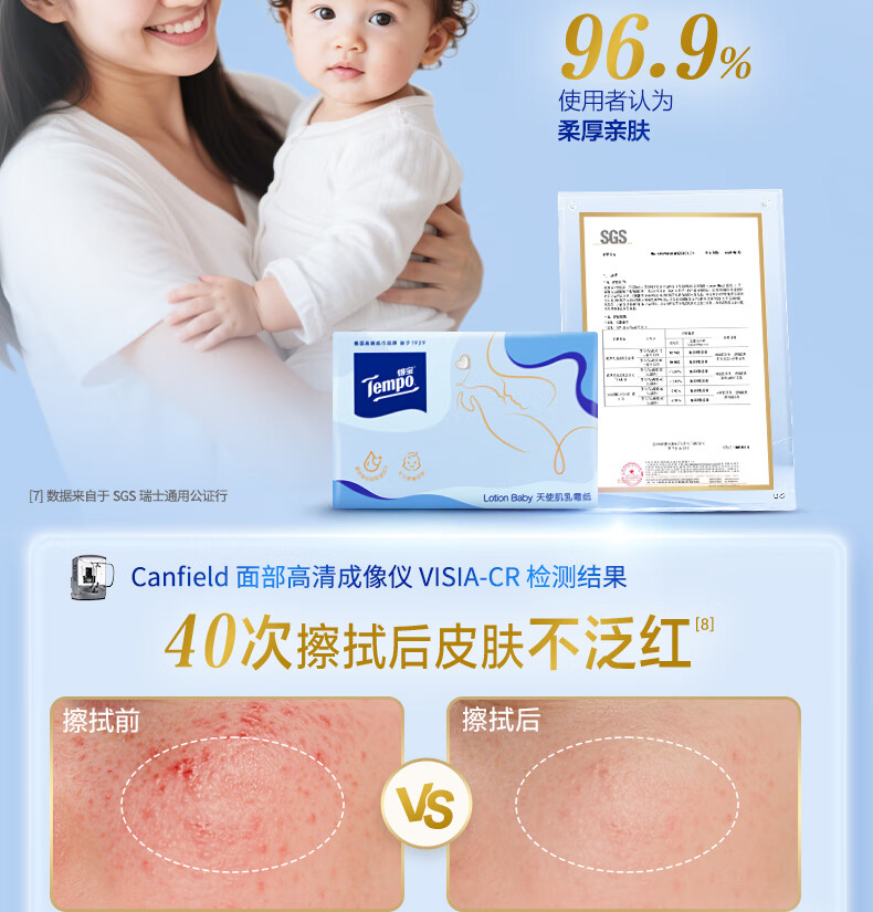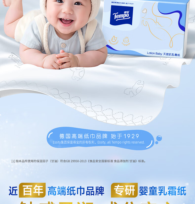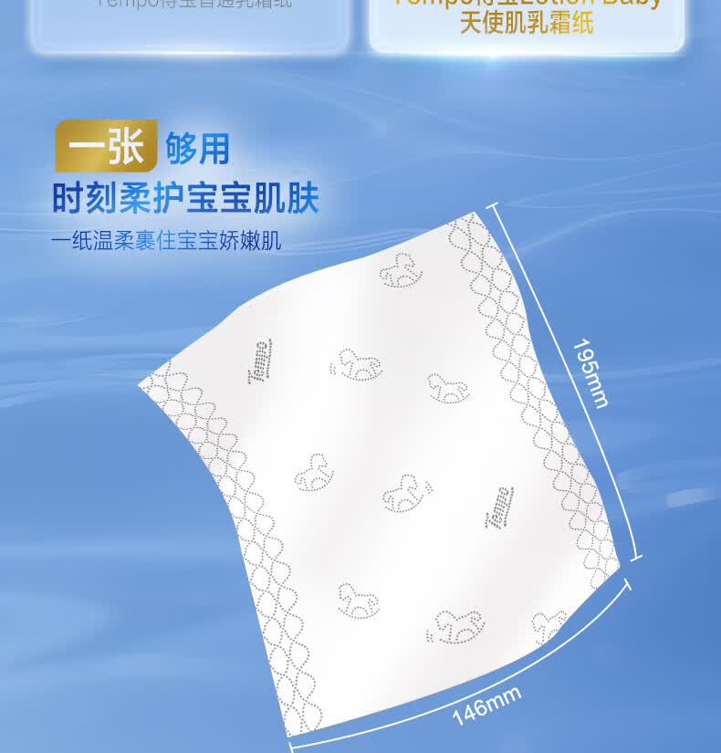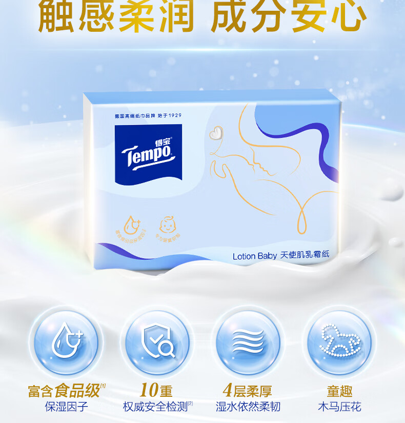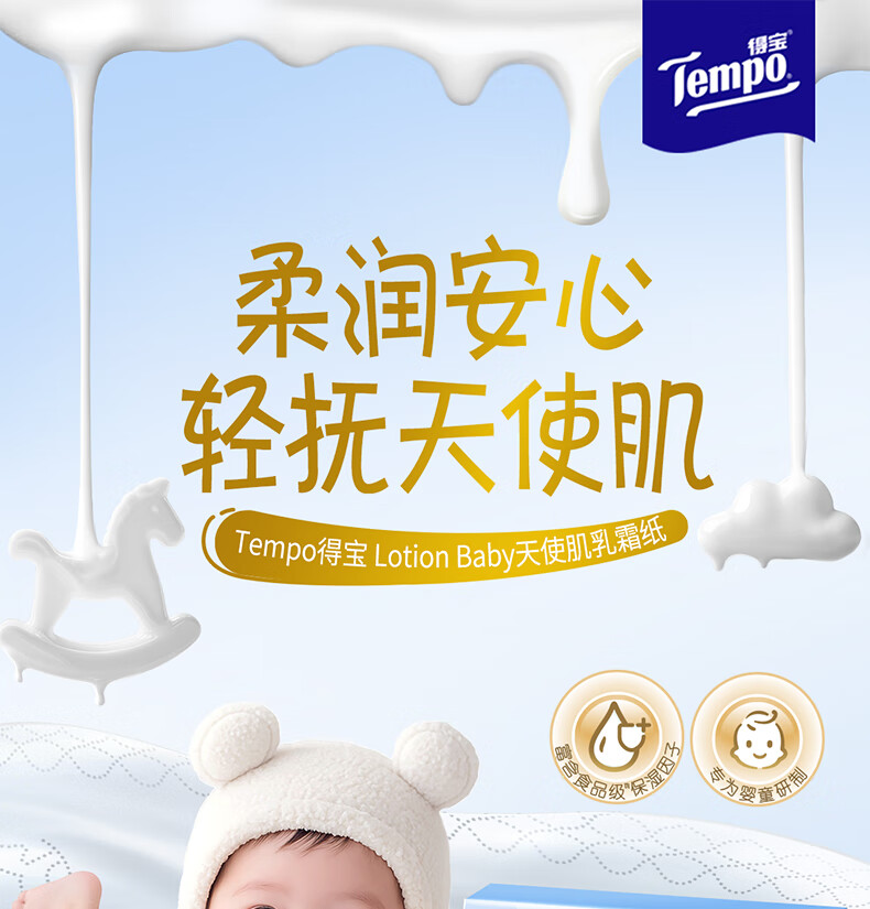 得宝(TEMPO)Lotion Baby天使肌婴儿乳霜纸 4层36抽*3包 云柔巾 母婴适用 抽纸