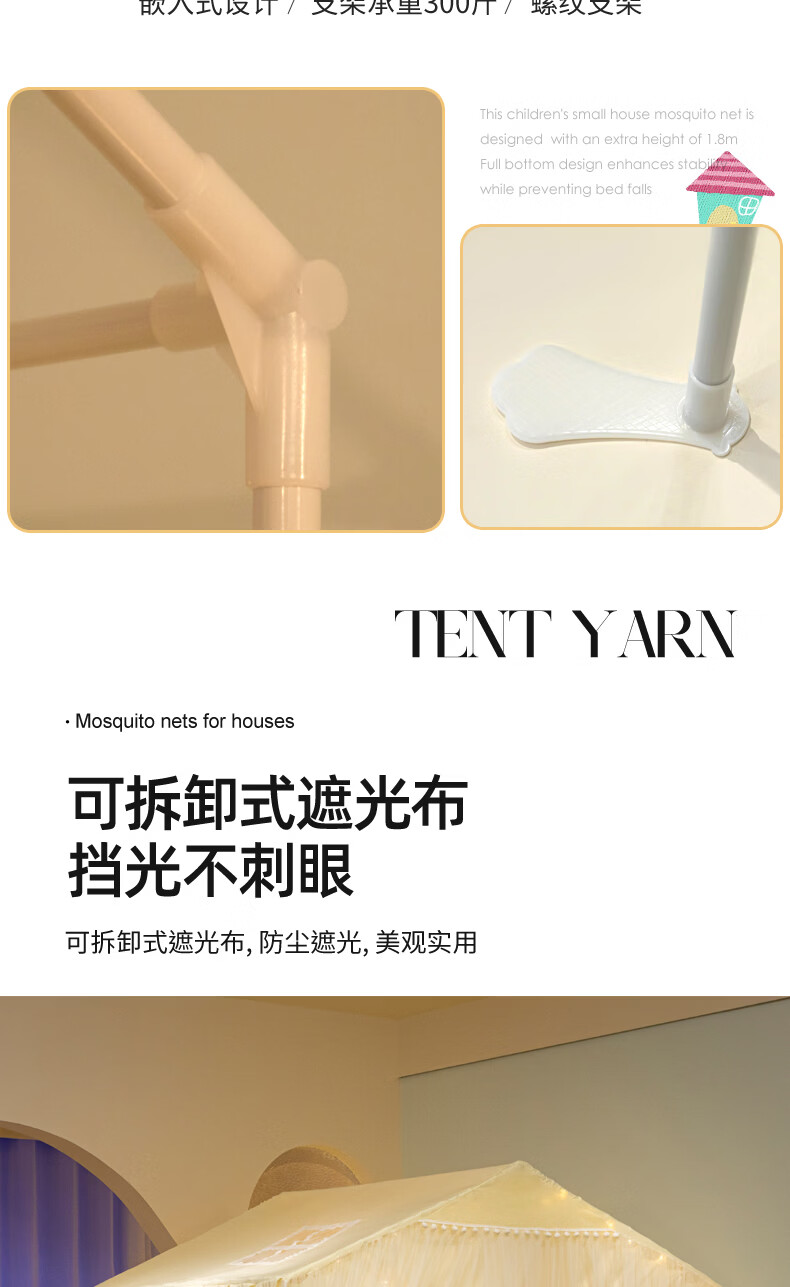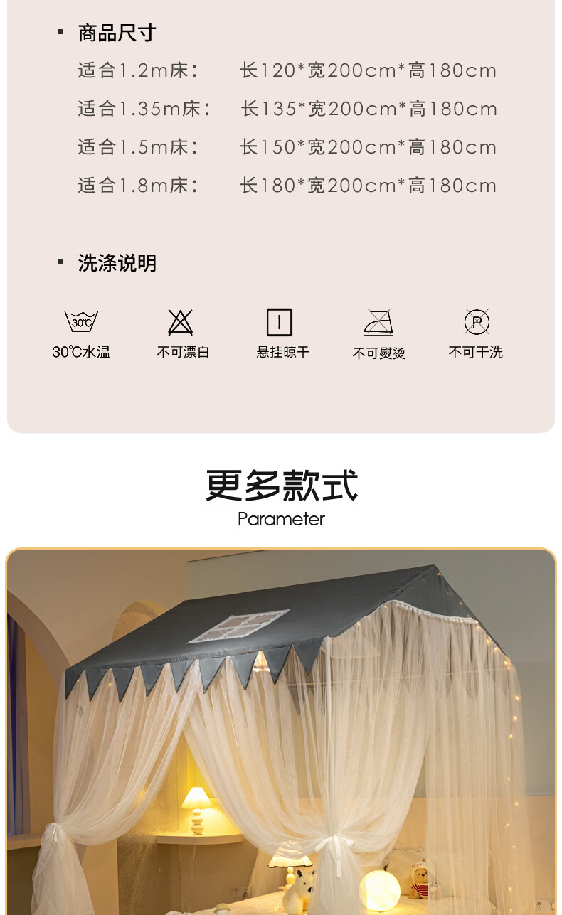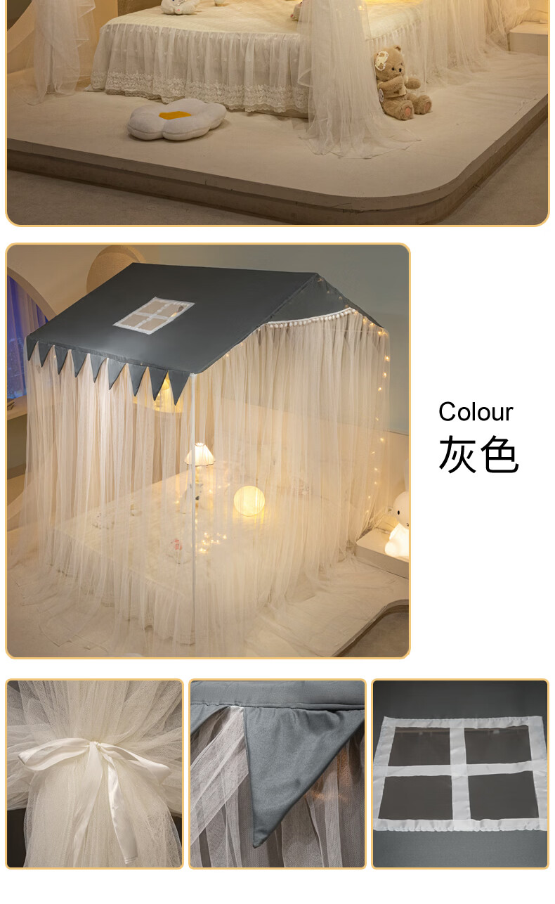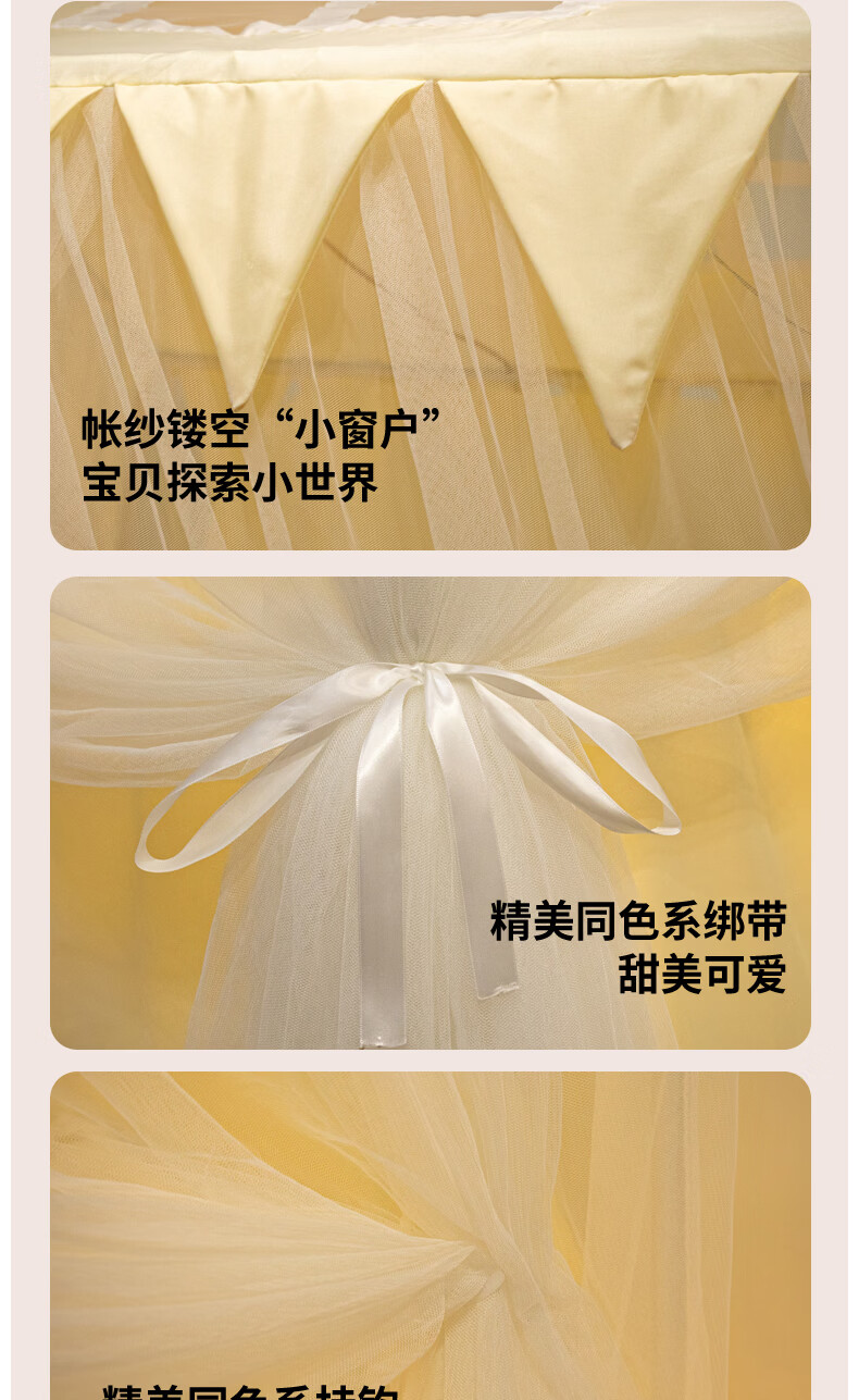无印良品防摔蚊帐1.8x2米家用一体式免安装防蚊儿童防掉卧室全包底三开门 米色【防蚊防摔 一体式免安装】 200cm*180cm*170cm 适用于1.8米床【一体式免安装支架】