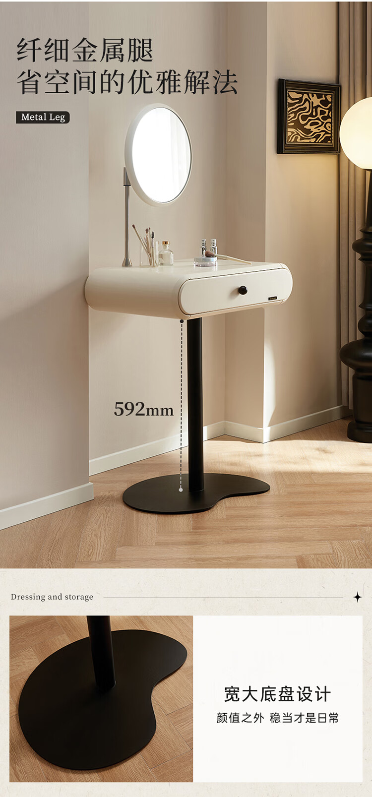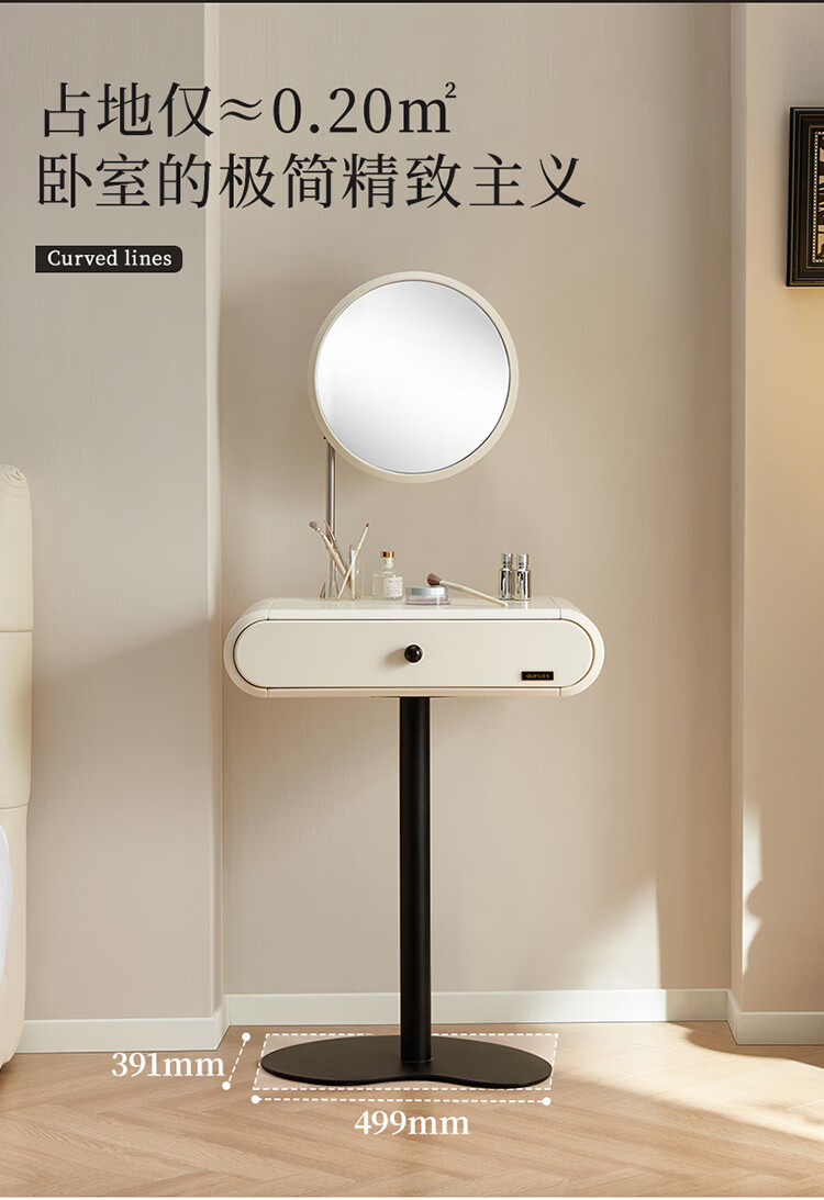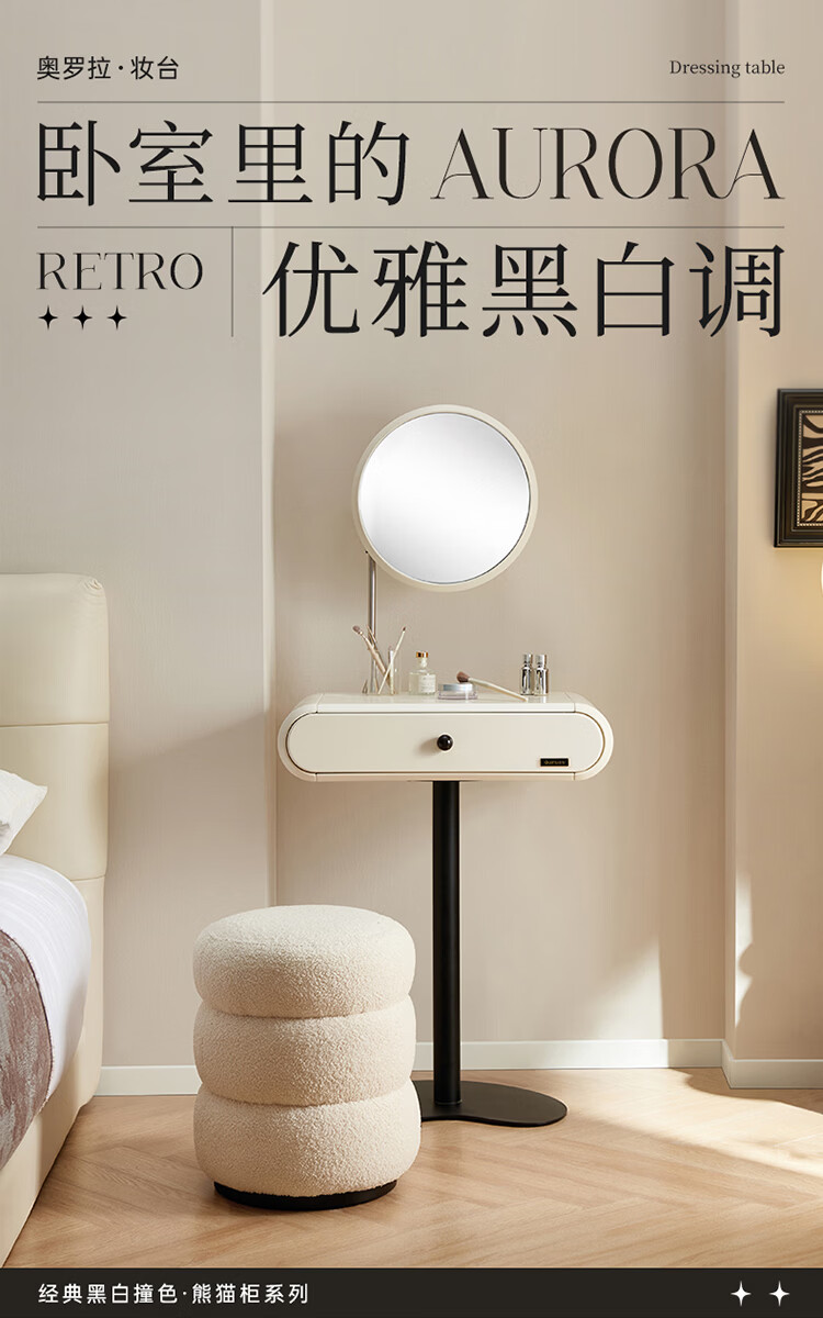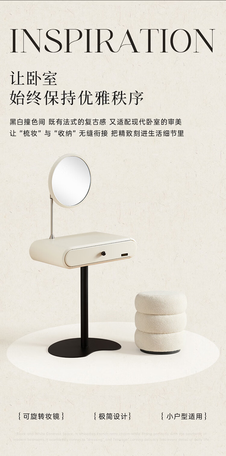 全友家居法式复古小户型极简梳妆台2026新款卧室化妆镜收纳化妆小桌子 【黑白撞色】妆台+妆凳