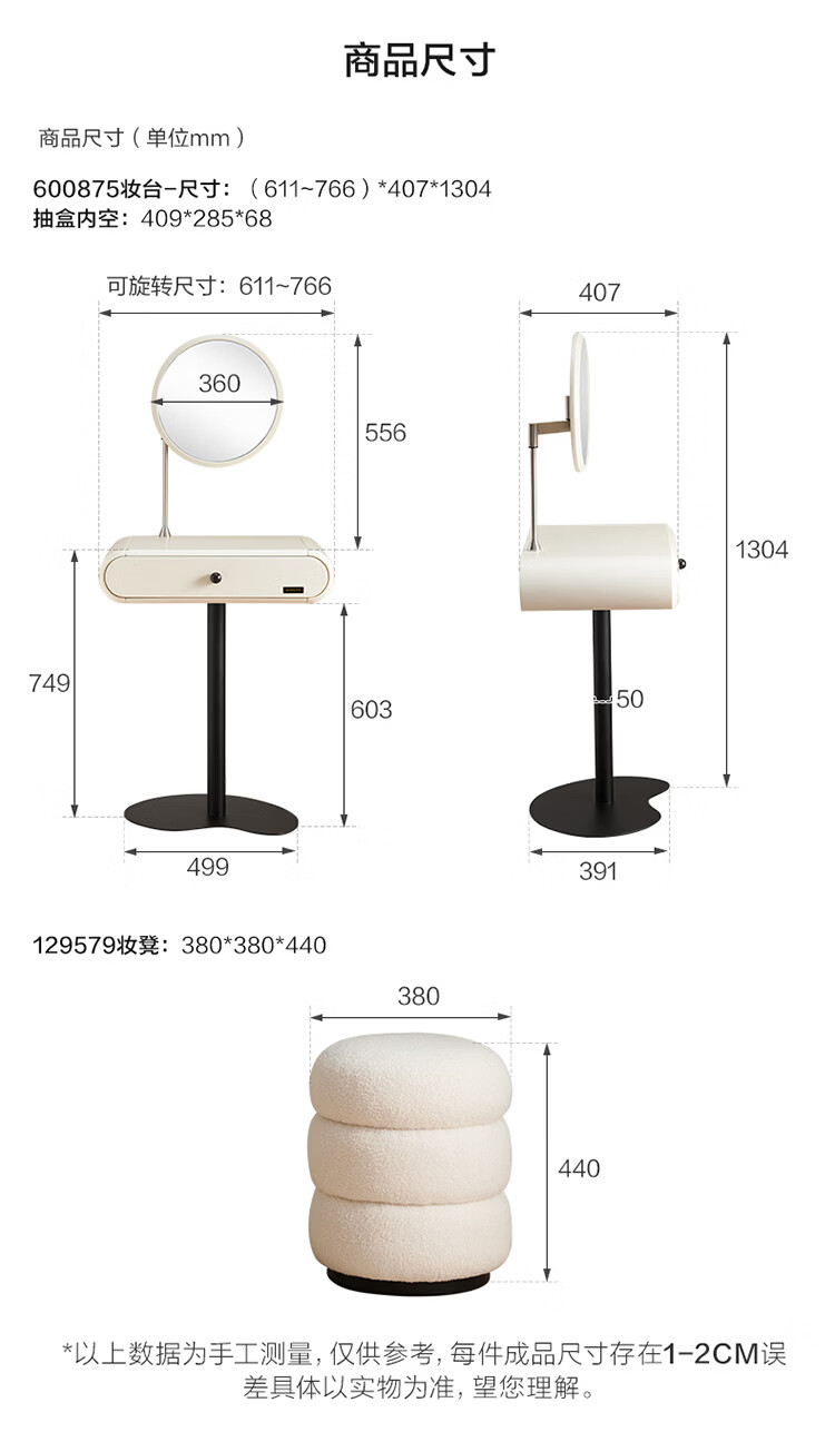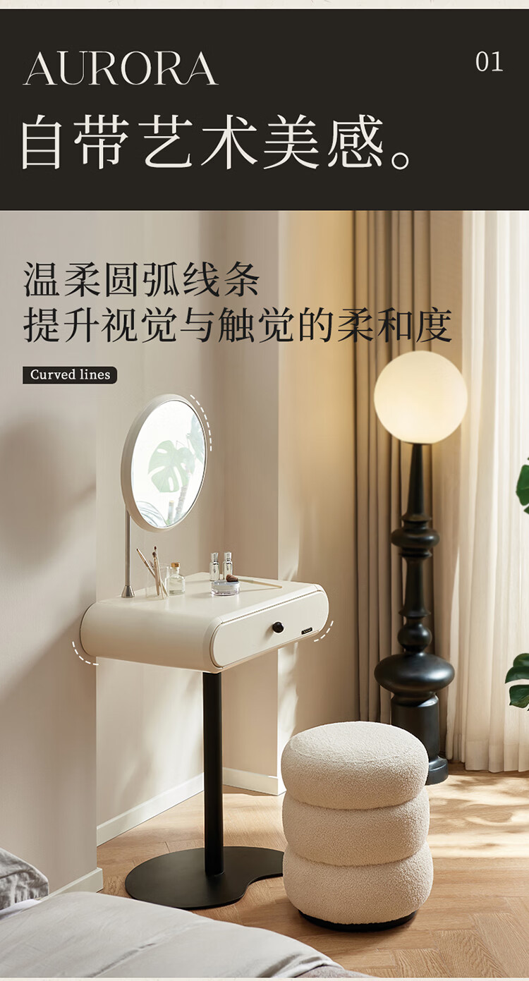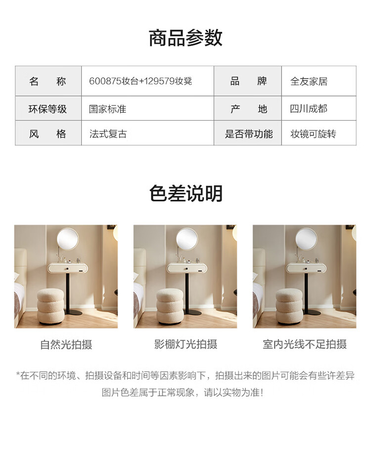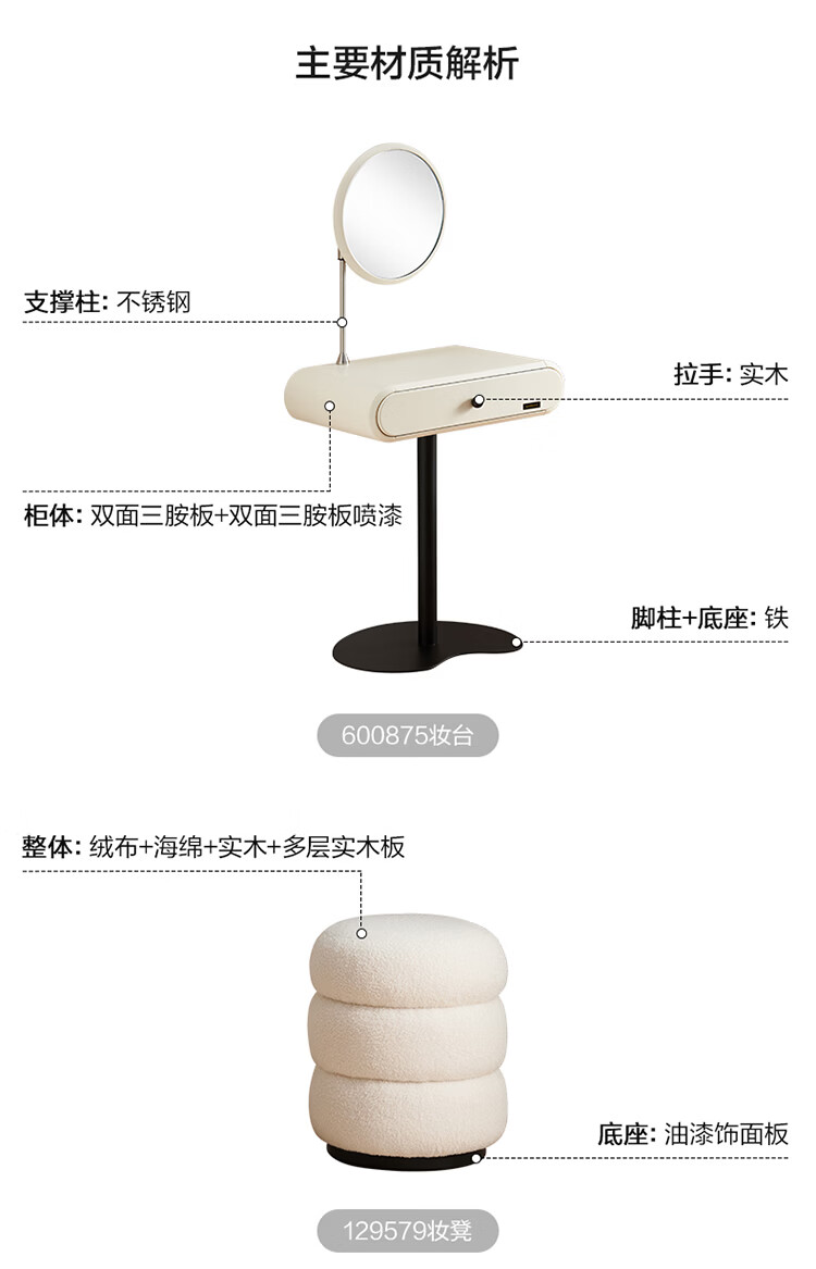 全友家居法式复古小户型极简梳妆台2026新款卧室化妆镜收纳化妆小桌子 【黑白撞色】妆台+妆凳