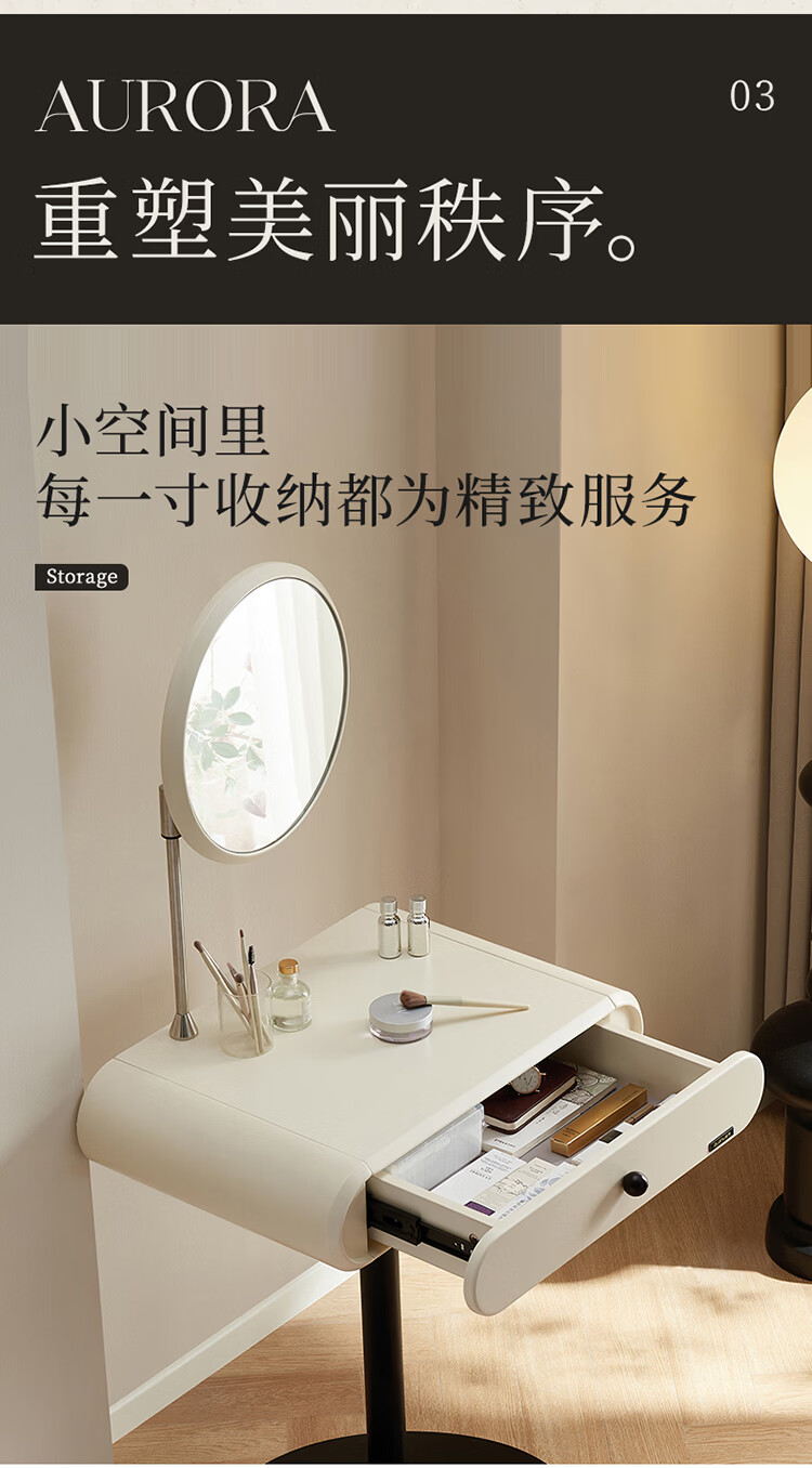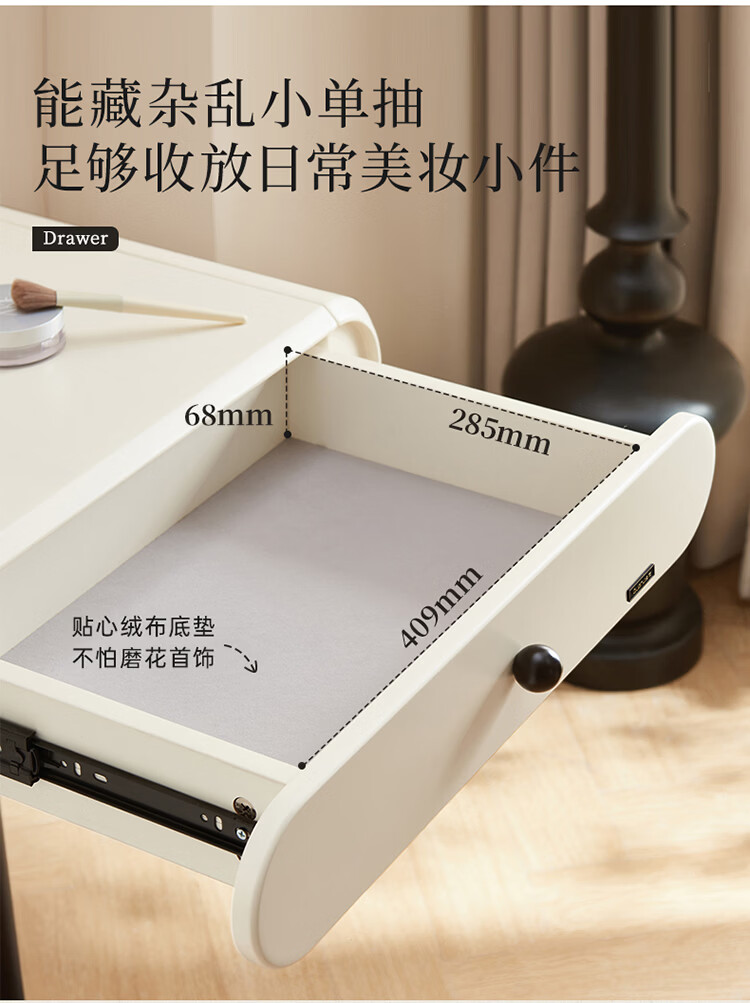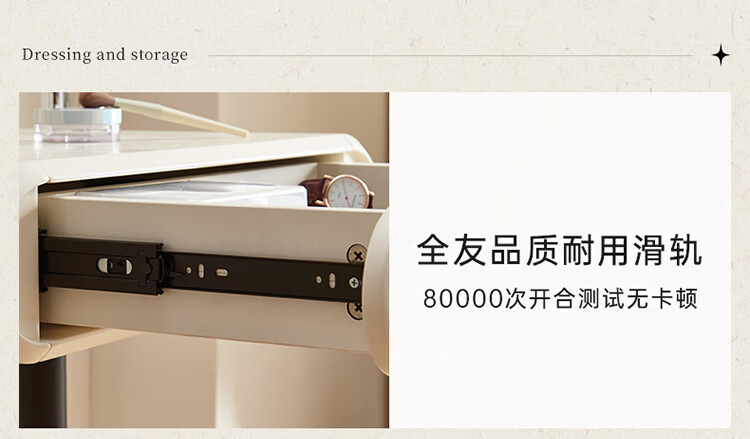 全友家居奶油风梳妆台小户型家用卧室储物收纳桌床头化妆桌化妆椅组合 【奶油白】妆台+妆镜+妆凳