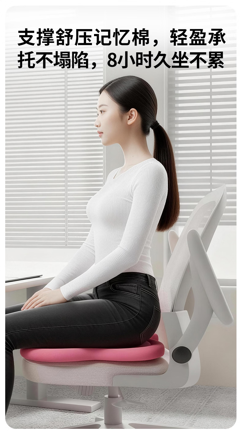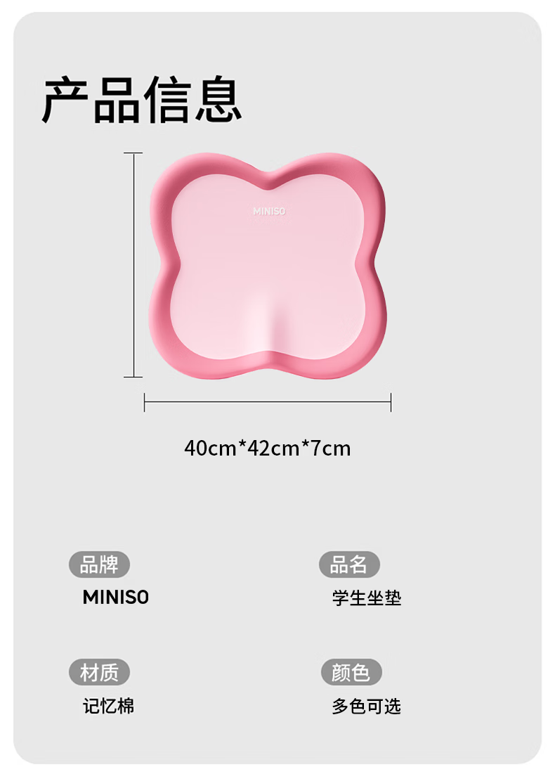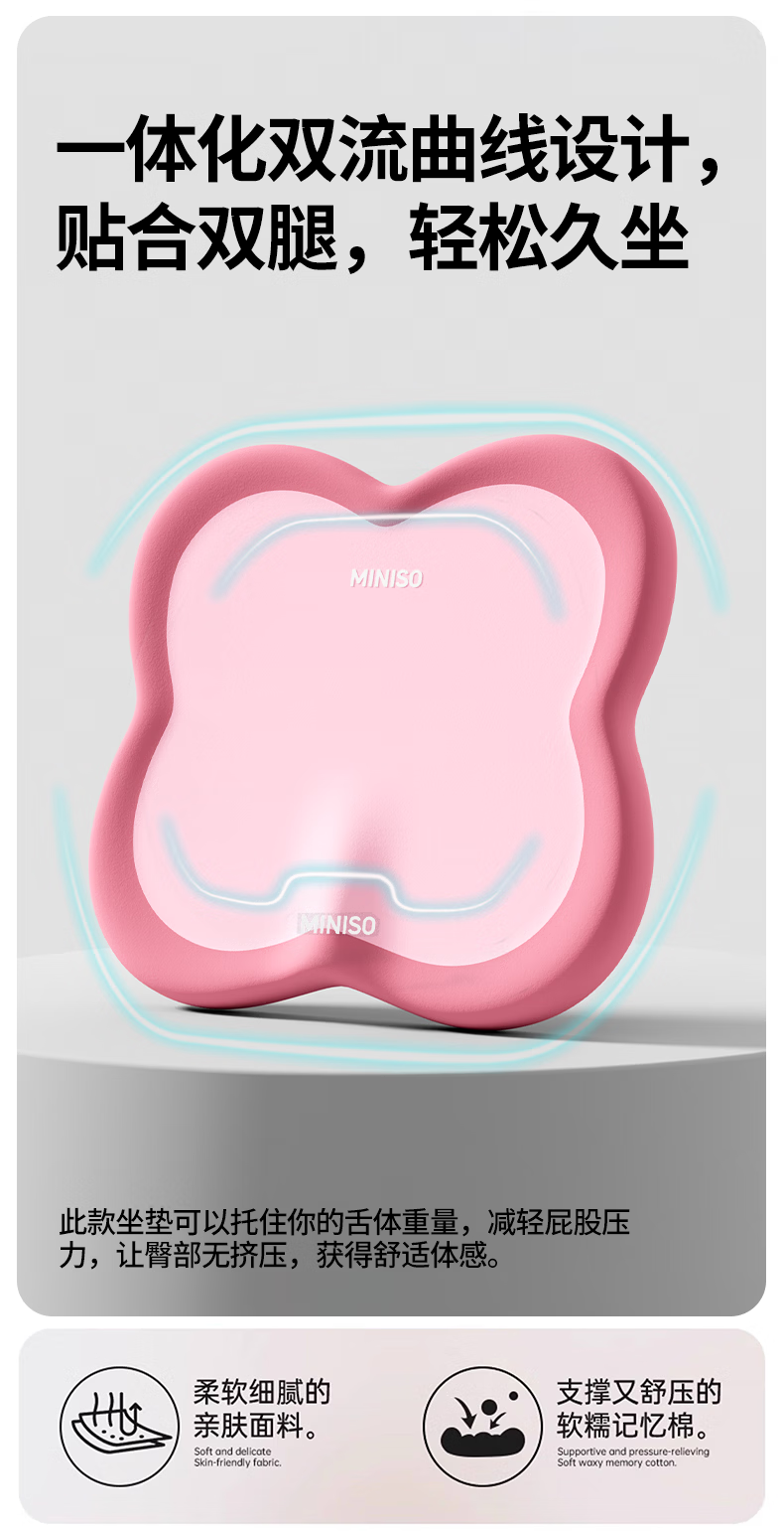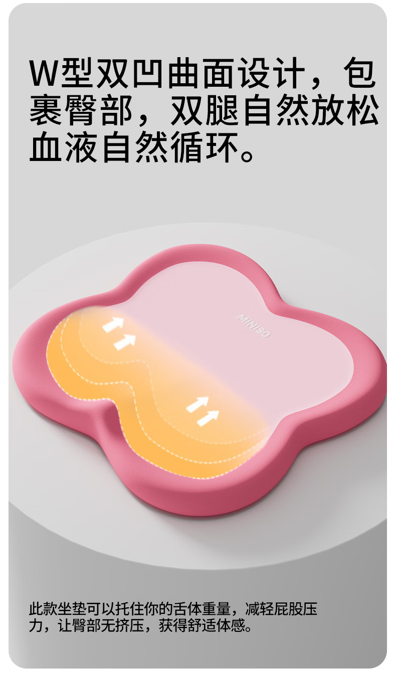 名创优品(MINISO)办公室记忆棉坐垫 学生椅垫久坐减压护腰屁垫舒压护臀座垫 双粉拼接 无规格