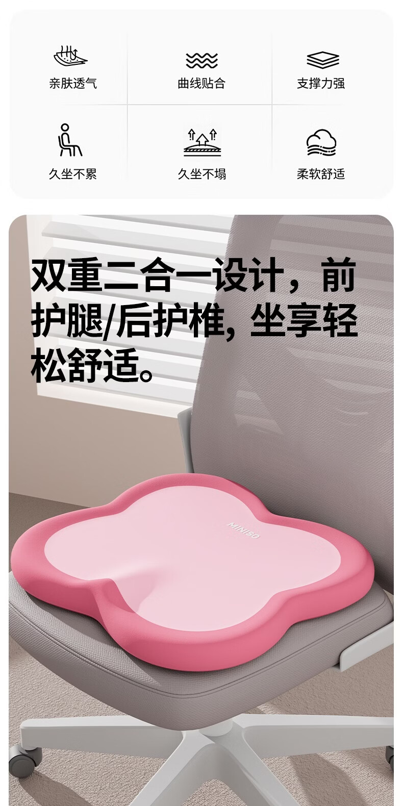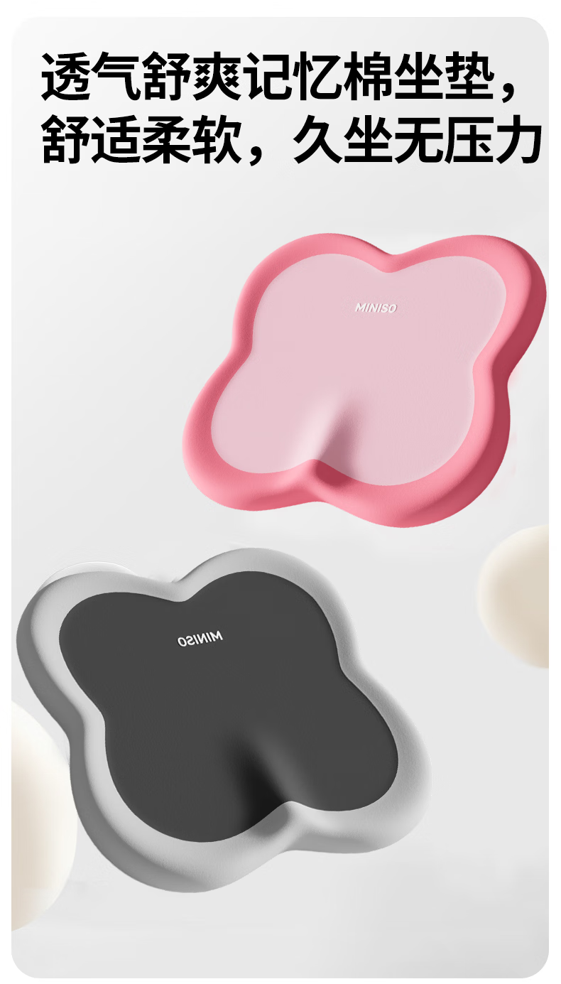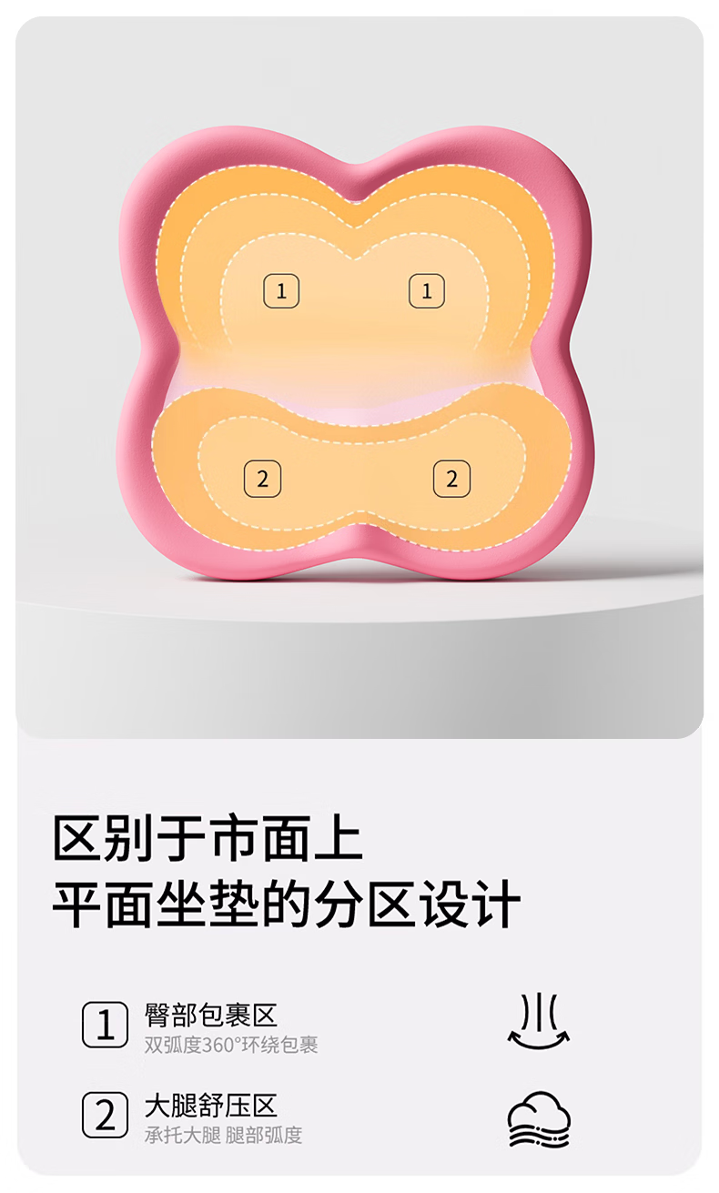 名创优品(MINISO)办公室记忆棉坐垫 学生椅垫久坐减压护腰屁垫舒压护臀座垫 双粉拼接 无规格