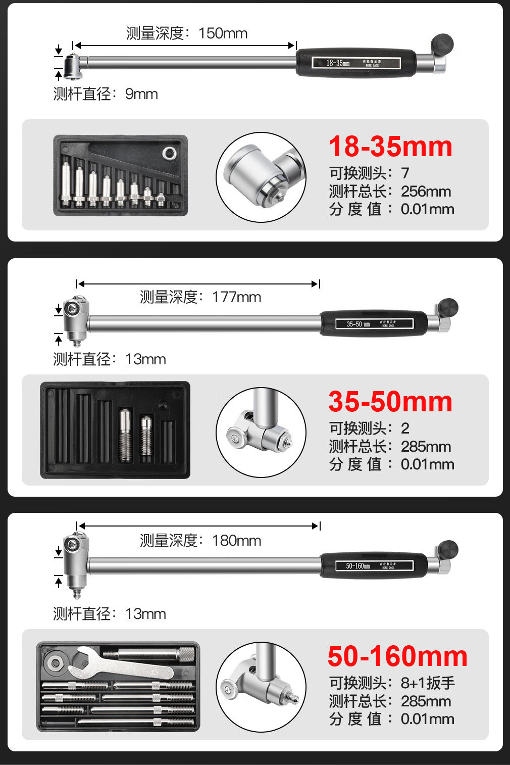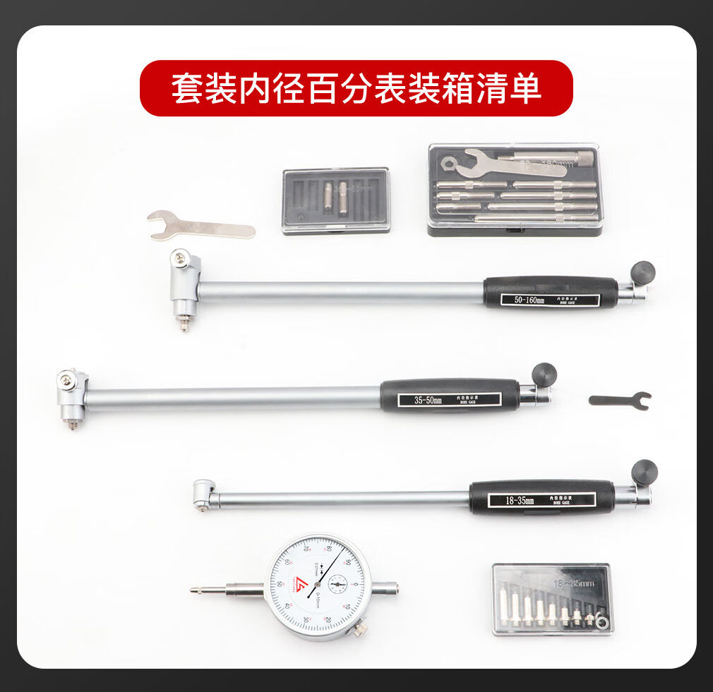 三量(sanliang)三量18-160mm百分表套装内径量表测厚百分表指示表测缸规一套 328-111 套装内径百分表 18-160mm 无规格