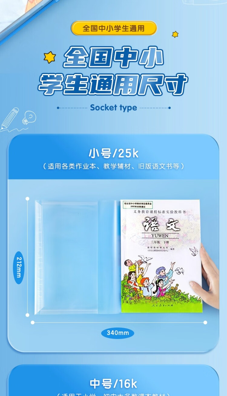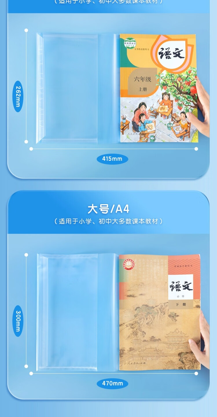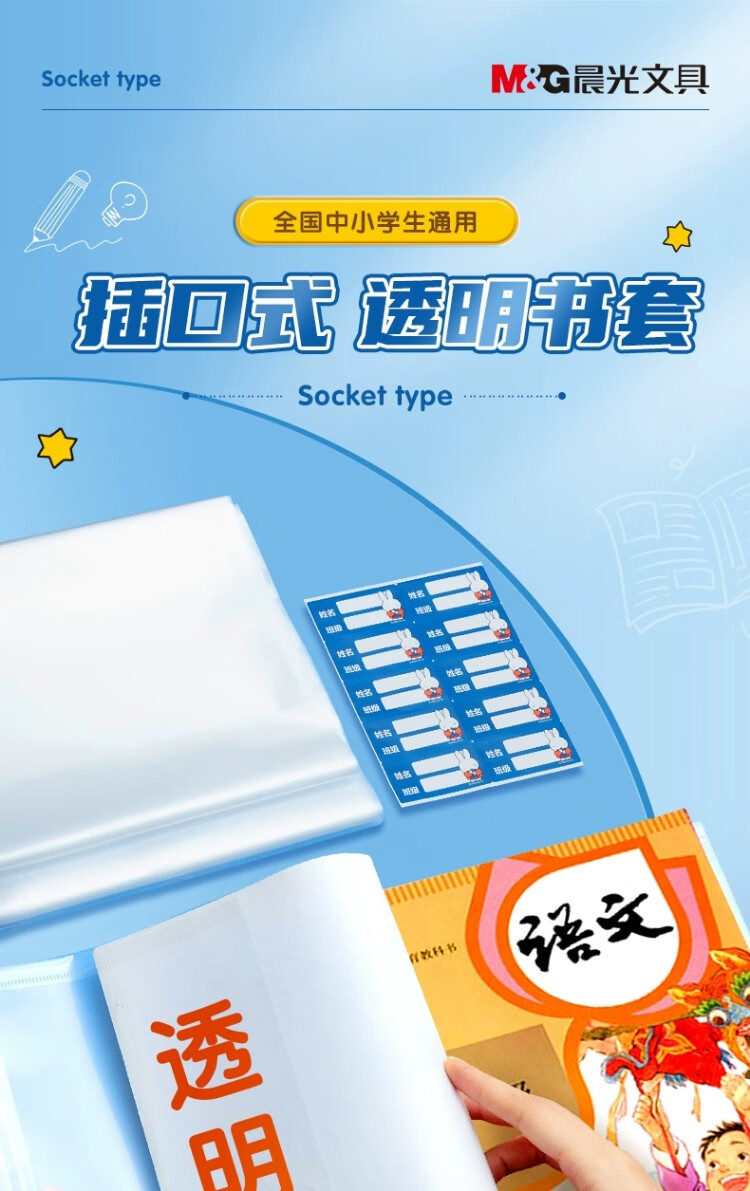 晨光(M&G)透明书套加厚包书皮小学生防水一二 三四 五年级全套下册16k包书套A4大号书本保护套书壳书皮套 【新款】27张【初&高中推荐】大4中18小5/送30枚姓名贴+3张课程表