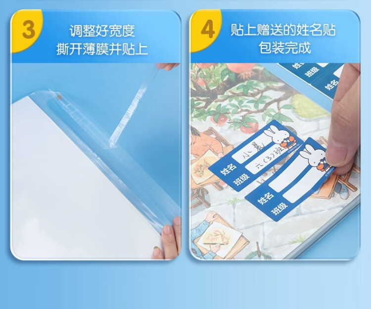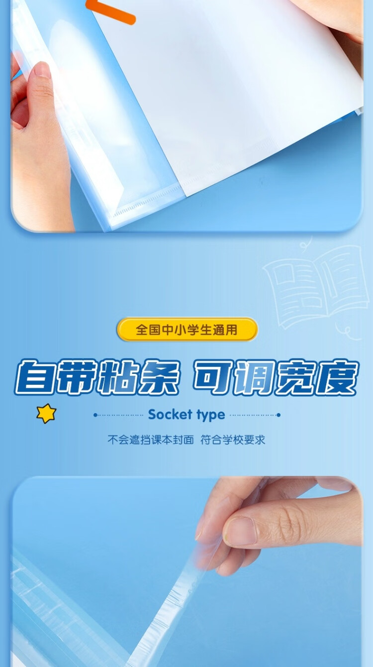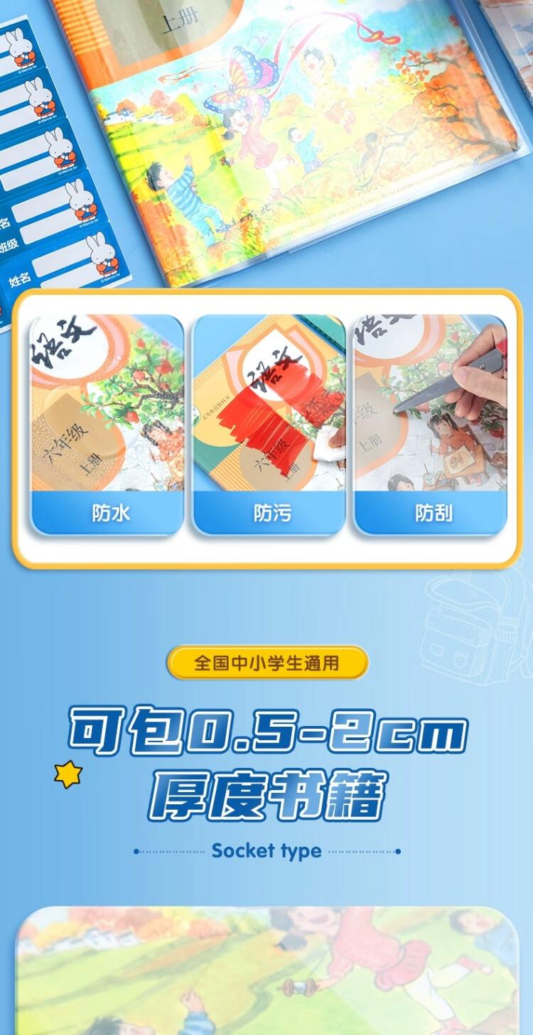 得力(deli)全新分段式包书皮 10张16K/中号分段包书膜分段易撕/防水防磨 赠刮板*1/姓名贴*12/课程表*1
