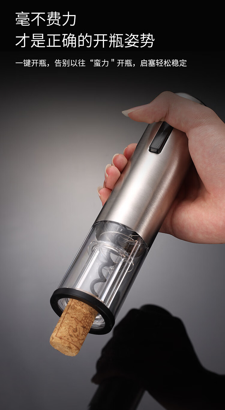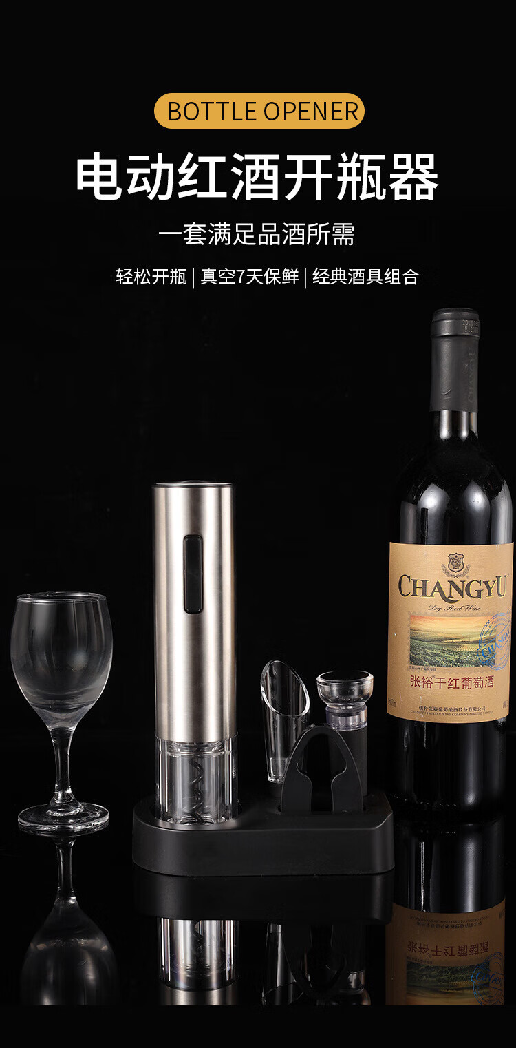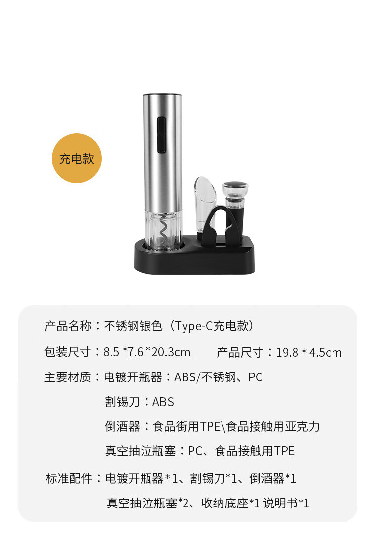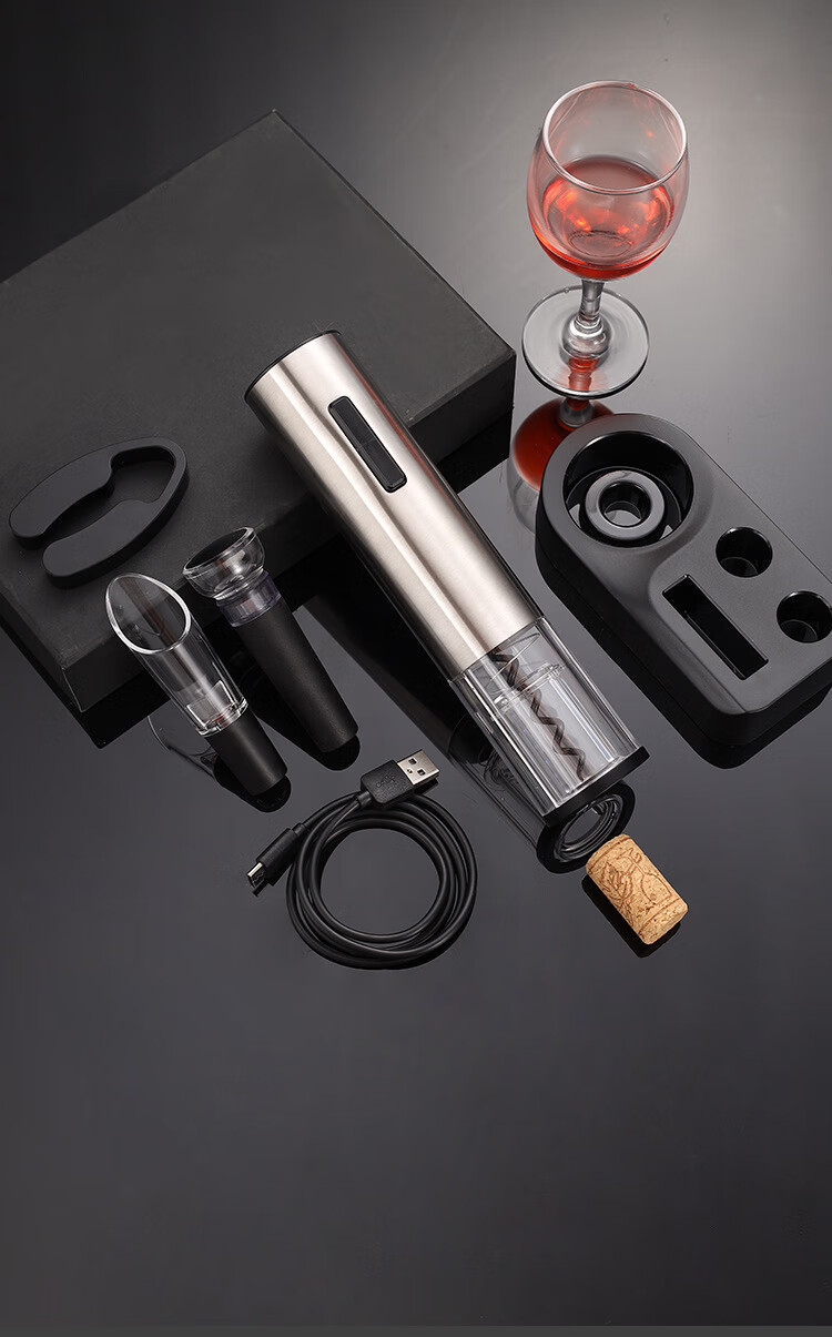 SSIIXX日本品牌电动红酒开瓶器全自动启瓶器送礼开酒器套装葡萄酒 【充电款不锈钢材质】银色