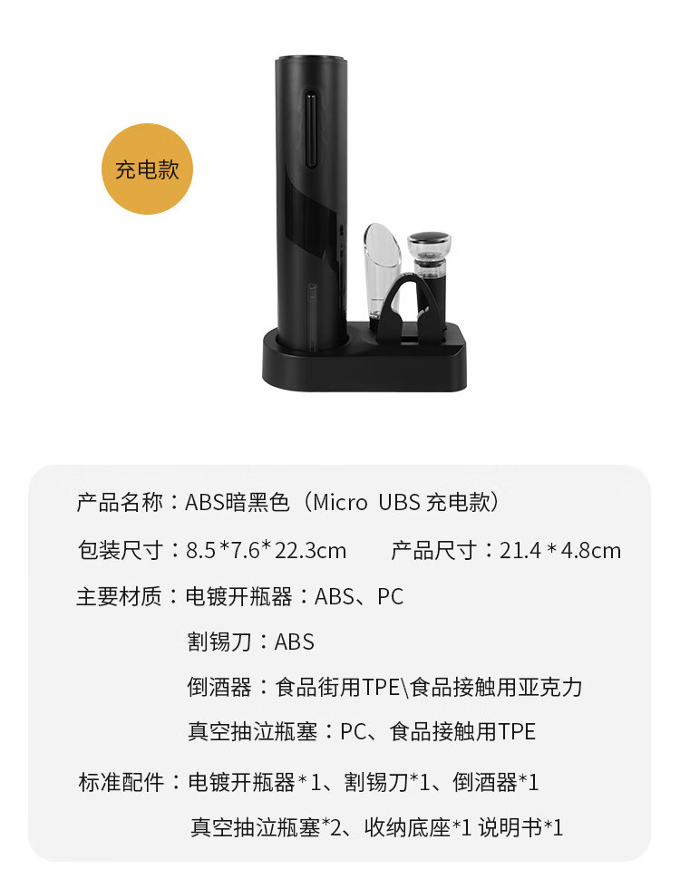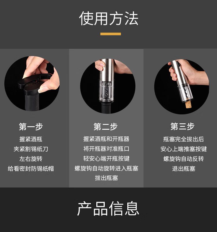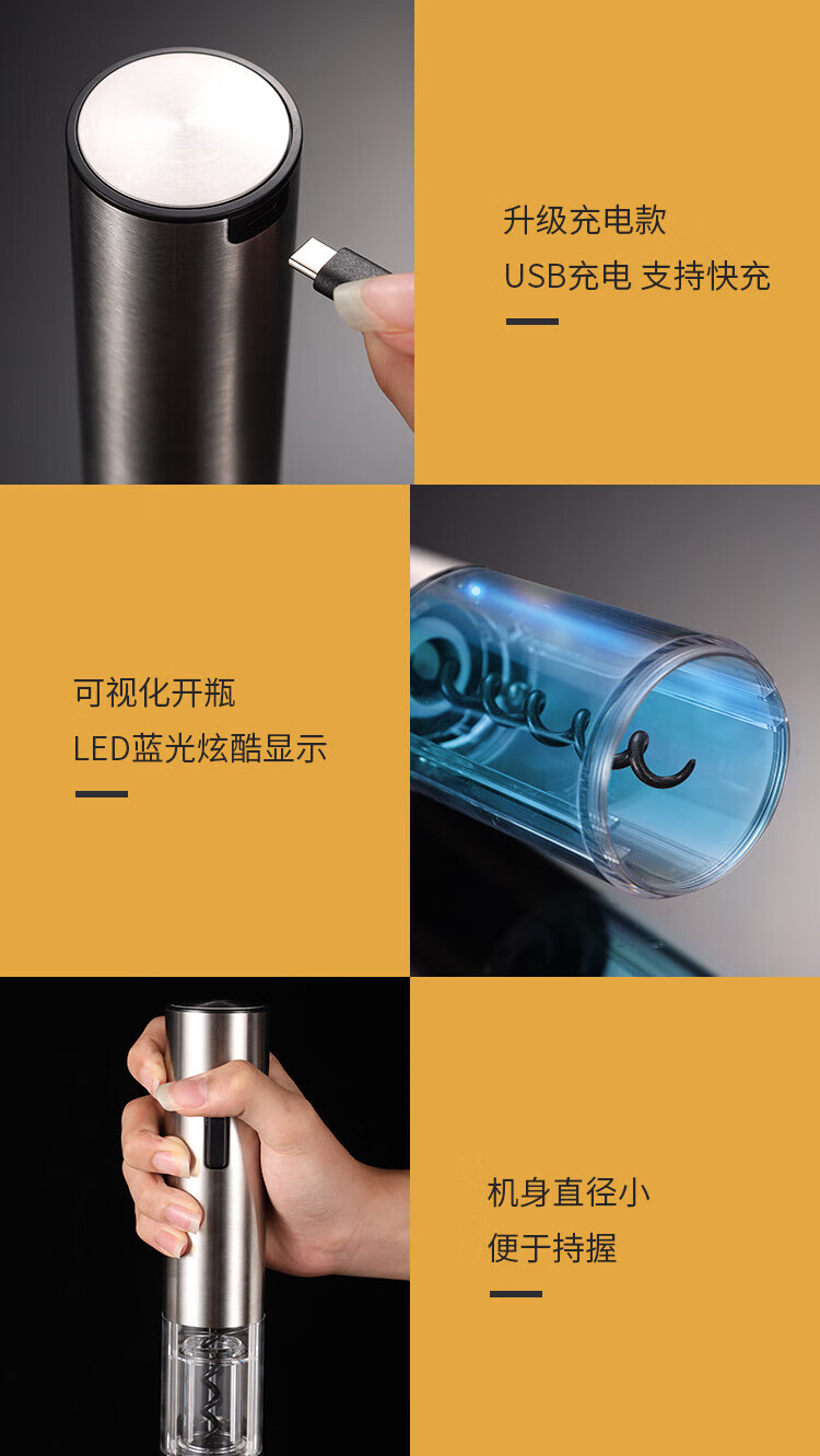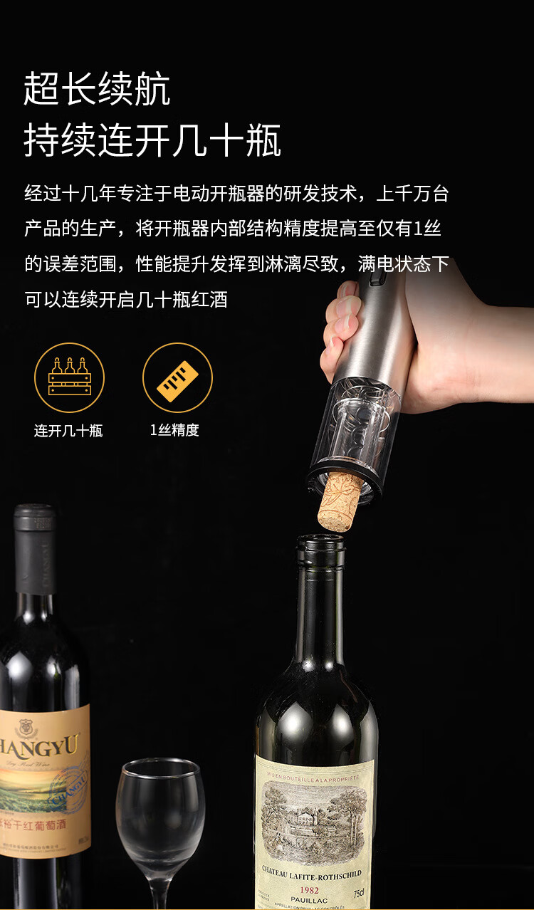 SSIIXX日本品牌电动红酒开瓶器全自动启瓶器送礼开酒器套装葡萄酒 【充电款不锈钢材质】银色