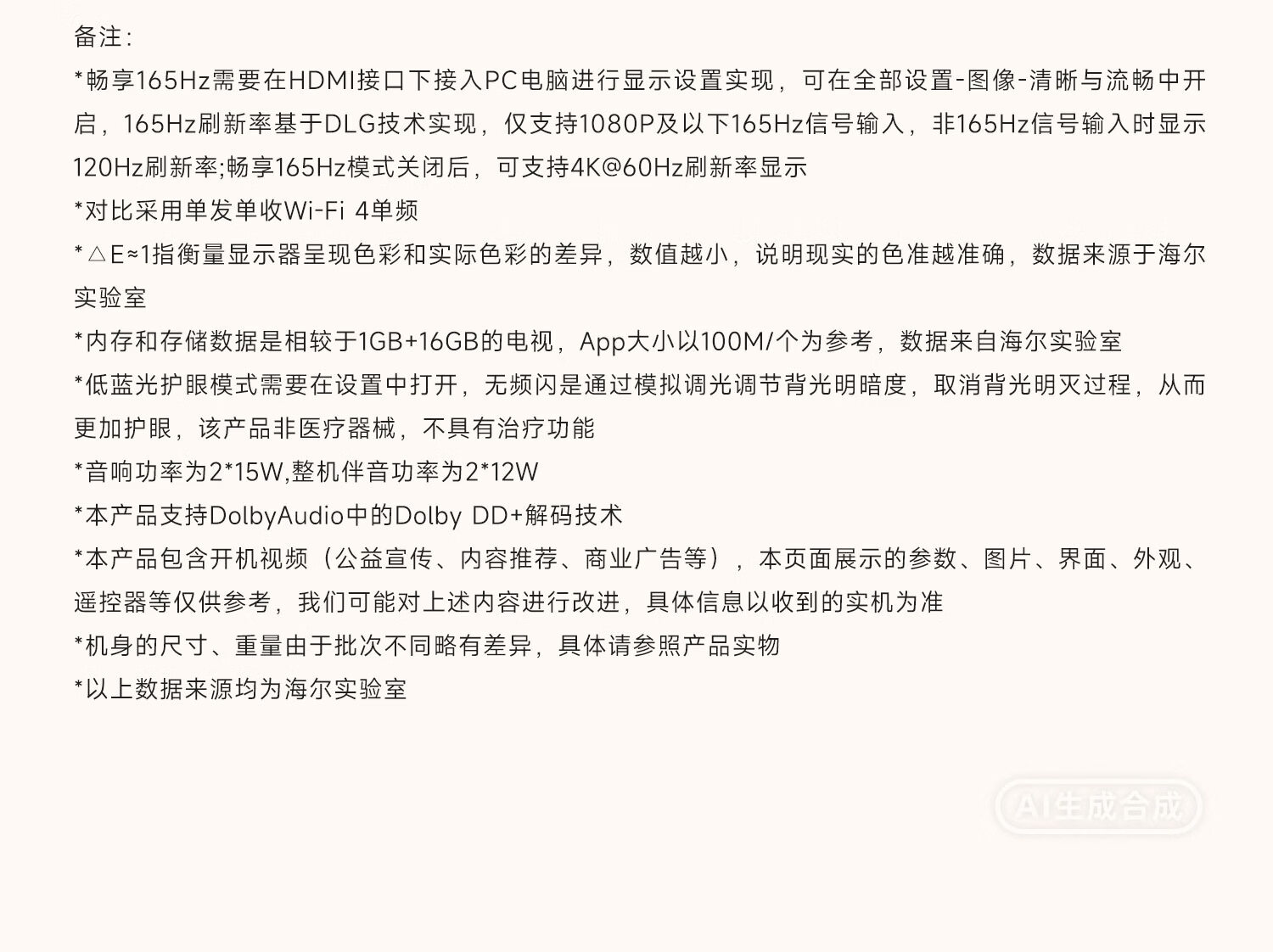 海尔(Haier)电视 26年新品H5D语音控制 4K超高清165Hz高刷新率大内存超薄智能液晶平板电视机 以旧换新家电 85英寸 26年新品 165Hz高刷 64G大内存